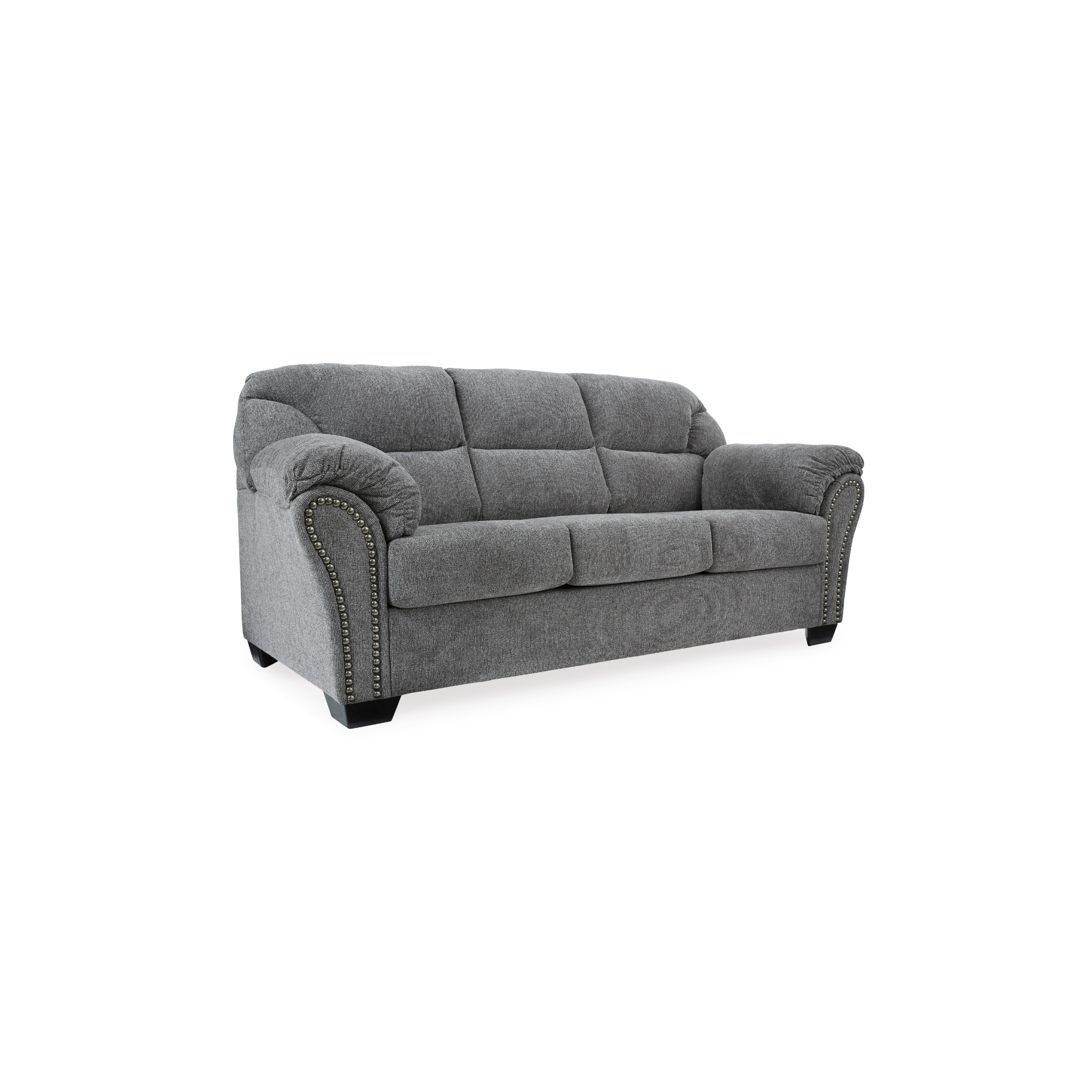 Zašto žrtvovati udobnost zbog stila (ili stil zbog udobnosti) kada možete imati najbolje od oba u Allmaxx trosjedu u boji kositra sive? Elementi uključuju šik dizajn sa podijeljenim naslonom i naslone za ruke umotane u jastuke koji olakšavaju drijemež. Posebnu pažnju privlače elegantno rašireni nasloni za ruke — ukrašeni crnim niklovanim čavlićima koji dodaju dozu kul karaktera.