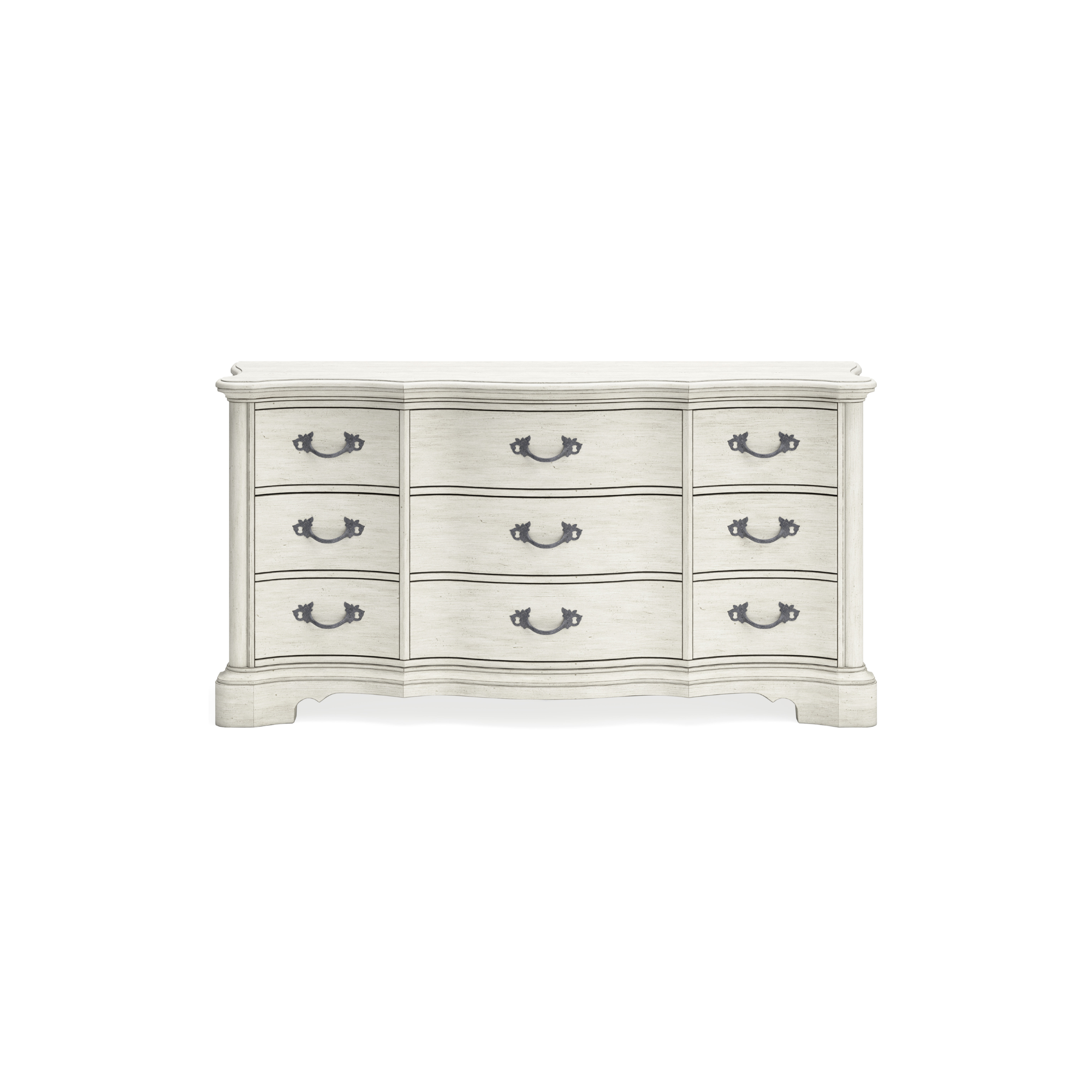 Dodajte dašak romantike svojoj spavaćoj sobi uz komodu Arlendyne. Njen antikni bijeli premaz i detalji u obliku serpentine predstavljaju savršen primjer ležerne elegancije. Ladice različitih veličina pružaju obilje prostora za odlaganje, dok ručke po mjeri dodaju originalnost.