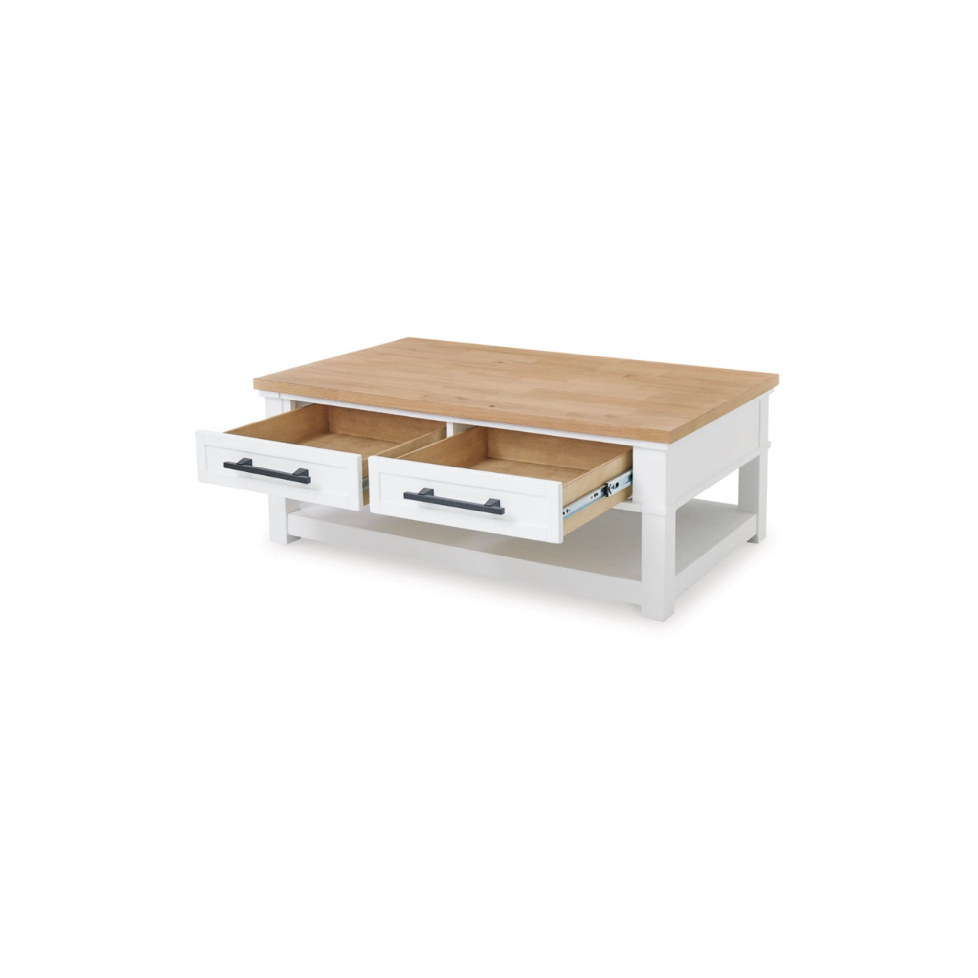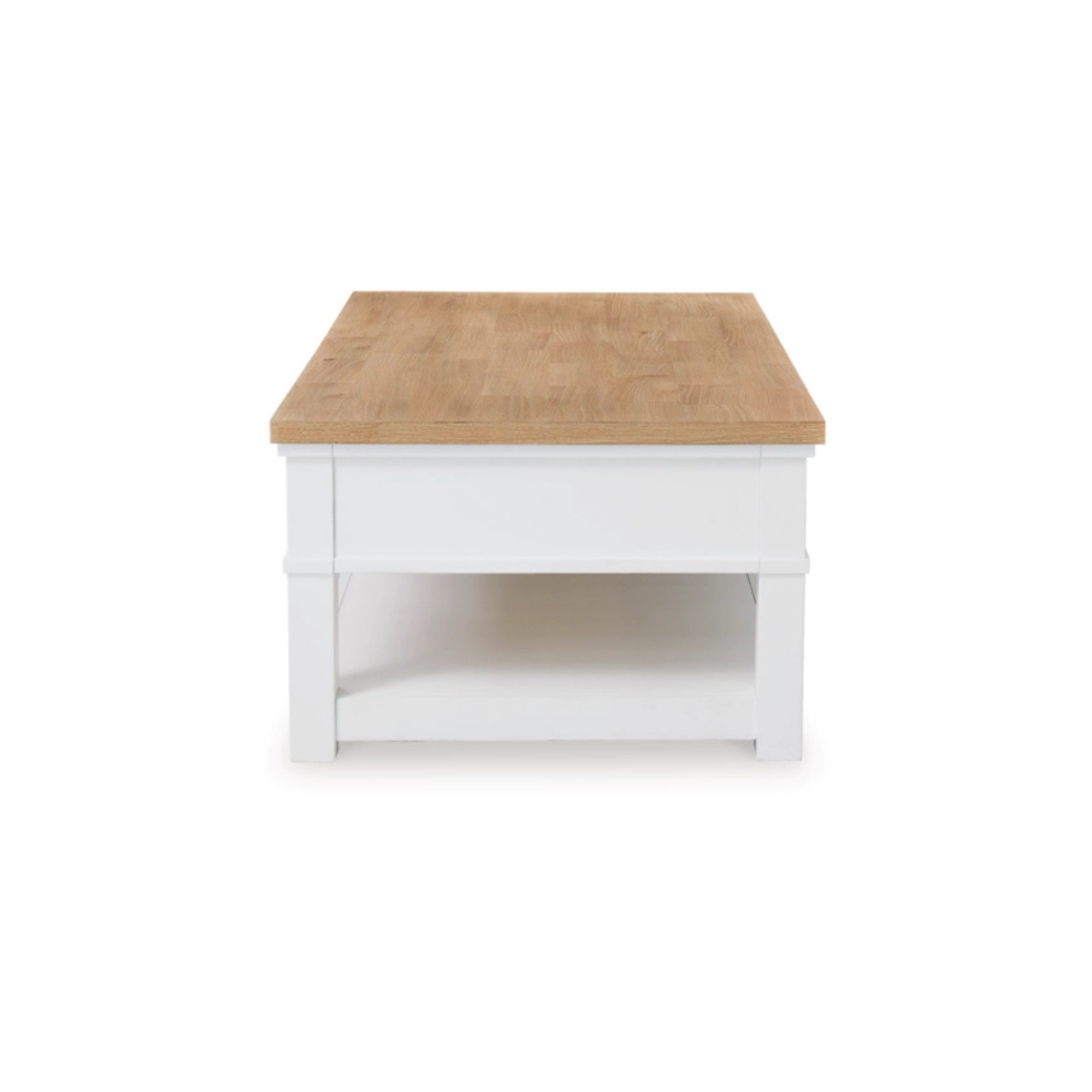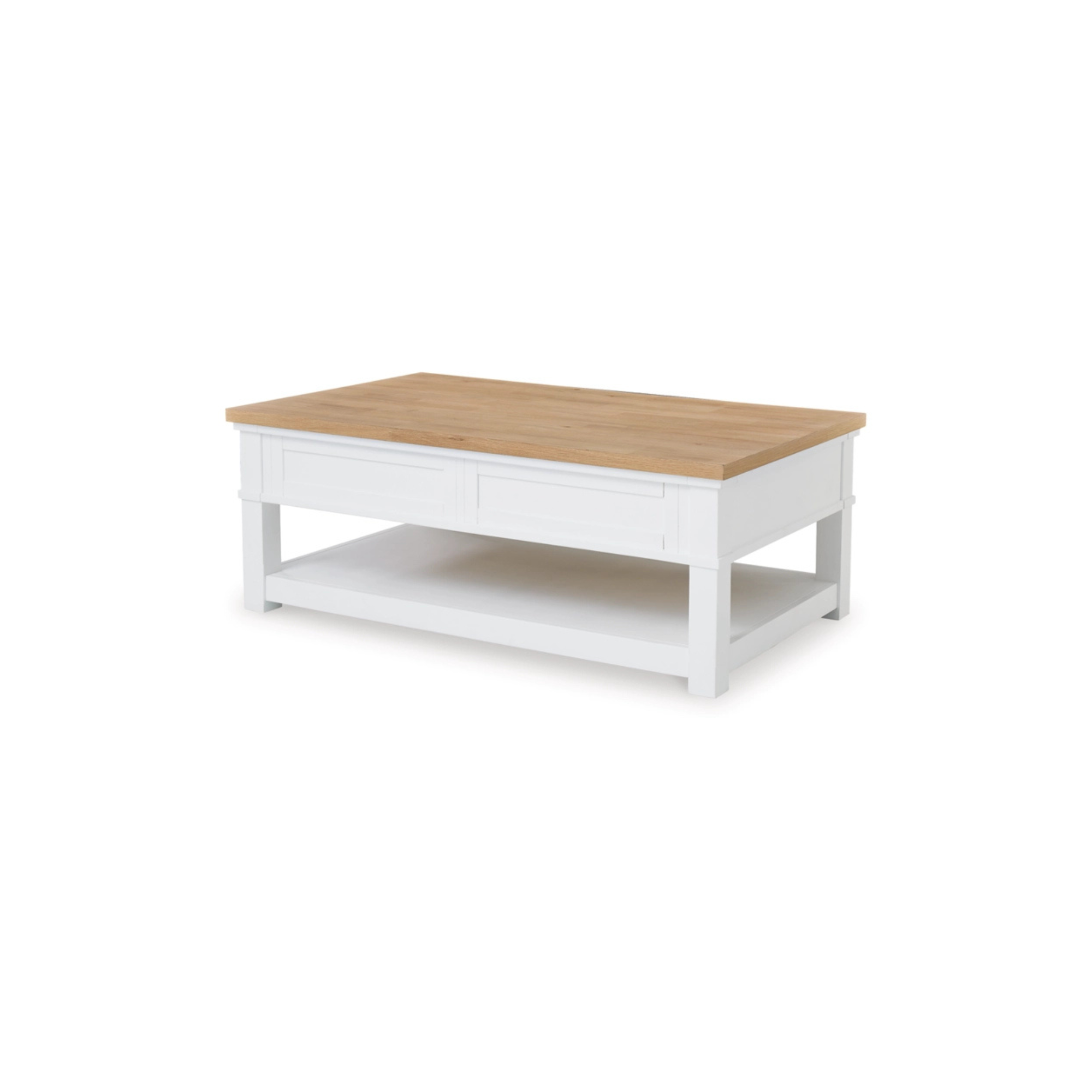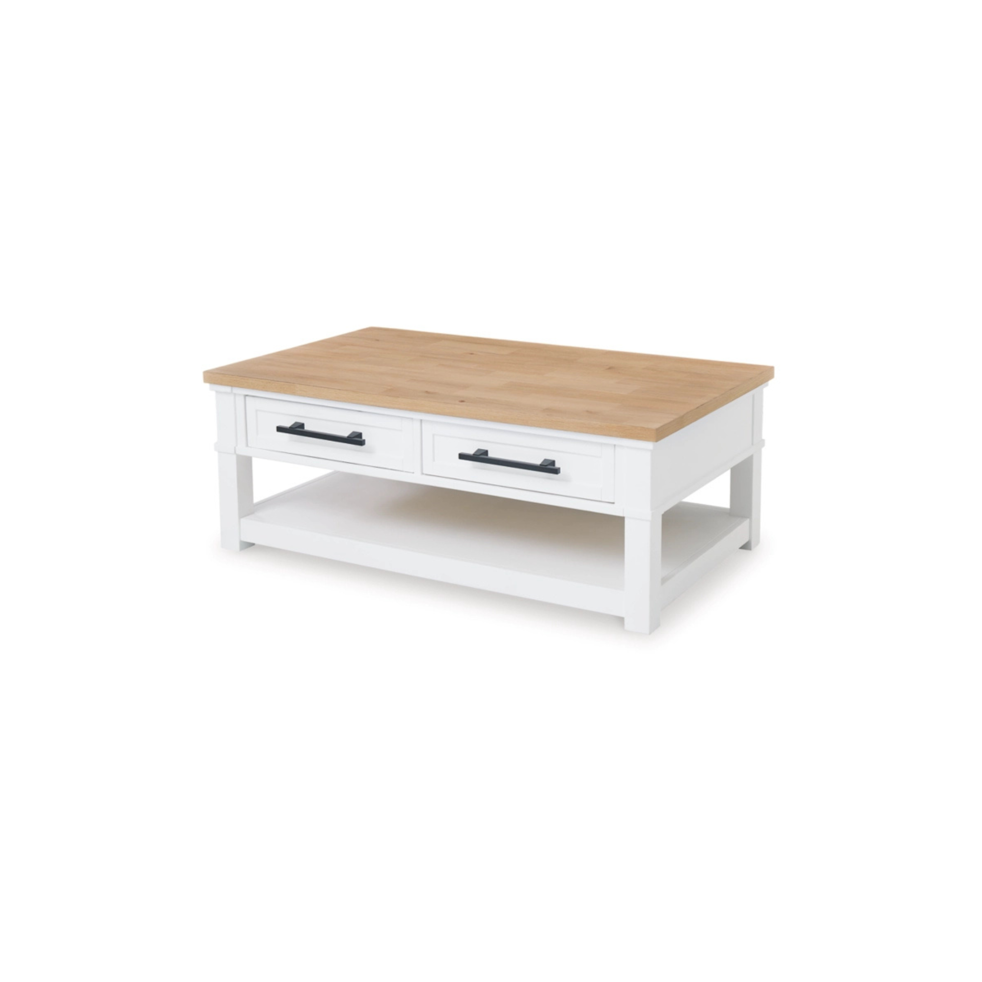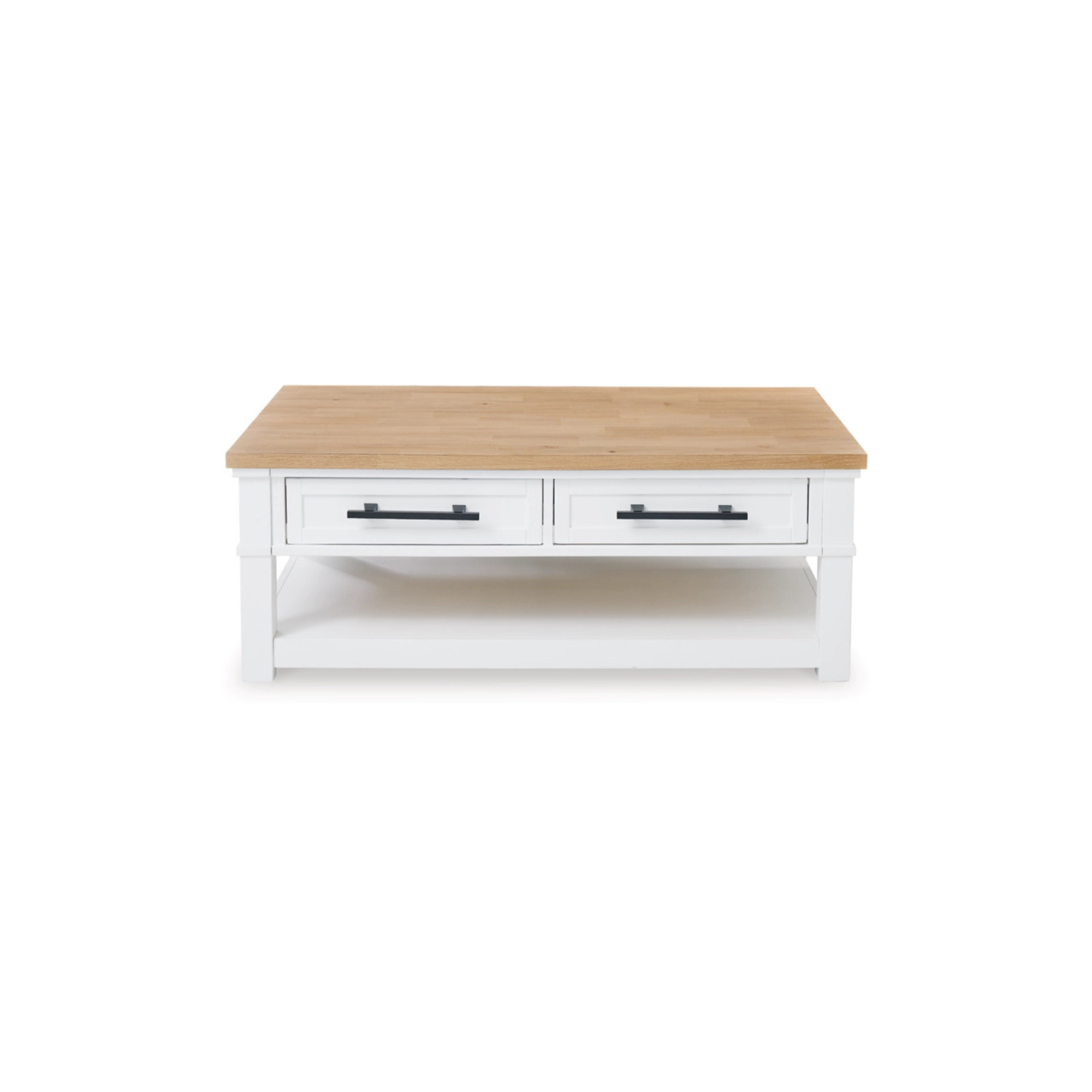 Ležeran stil s karakterom. Dvobojni Ashbryn klub sto podiže ljestvicu udobnog i prijatnog dizajna. Čvrsta silueta s klasičnim bijelim finišem i crnim metalnim okovima odiše modernim rustičnim šarmom. Gornja ploča od hrastovog furnira donosi opuštenu estetiku. A uz dvije fioke i donju policu, ovaj pažljivo osmišljeni komad omogućava vam da svoje predmete izložite ili diskretno sklonite.