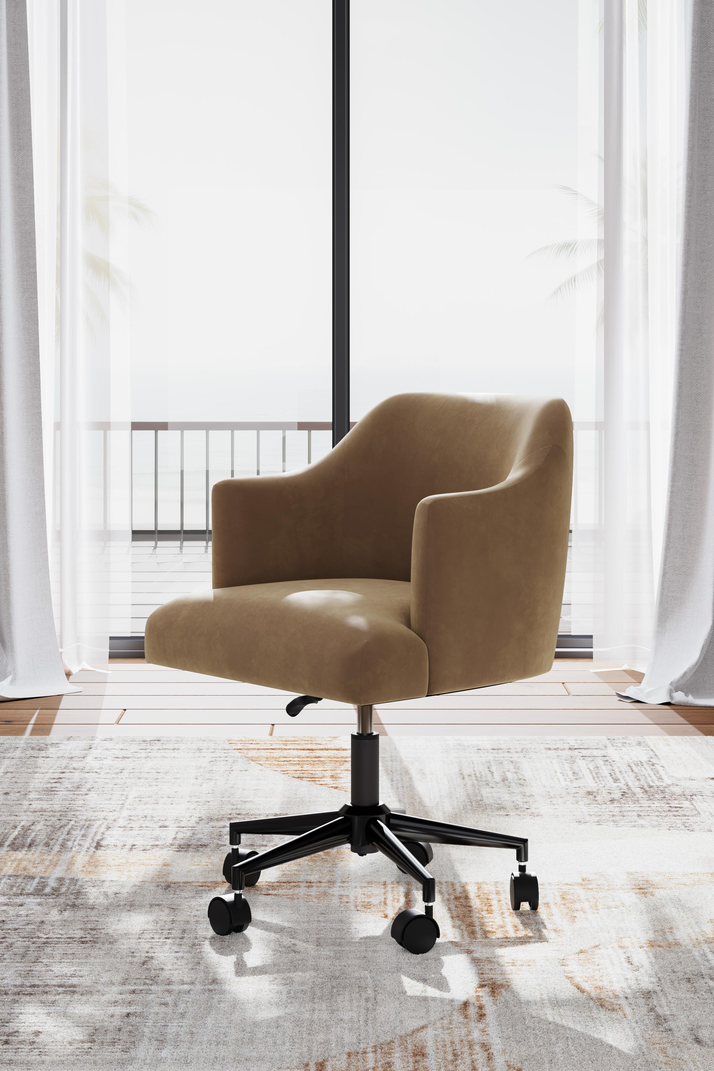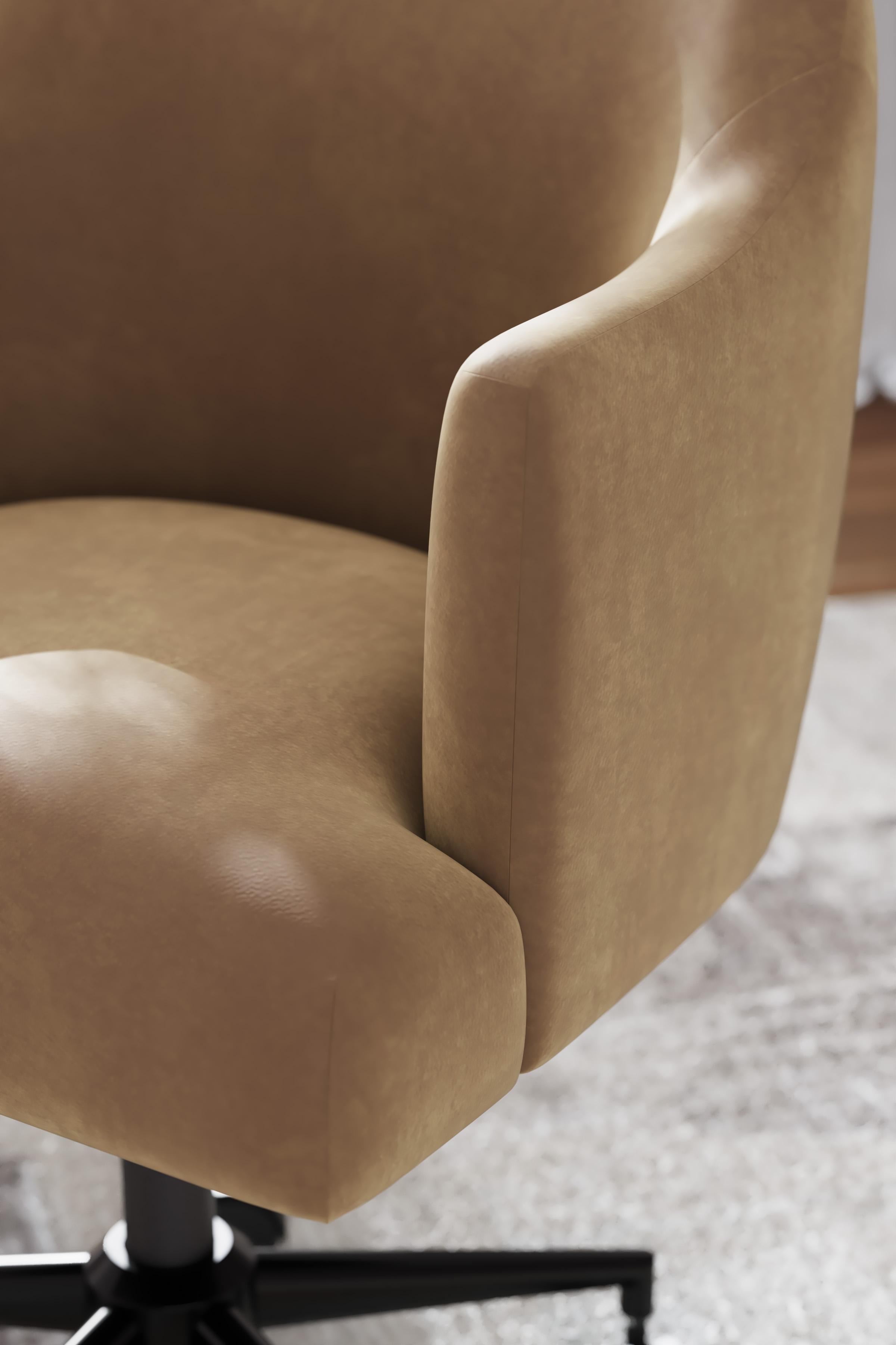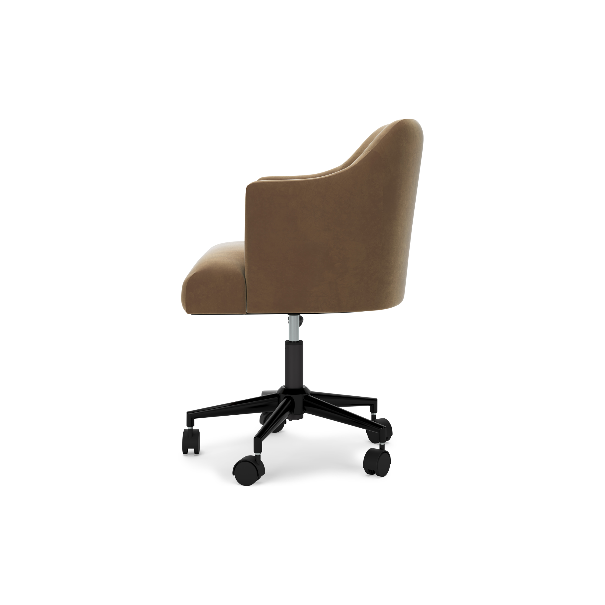 Austanny radna stolica za kućnu kancelariju vješto spaja moderan dizajn i funkcionalnost. Njena retro-inspirisana presvlaka baršunaste teksture unosi suptilnu eklektičnu notu. Točkići i mogućnost okretanja za 360 stepeni omogućavaju lako kretanje i društvenu interakciju tokom rada. Ovo je komad koji postaje neizostavan dio svake stilizovane kućne kancelarije.