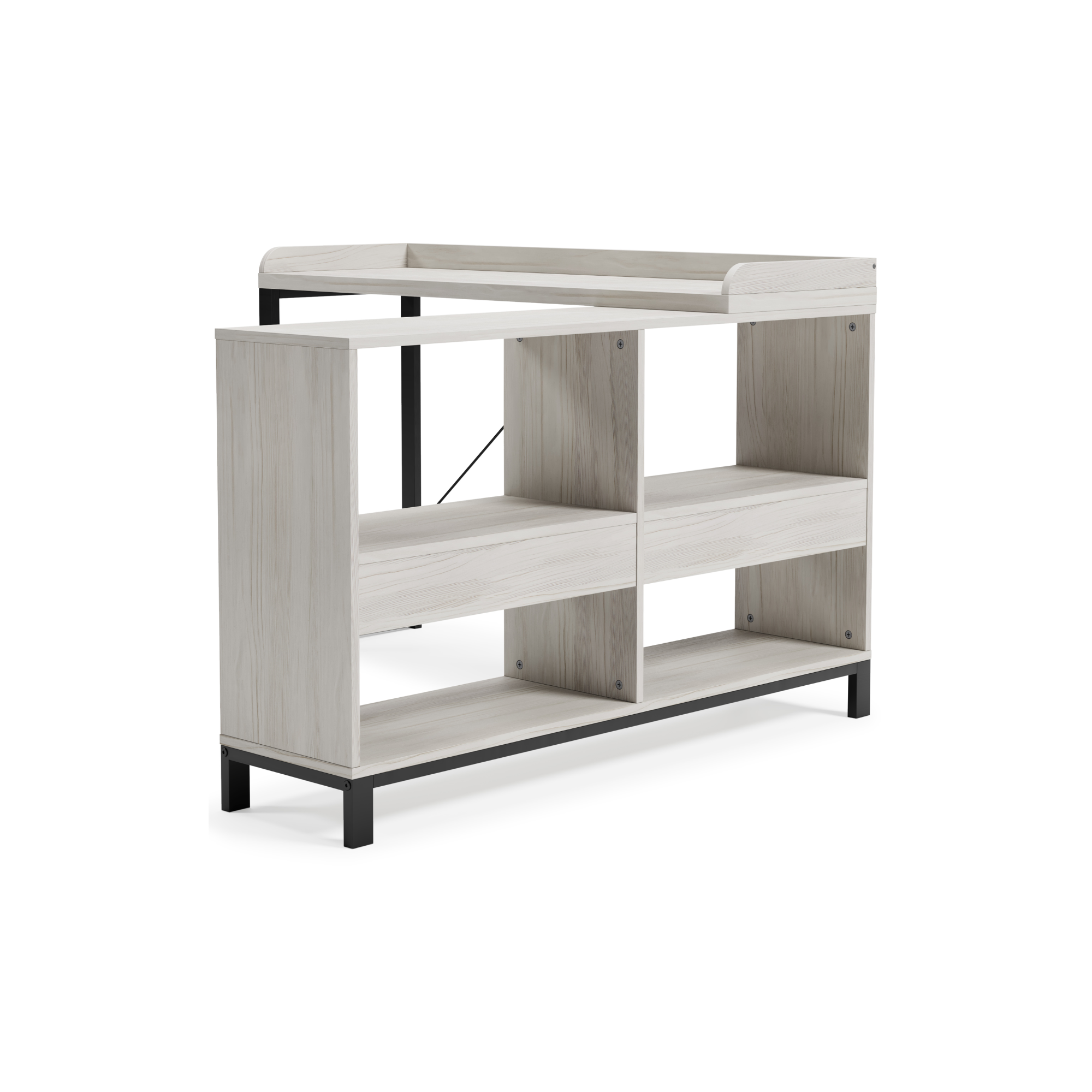 Volite estetiku urbanog rustičnog stila? Iskoristite je u svoju korist uz Bayflynn radni sto u obliku slova L. Ovaj jednostavno upečatljiv komad kancelarijskog namještaja odiše svježim, modernim izgledom zahvaljujući ispranom bijelom finišu i crnom metalnom okviru. Uz ovaj ležerno elegantan sto dolazi i otvorena polica koja pruža dovoljno prostora za odlaganje svih vaših kancelarijskih potrepština.