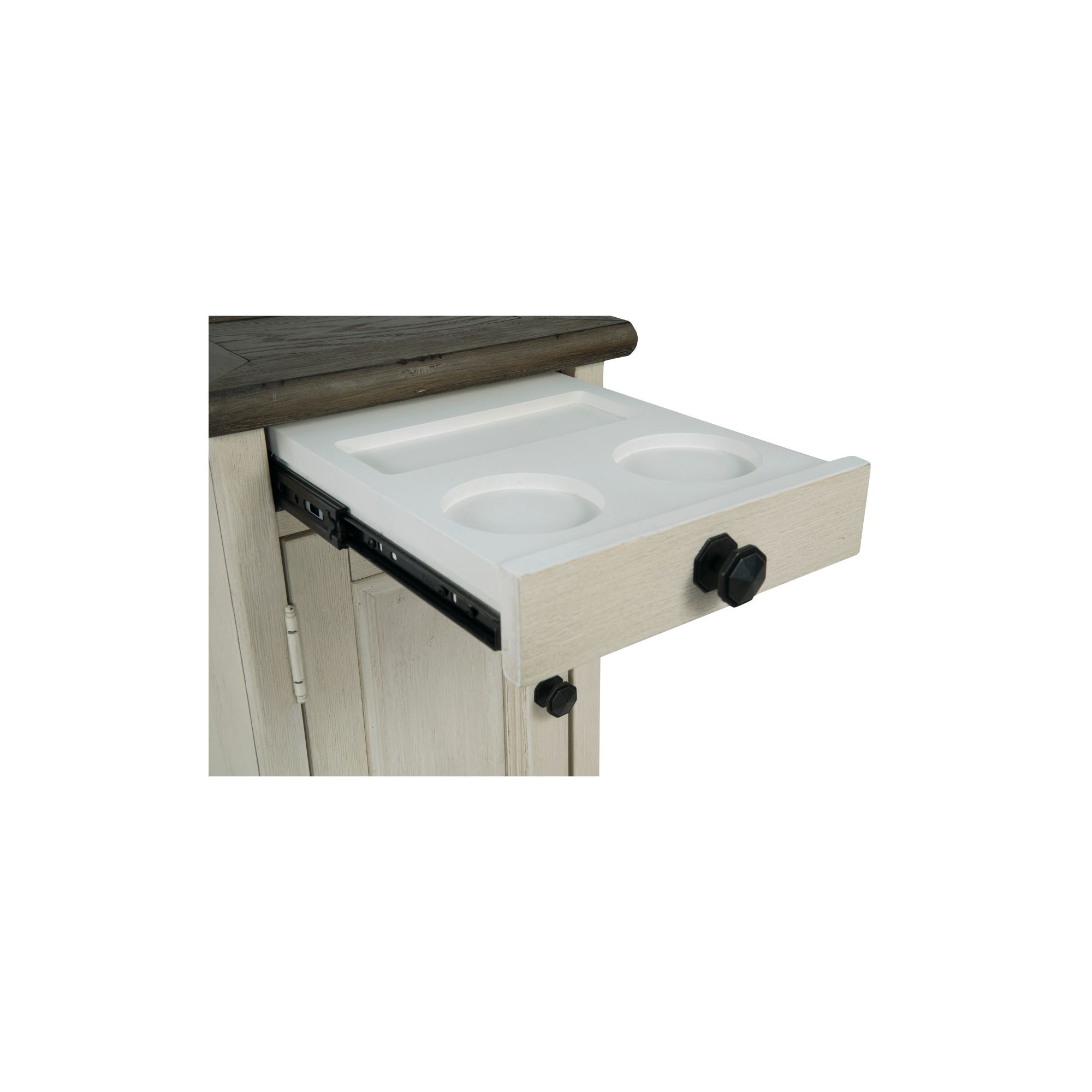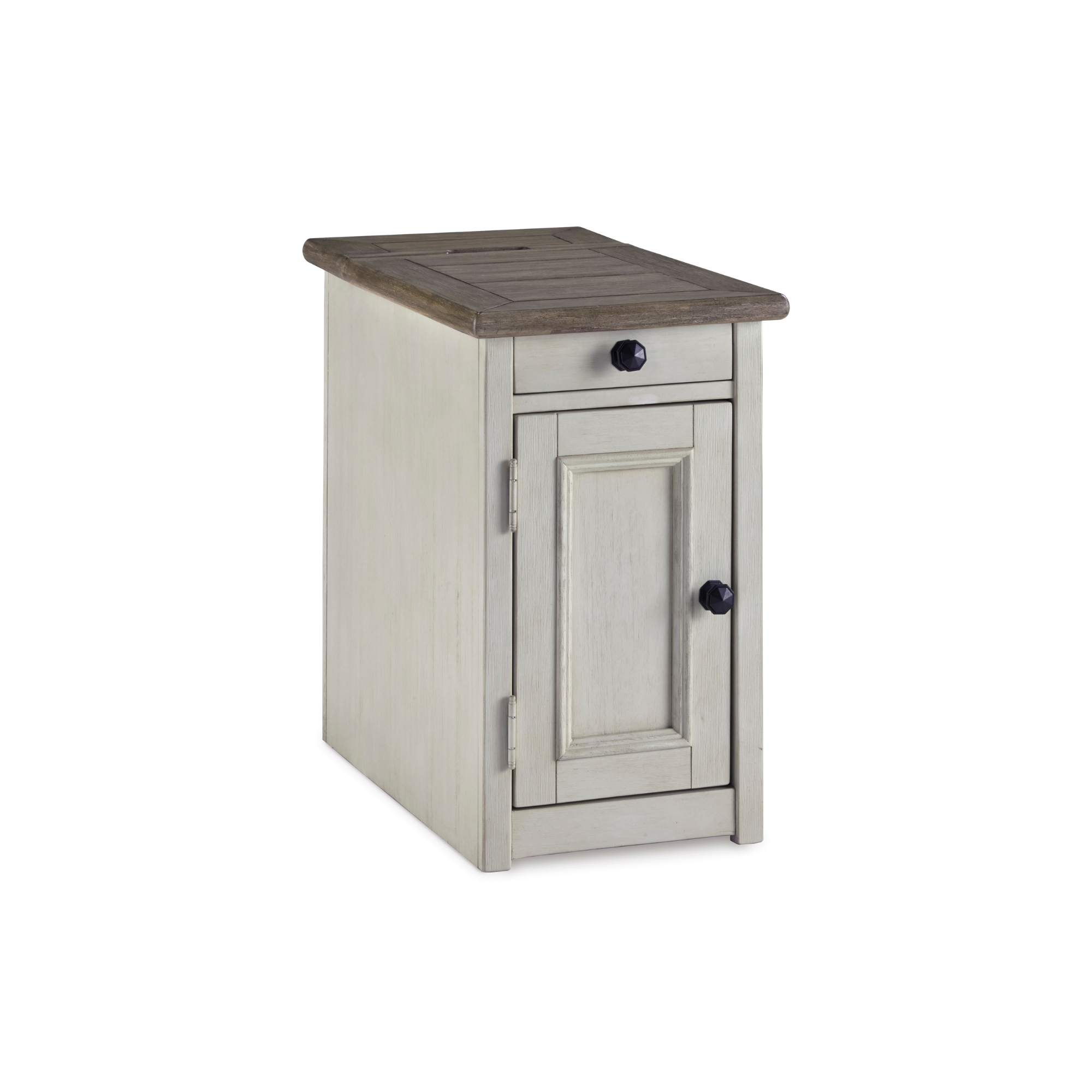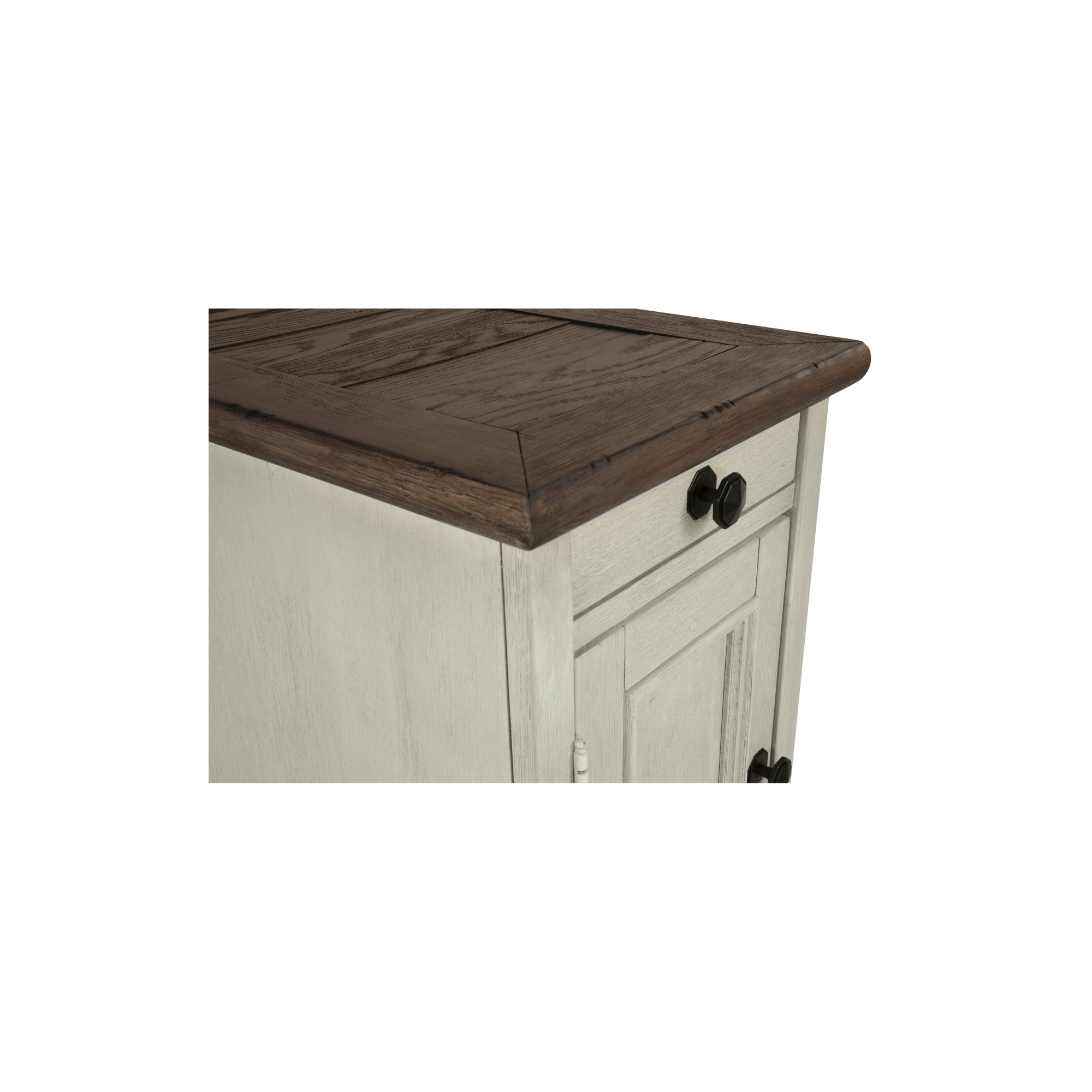 Pokaži i organizuj svoje omiljene stvari uz pomoć Bolanburg bočnog stolića. Njegova teksturirana antikno bijela završnica stvara efektnu dvobojnu vintage estetiku, dok ugrađene utičnice i USB priključci donose dodatnu funkcionalnost. Ovo je komad namještaja u kojem ćeš uživati godinama.