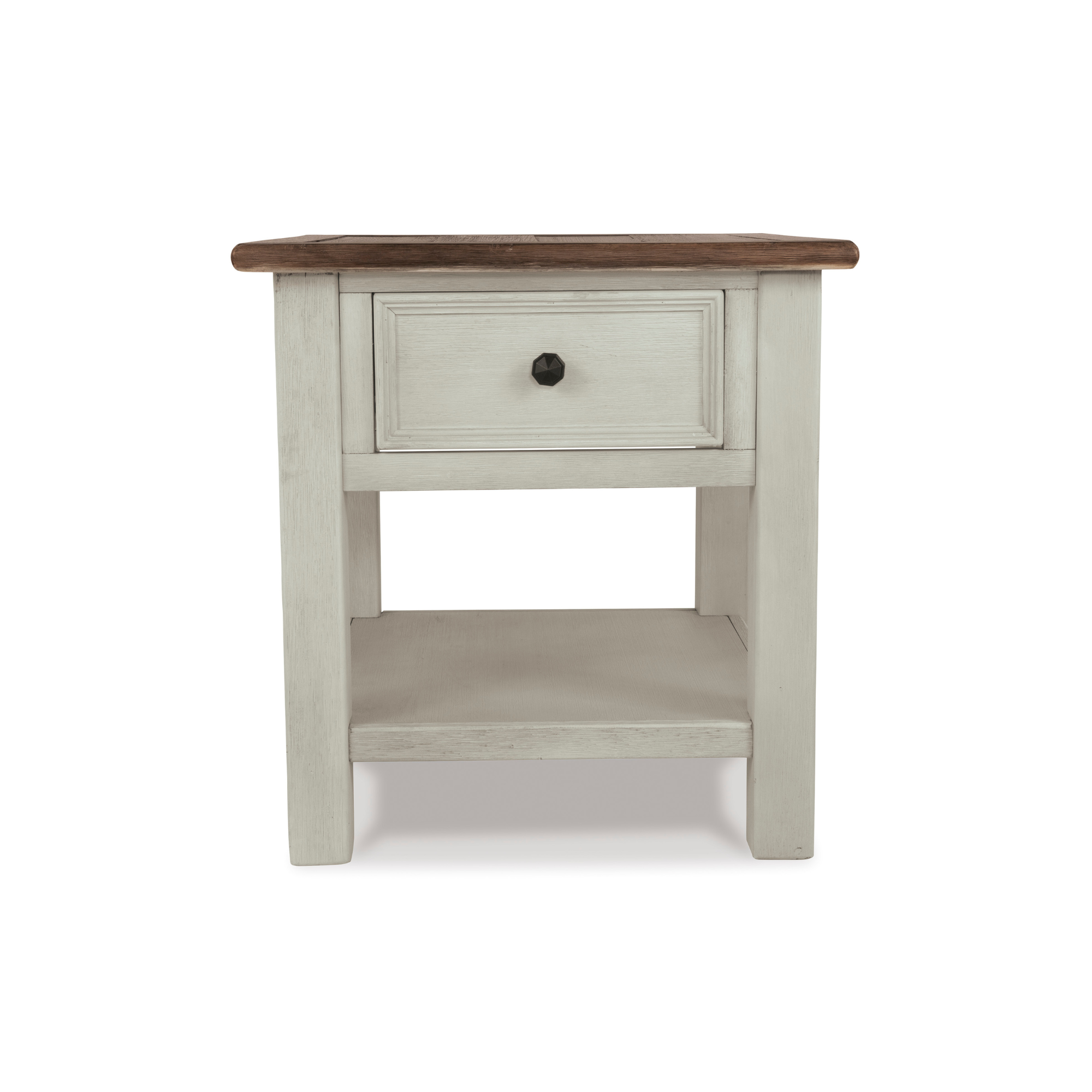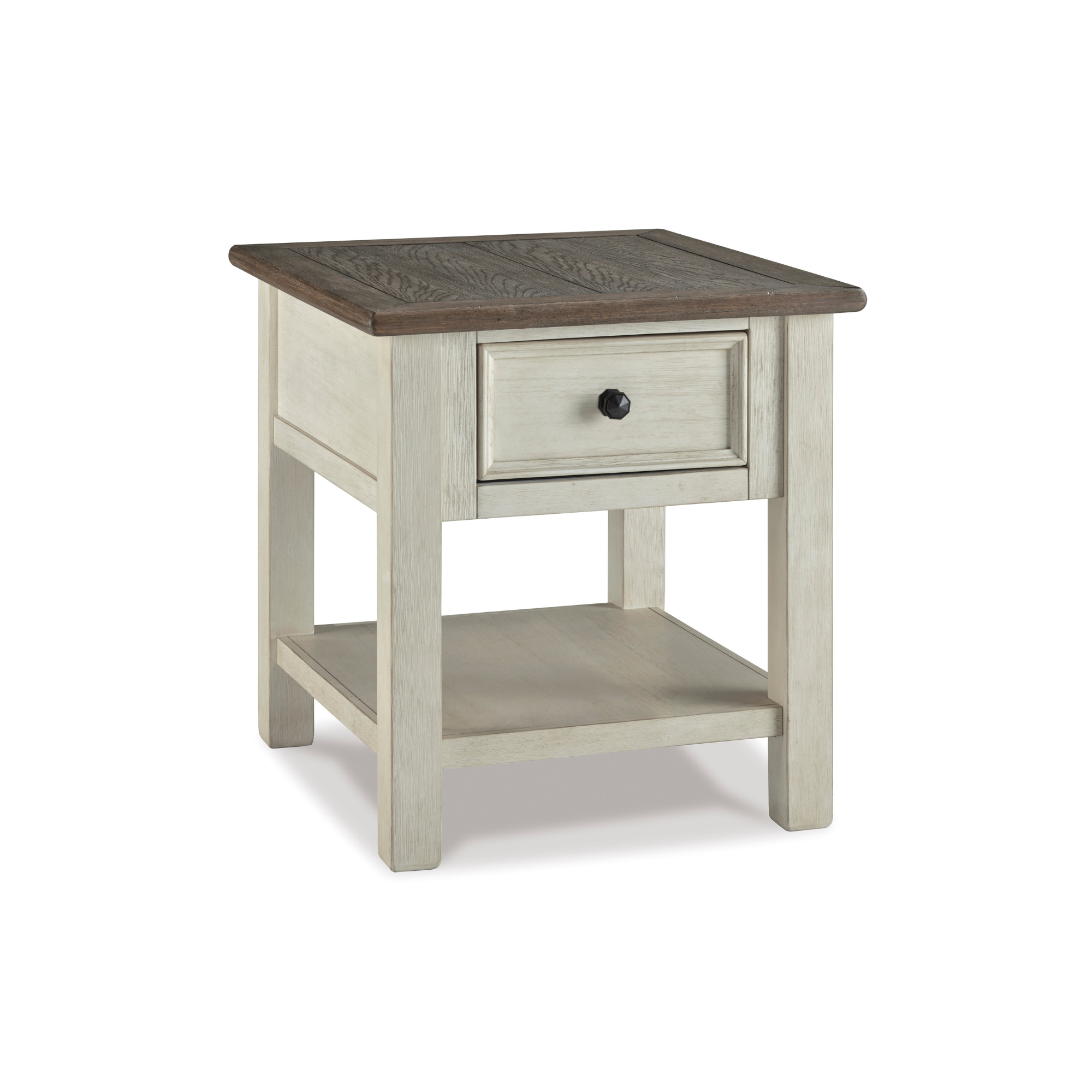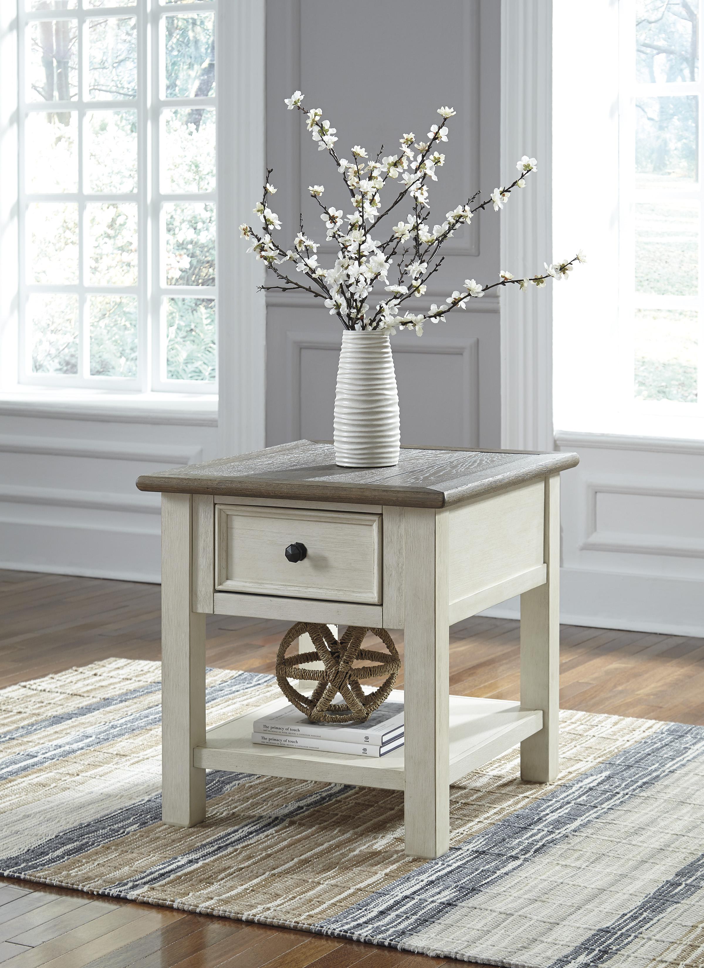 Bilo da je vaš stil svježi seoski, shabby chic ili seoska kućica, pomoćni stočić Bolanburg ostavlja snažan utisak. Njegova dvobojna, blago izlizana završna obrada spaja vremenski istrošeni hrast s antikno bijelom bojom, dajući mu još šarmantniji karakter. Među dopadljivim detaljima su vrh u stilu daske i okvira, crna fasetirana okovska i fioka sa glatkim klizanjem za daljinske upravljače i druge sitnice.