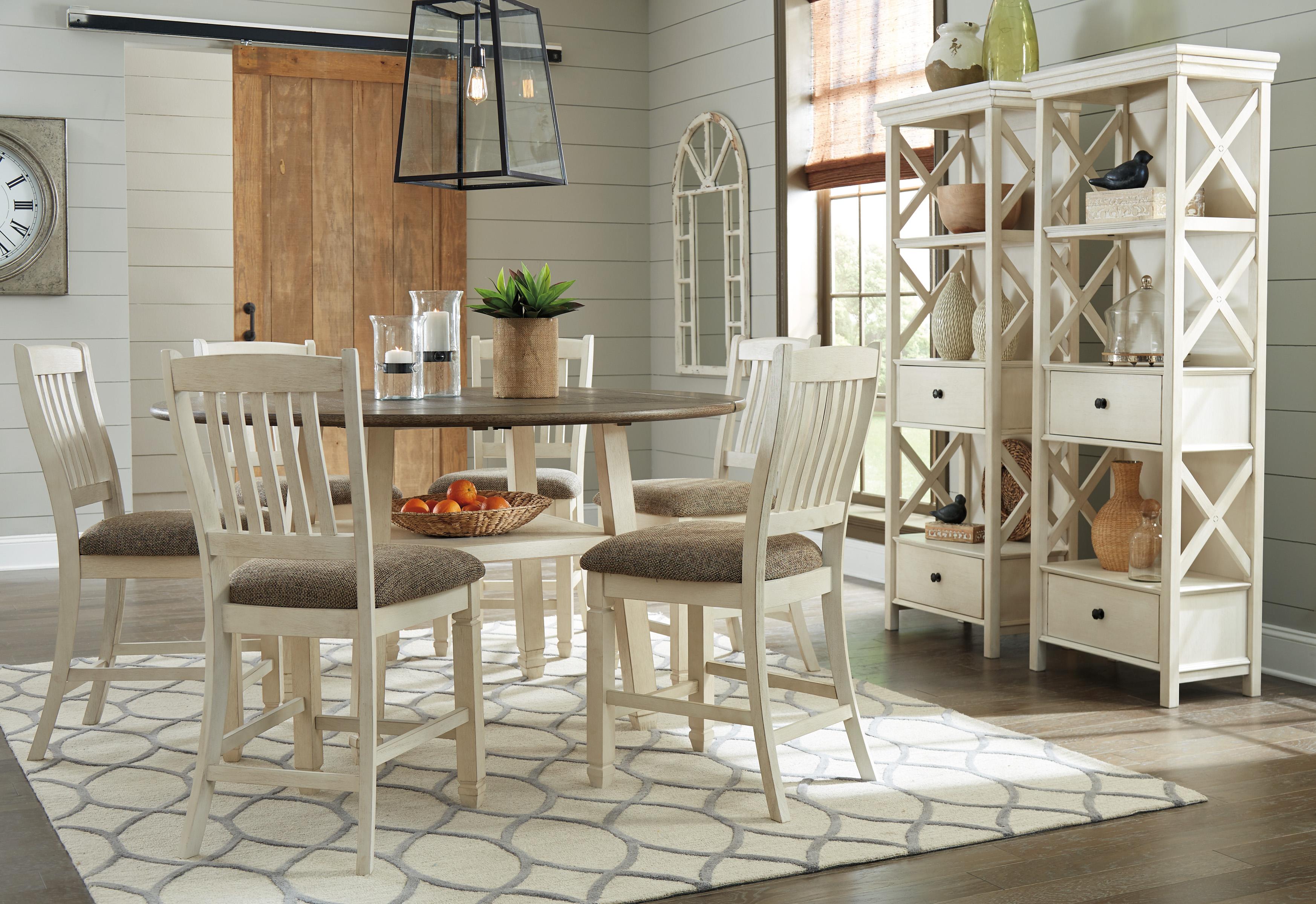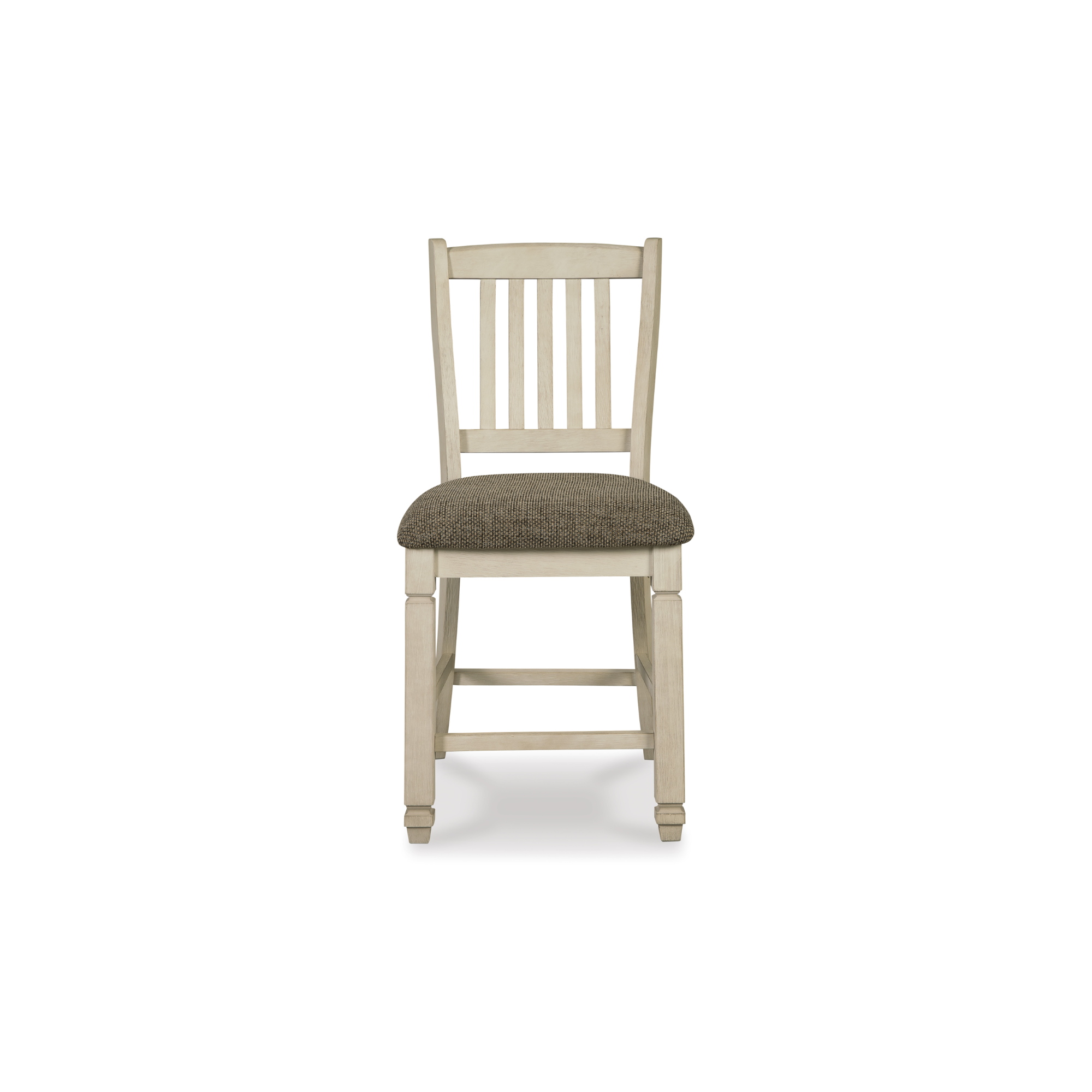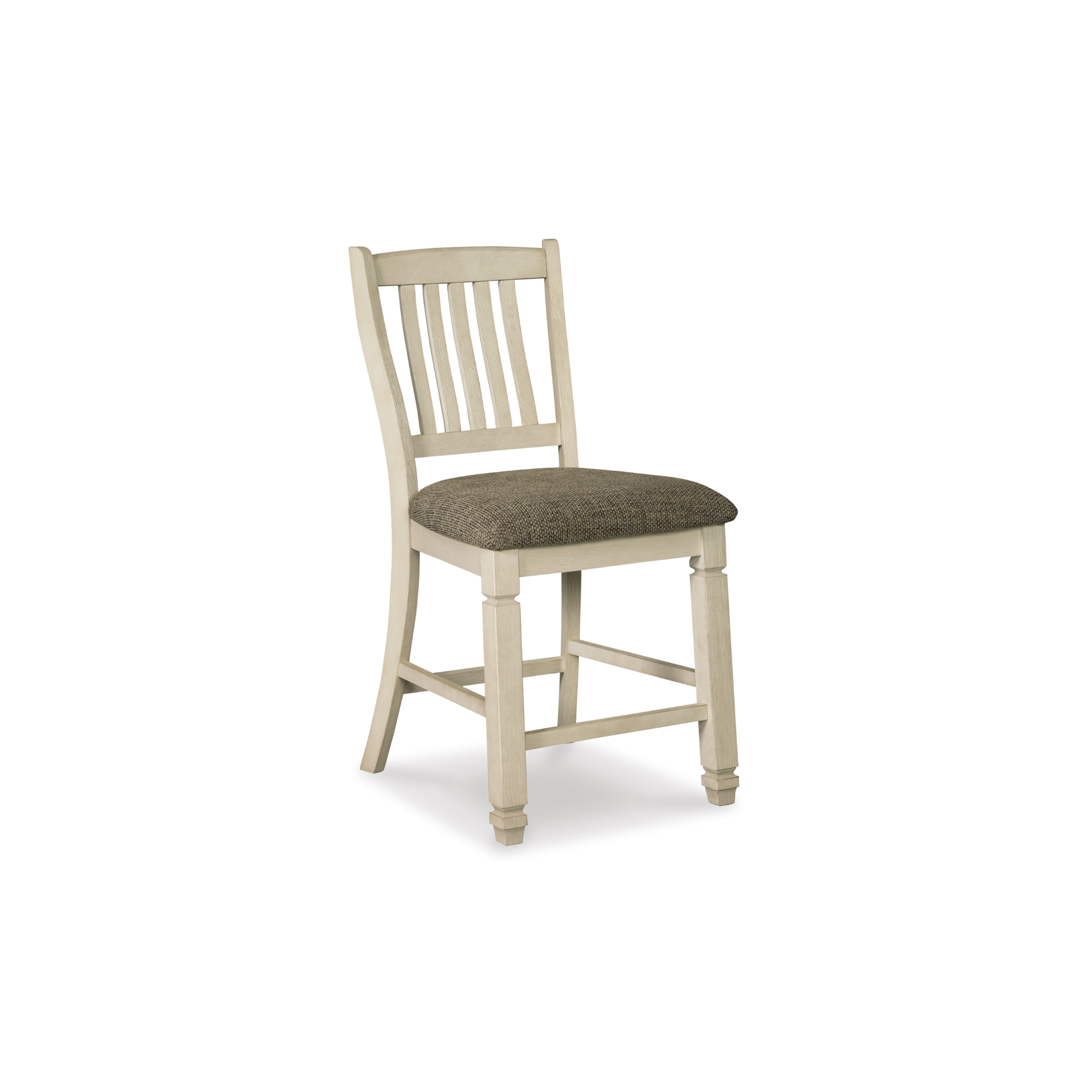 Ljepota Bolanburg tapacirane barske stolice je nešto u čemu vrijedi uživati. Dizajnirana da pruži udobnost i stil, ova stolica s naslonom u obliku grablji privlači pažnju tapaciranim sjedištem prekrivenim čvrsto tkanom tkaninom koja savršeno upotpunjuje antikno bijeli finiš.
