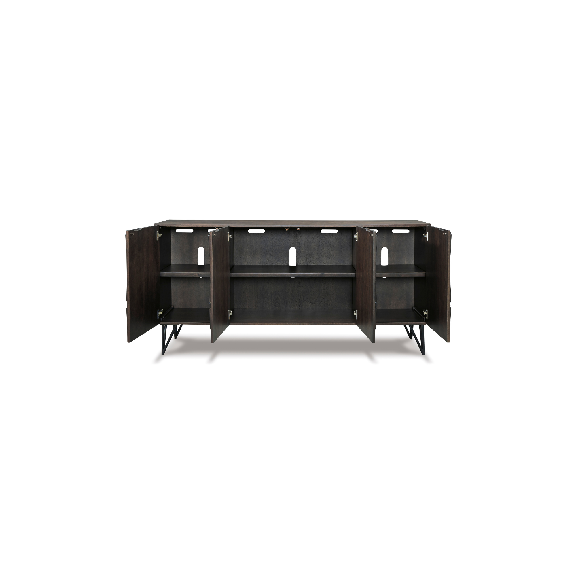 Otkrijte sve mogućnosti s Chasinfield TV stalkom izuzetno velikih dimenzija. Dokaz da namještaj može biti i pravo umjetničko djelo, ovaj moderan i elegantan komad — koji podržava televizore do 190cm — ističe se geometrijskim reljefnim uzorkom koji unosi dubinu i dinamiku. Podesive police i otvori za kablove osiguravaju funkcionalnost, dok njegova svestranost omogućava upotrebu i kao konzola u hodniku ili pomoćni element u trpezariji. Praktičnost nikada nije izgledala ovako dobro.