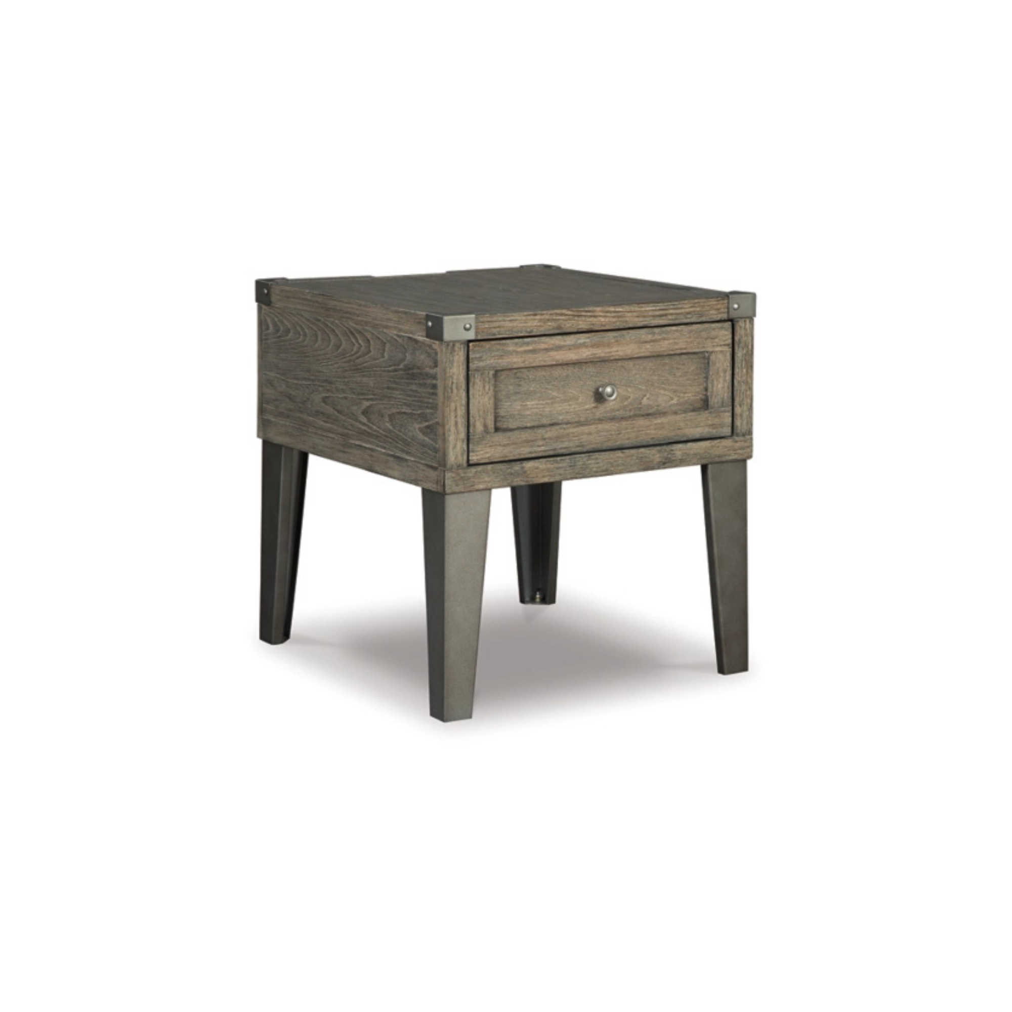 Slavi svjetliju stranu modernog industrijskog stila, Chazney pomoćni sto je savršen primjer spoja forme i funkcionalnosti. Njegova suptilna, izblijedjela završna obrada omogućava prirodnoj teksturi drveta da bude u prvom planu. Metalni nosači i sužene metalne noge u srebrnkastoj završnici dodaju hladan, ali profinjen detalj. Ladica koja se glatko otvara pruža dovoljno praktičnog prostora za odlaganje.