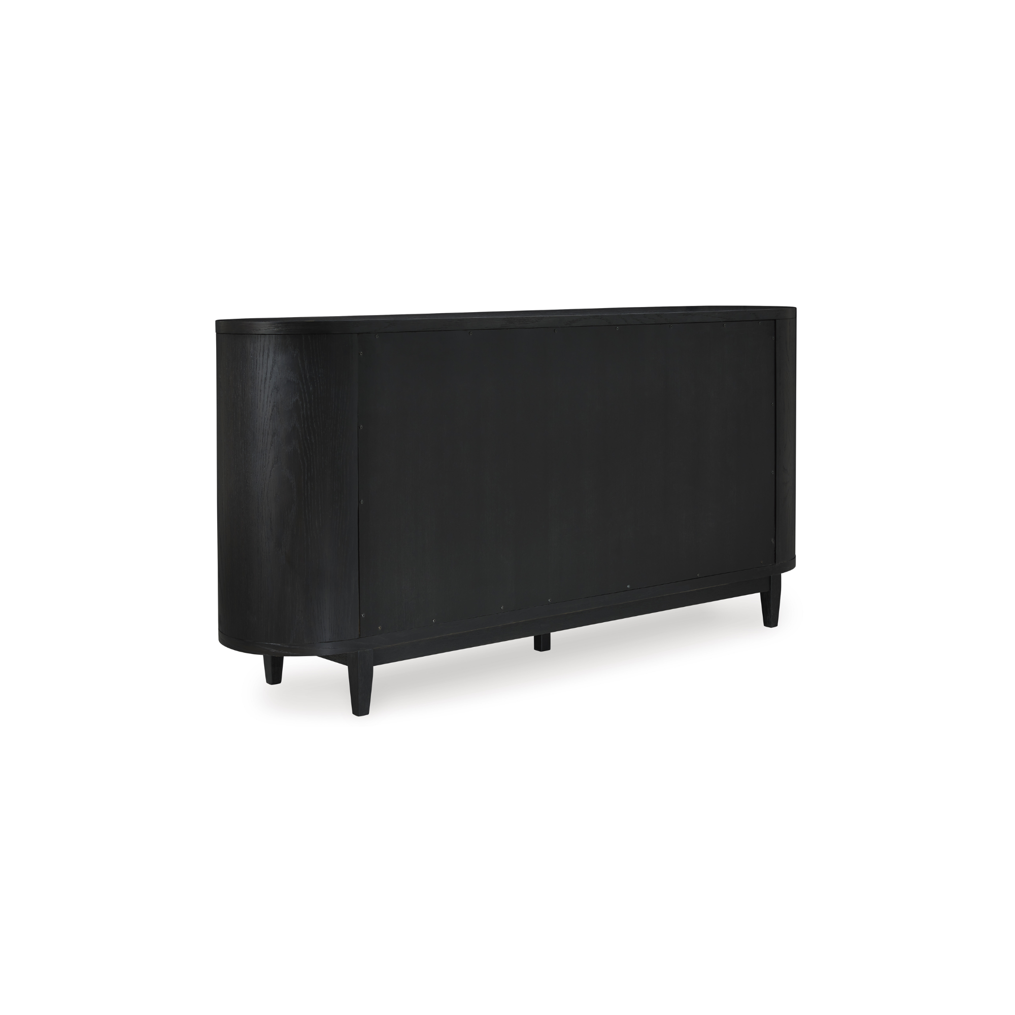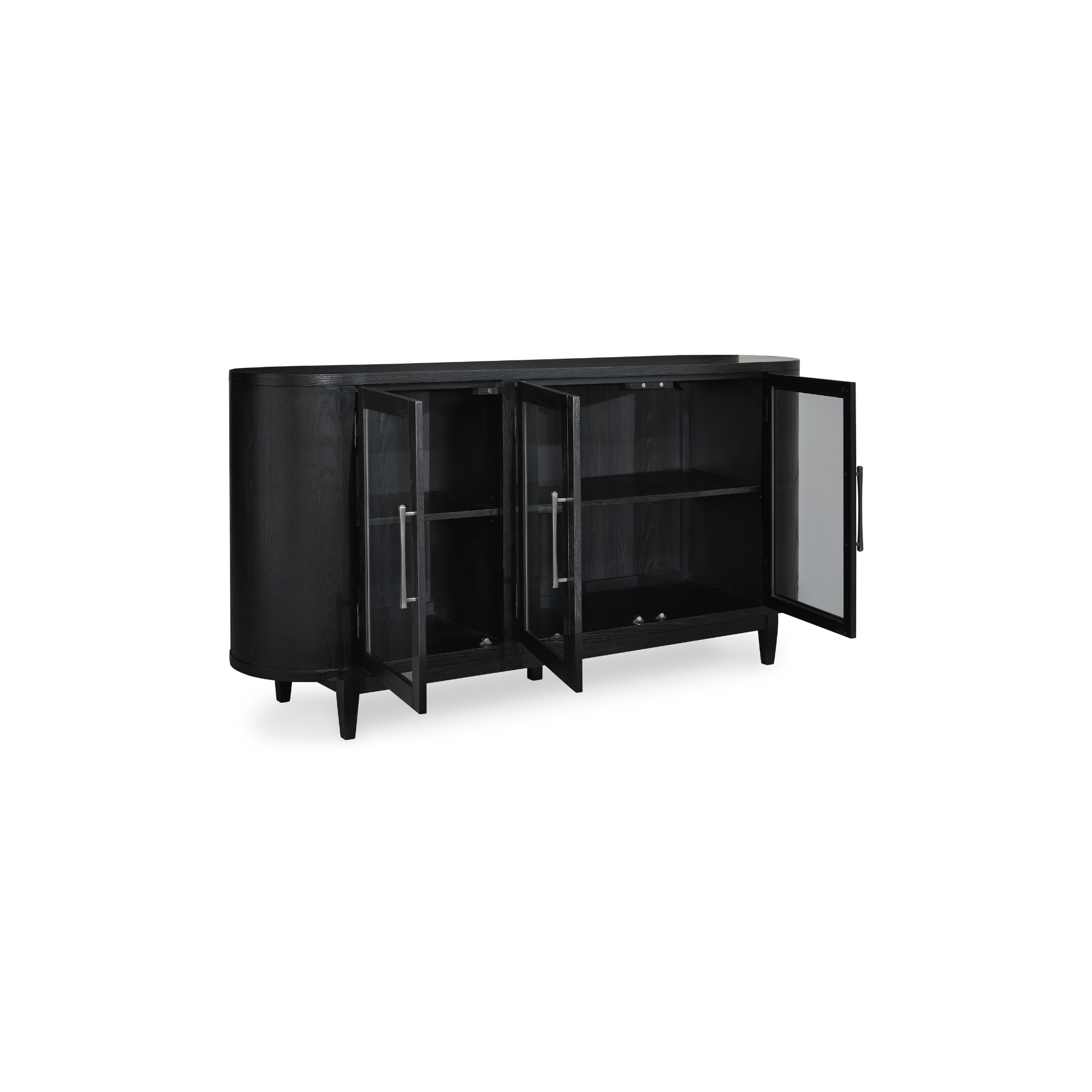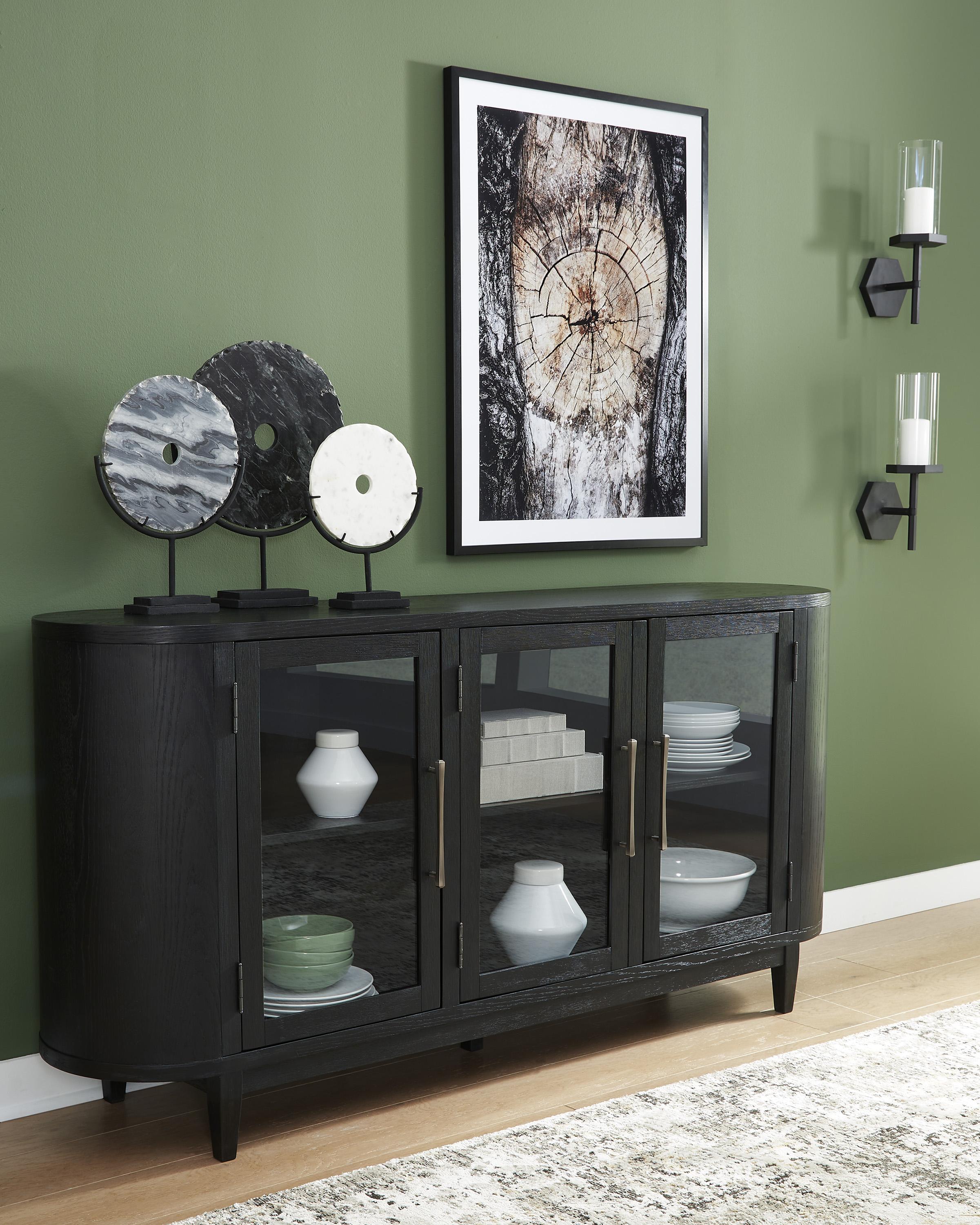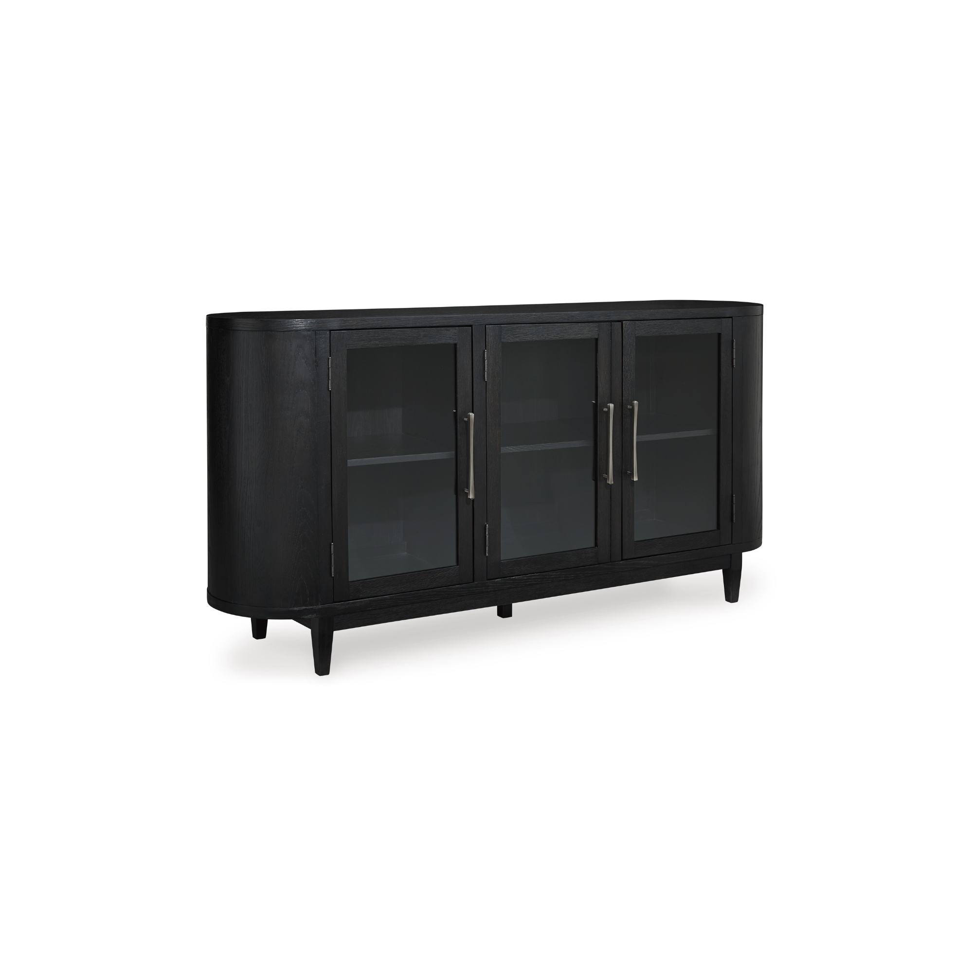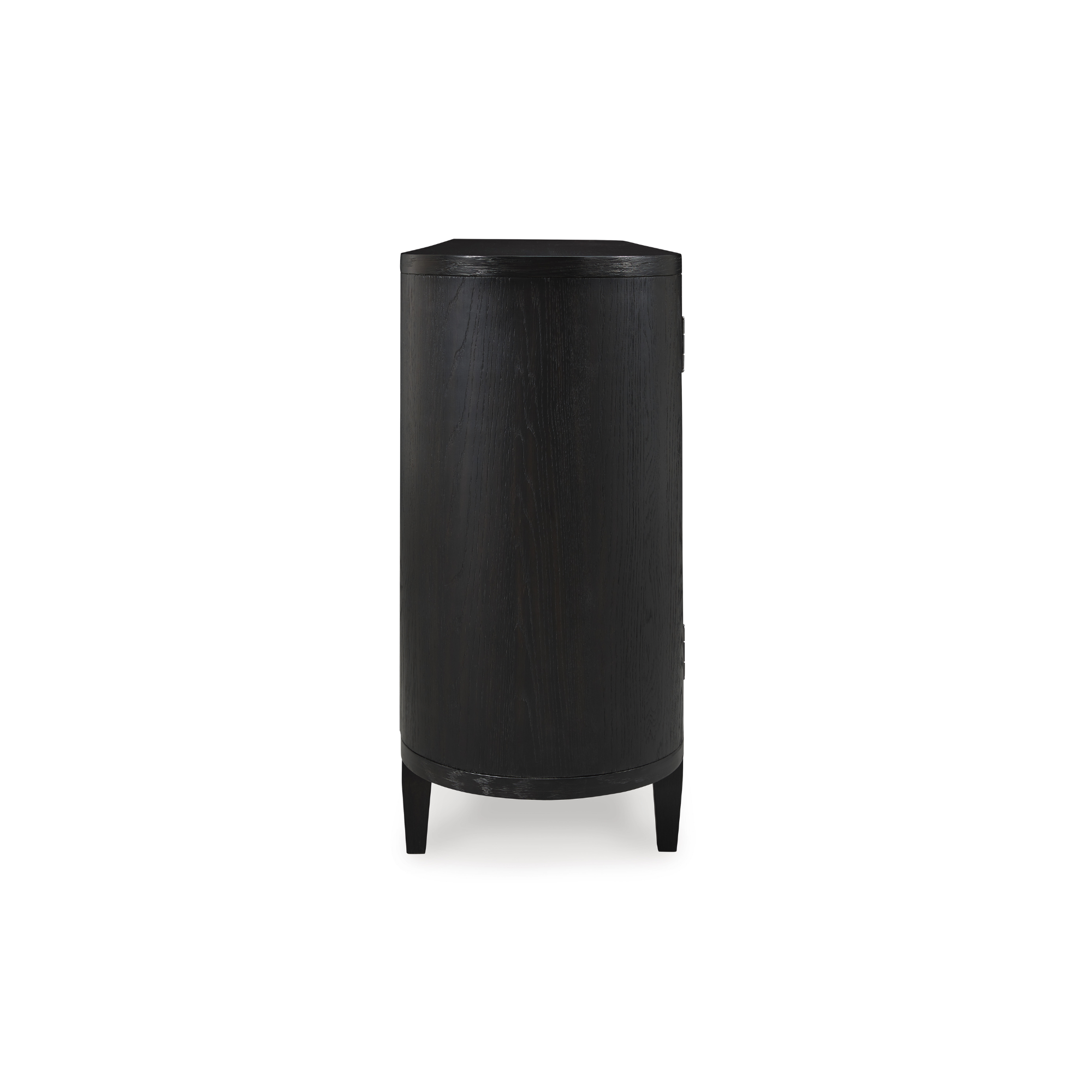 Inspirisan art deco dizajnom, Rowanbeck trpezarijski ormarić ostavlja snažan utisak na jednostavno zapanjujući način. Njegova veličanstvena zaobljena silueta dodatno je naglašena bogatom slojevitom crnom završnom obradom na teksturiranoj površini drveta. Uz staklena vrata, unutrašnje police i sužene noge, predstavlja savremen i upečatljiv komad koji ste tražili kako biste unaprijedili kasne večere i porodične gozbe.