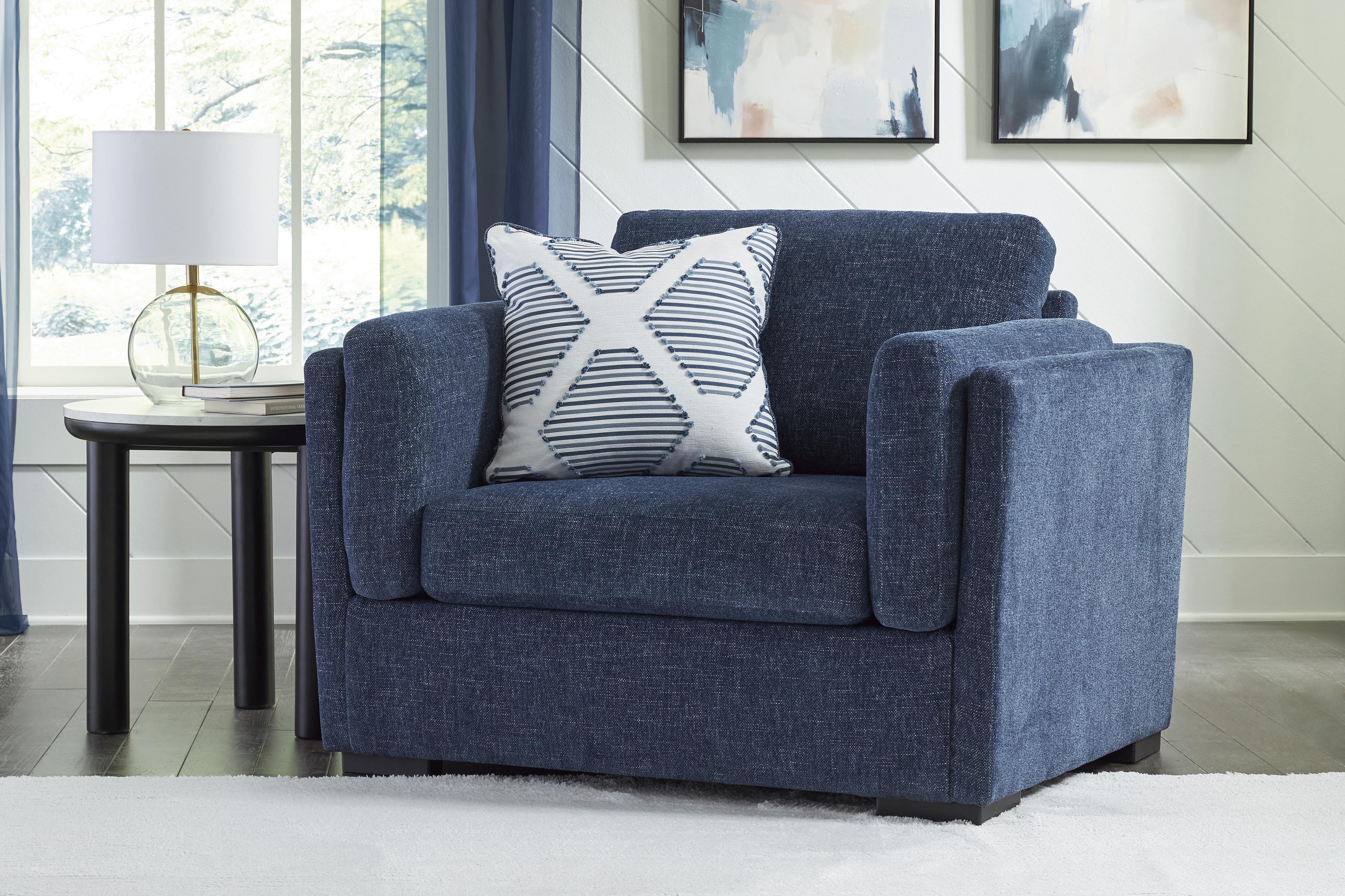 Opušteni savremeni stil susreće bezbrižno uživanje uz Evansley predimenzioniranu fotelju. Uz nju ne morate brinuti o sitnicama — jednostavno se zavalite i opustite. Zahvaljujući modernoj tamnoplavoj nijansi, ostajete u koraku s trendovima dok uživate u udobnosti. Jastuci za oslonac na rukonaslonima dodatno povećavaju komfor, a navlake od Next-Gen Nuvella™ materijala perive u mašini čine održavanje izuzetno jednostavnim.