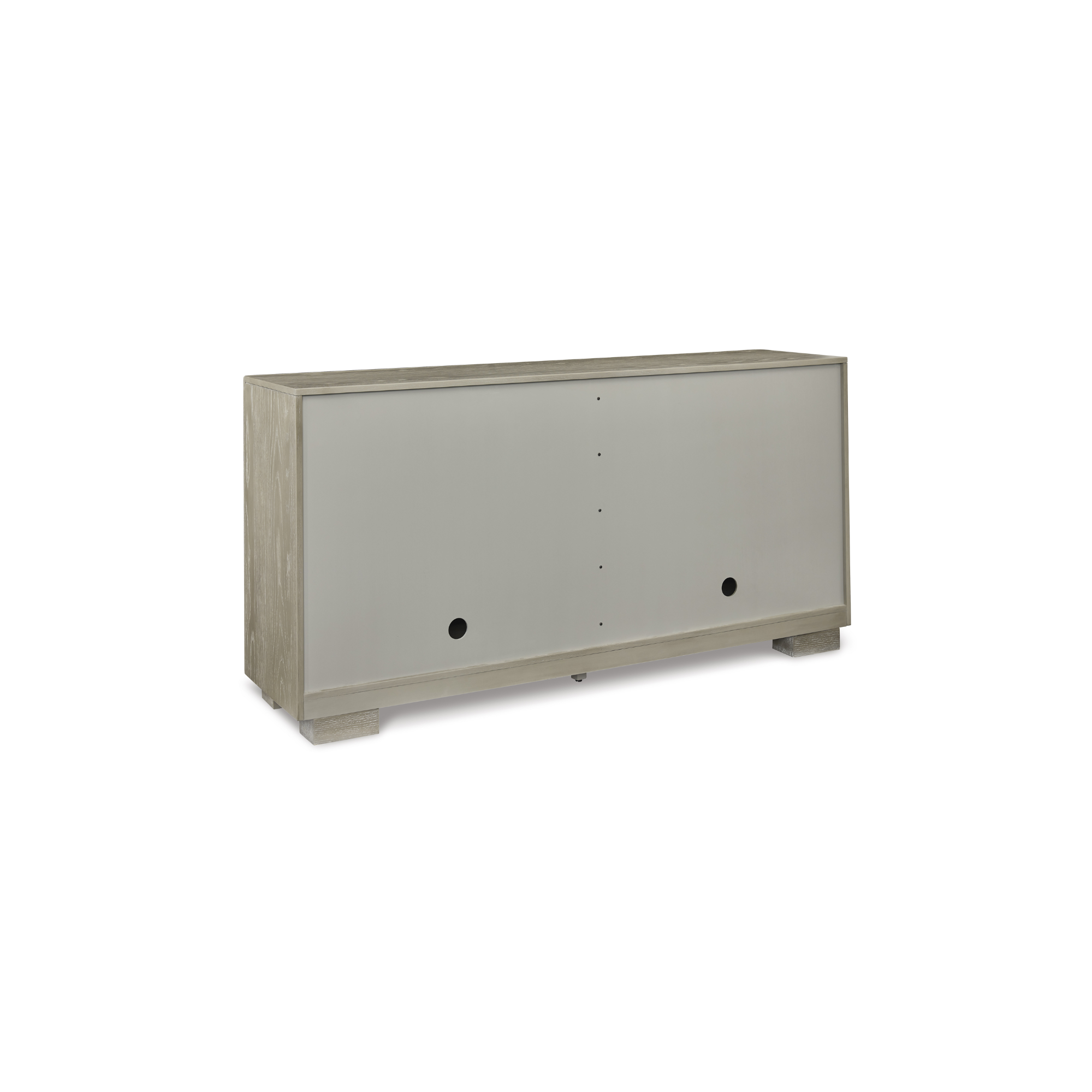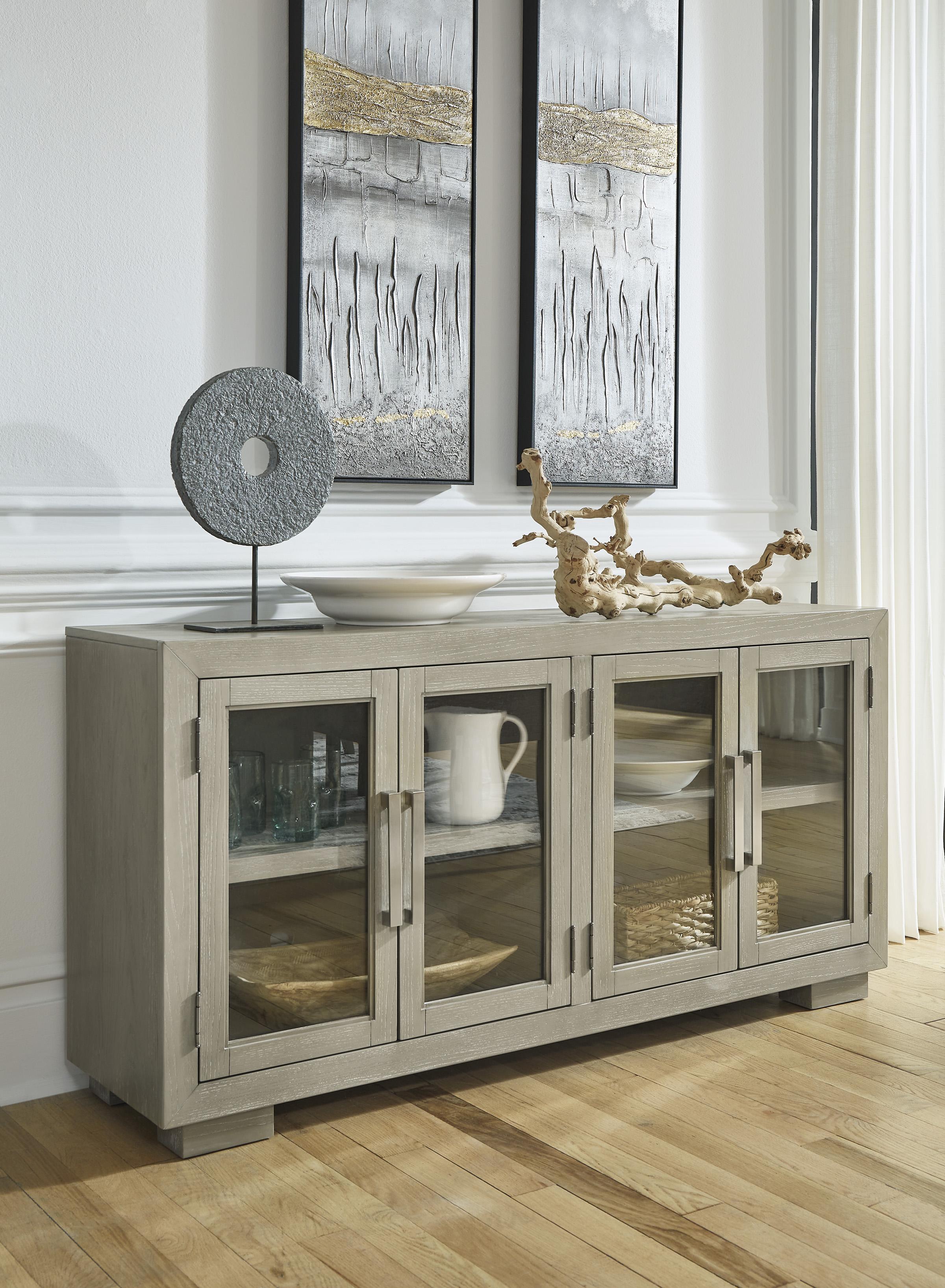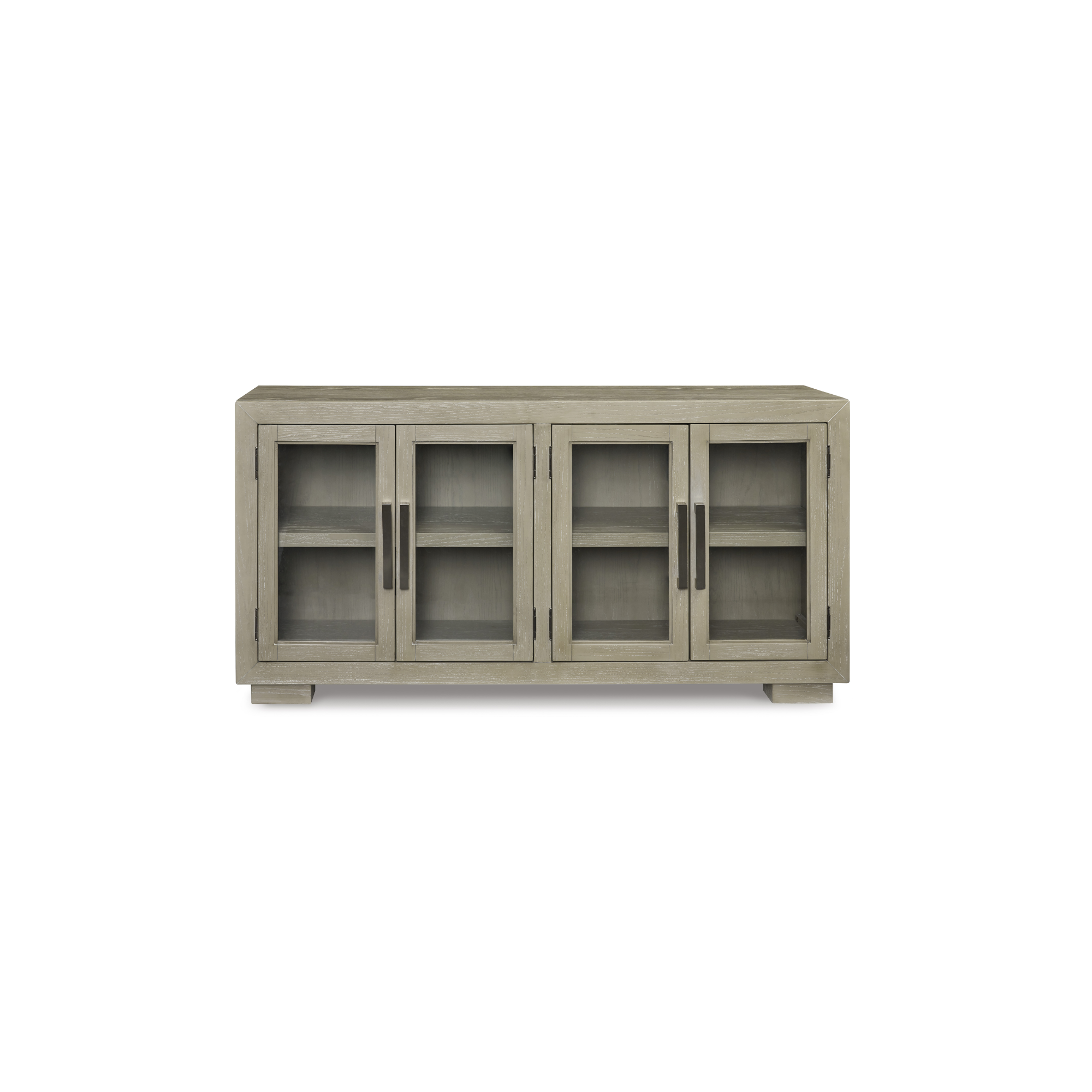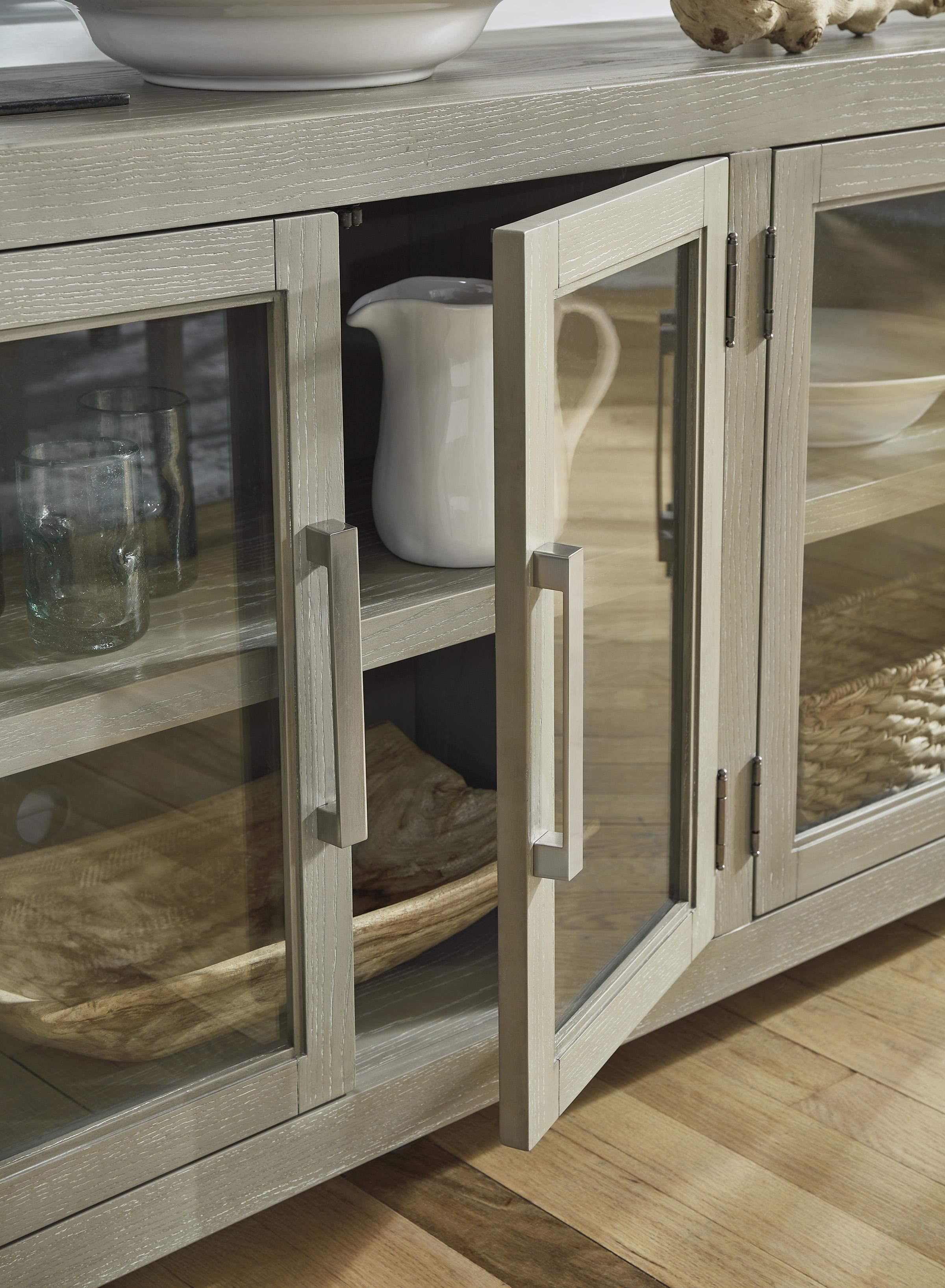Fawnburg komoda za trpezariju ima čist, savremen dizajn s opuštenim karakterom. Njena čvrsta silueta ističe se modernim sivosmeđim finišem. Dva para dvokrilnih vrata upotpunjuju elegantan dizajn sa staklenim frontama, idealnim za izlaganje vaše omiljene posuđe. Ručkice u starinskom pewter tonu dodaju završni detalj.