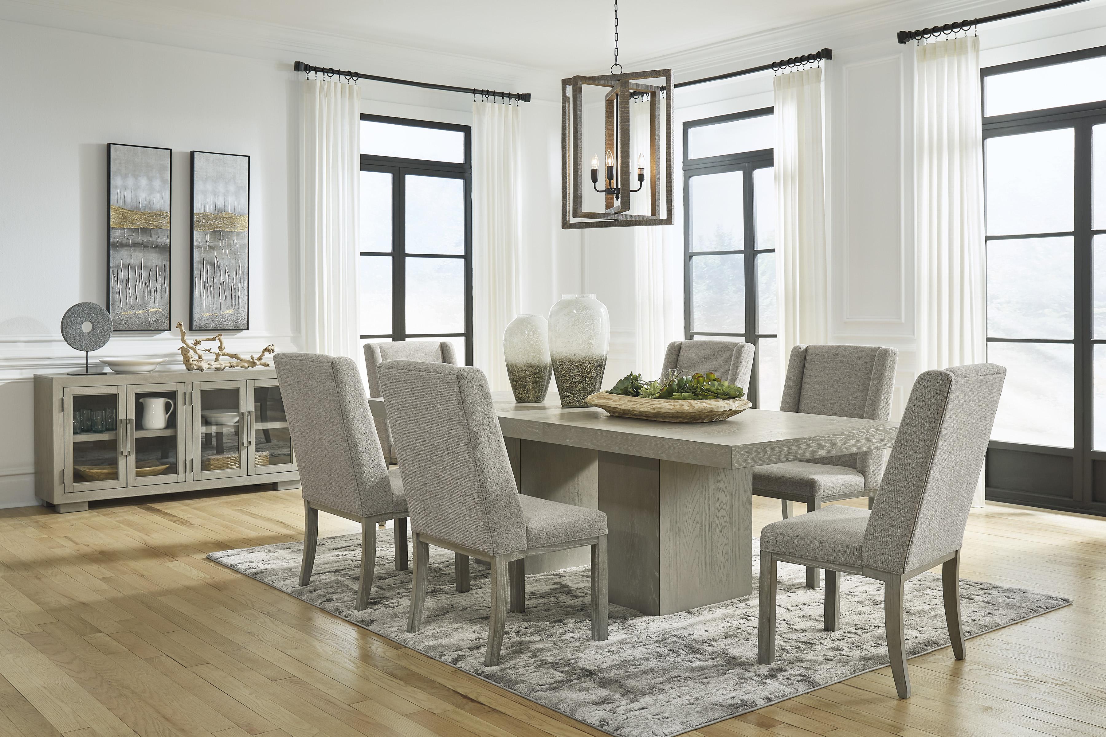 Fawnburg produžni trpezarijski sto ima čist, savremen dizajn s opuštenim ugođajem. Ovaj sto odiše duhom moderne umjetničke skulpture zahvaljujući dvije čvrste plintne baze i debeloj ploči. Moderna sivosmeđa boja dodatno naglašava njegov elegantan izgled, dok dodatna umetnuta ploča omogućava udobno sjedenje za osam osoba.