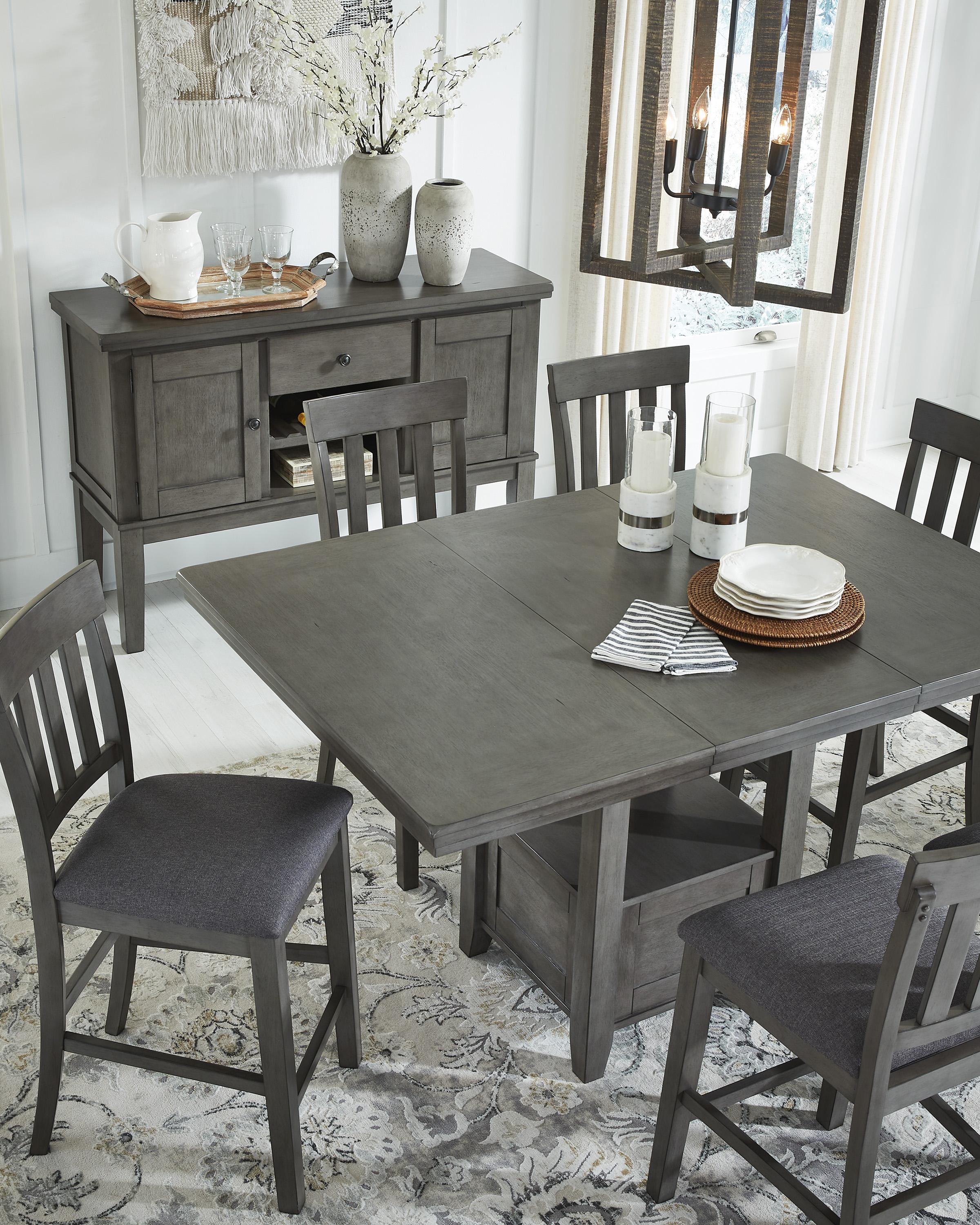 Moderna i u trendu. Hallanden povišeni trpezarijski sto s produžetkom dolazi u antik sivom tonu, pružajući savršen spoj savremenog i ležernog izgleda. Sto sadrži bazu s prostorom za odlaganje i uklonjivi produžetak za dodatni prostor za sjedenje, što olakšava raščišćavanje i proširenje površine stola. Uživanje u obrocima s porodicom i prijateljima nikada nije izgledalo ovako moderno.