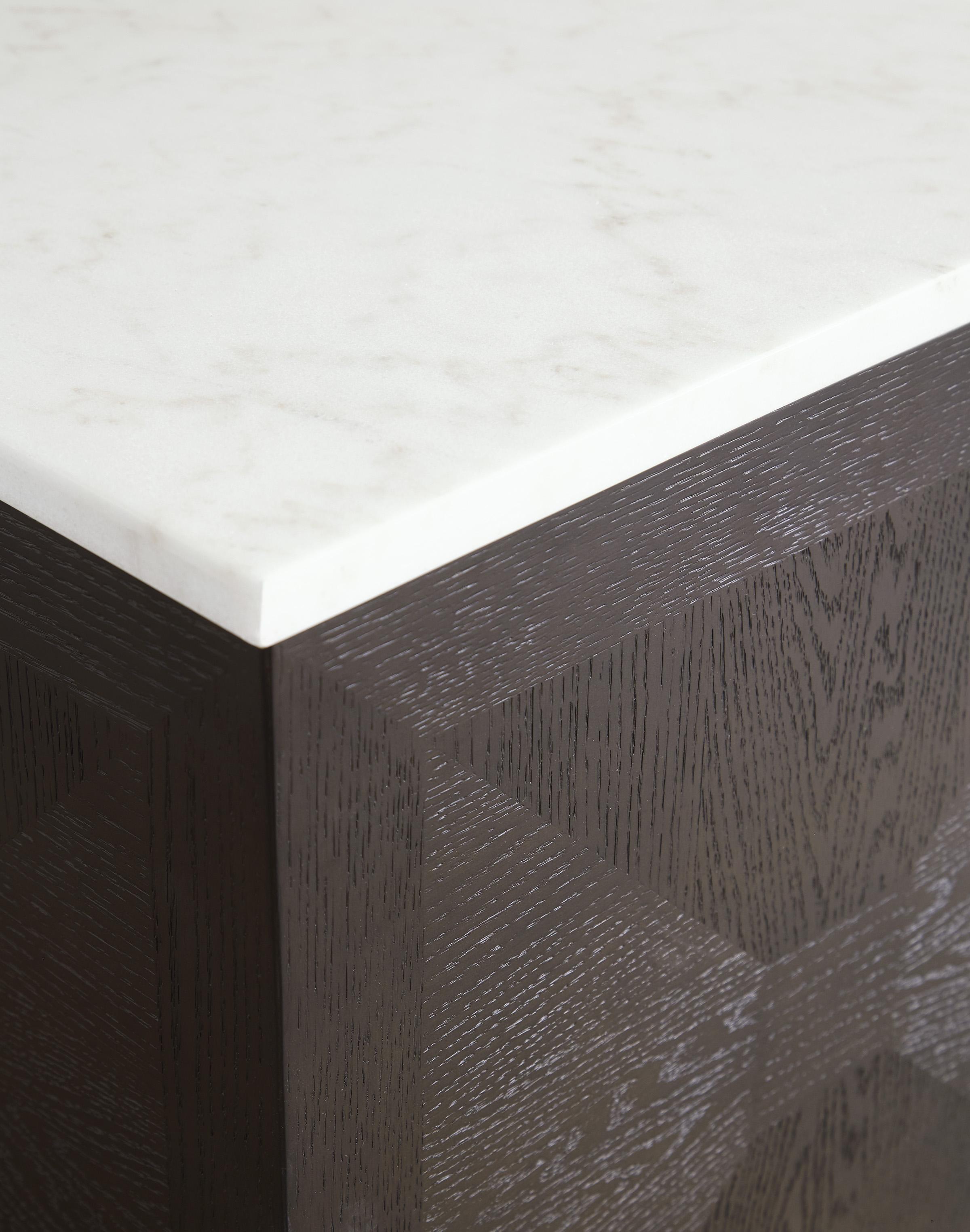 Sa svojim elegantnim, kvadratnim postoljem, Henridge pomoćni sto je svestran komad koji se lako uklapa u različite prostore. Može se koristiti samostalno ili u paru, pa čak i u grupi od tri stola za efekat klub stola. Elegantni detalji intarzije i bijeli mermerni vrh dodatno podižu nivo dizajna.