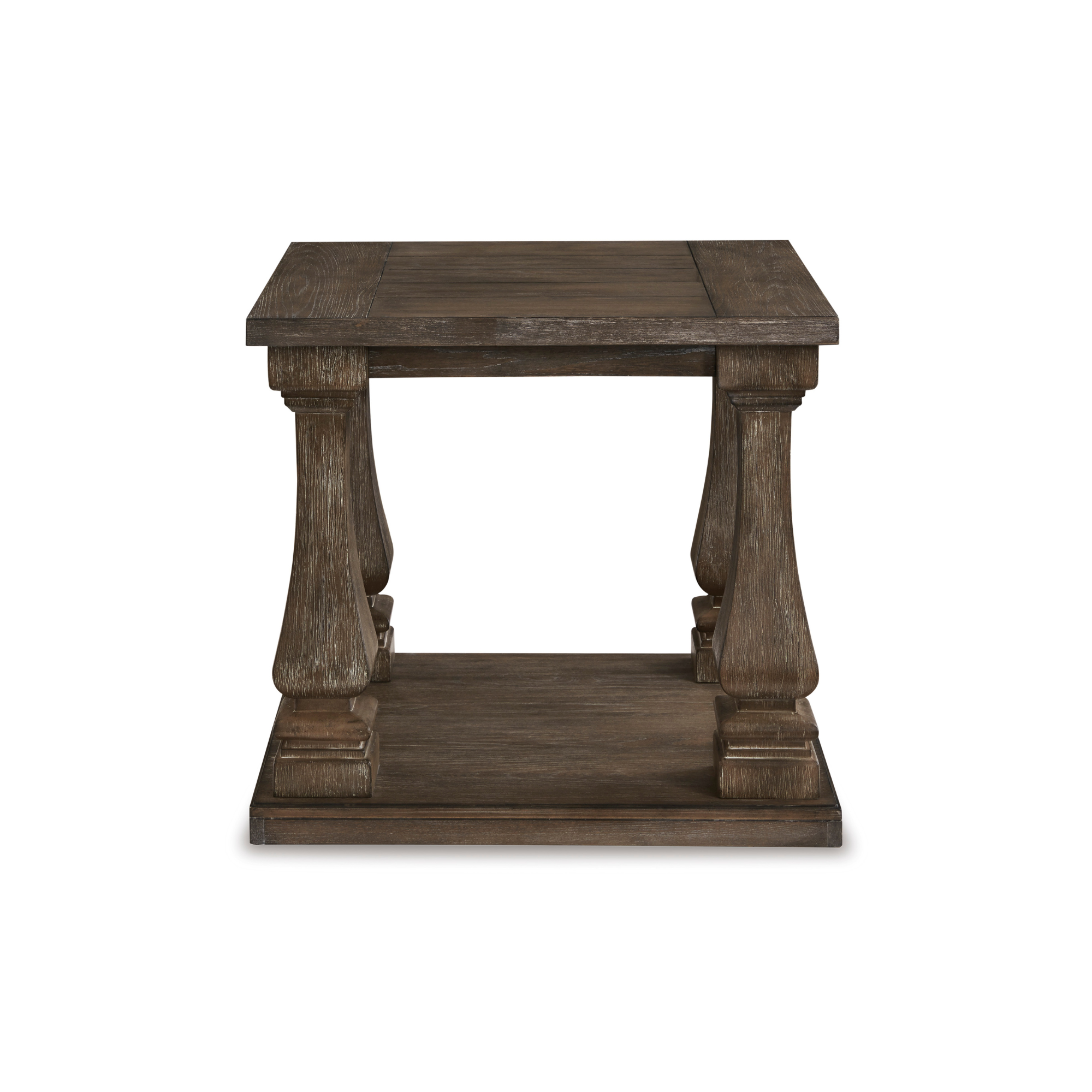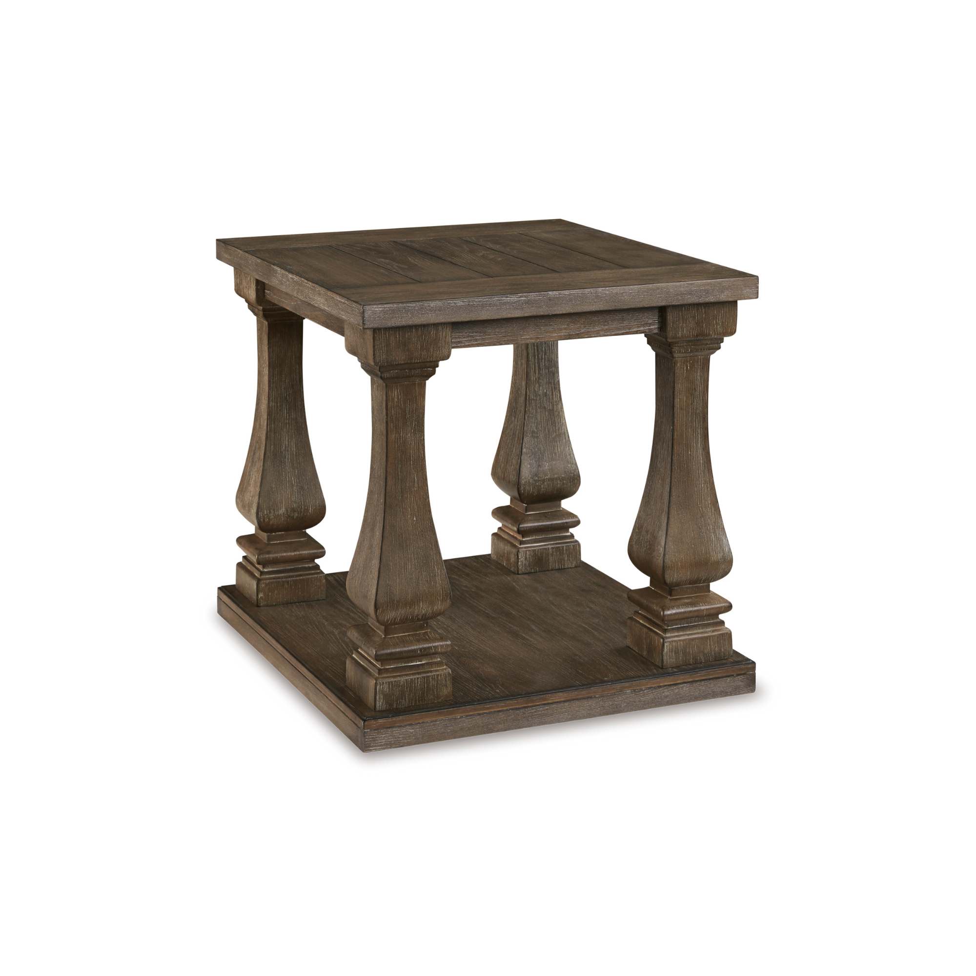 Johnelle pomoćni sto privlači pažnju svojim izblijedjelim sivim finišem i četvrtastim baluster nogama koje se oslanjaju na široku donju policu, pružajući snažan vizuelni utisak. Izgled je dodatno oplemenjen furnirom od brijesta i gornjom pločom s efektom dasaka i uokvirenim dizajnom, stvarajući bogato izrađeno remek-djelo koje je stvoreno da traje i pruža zadovoljstvo godinama.