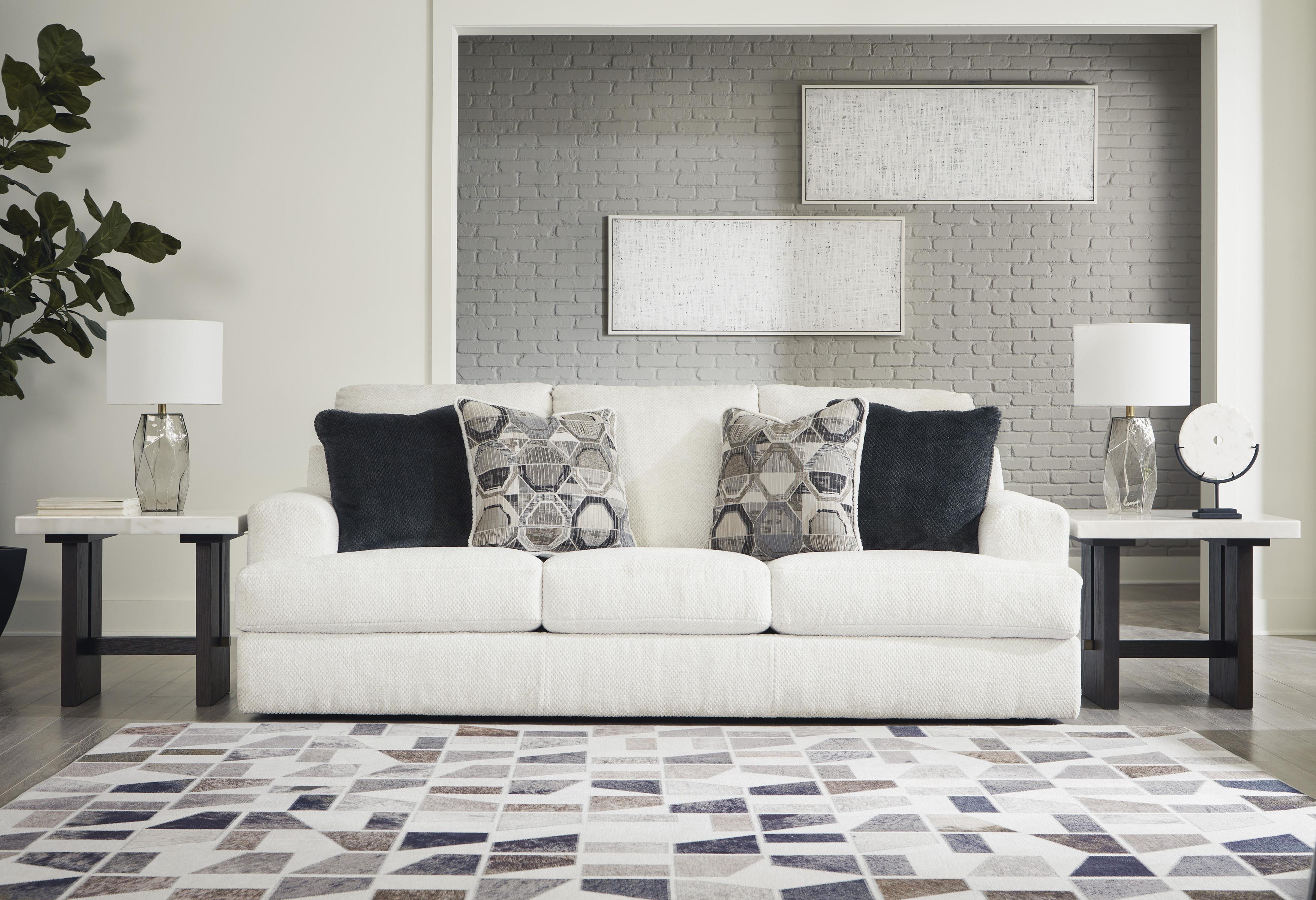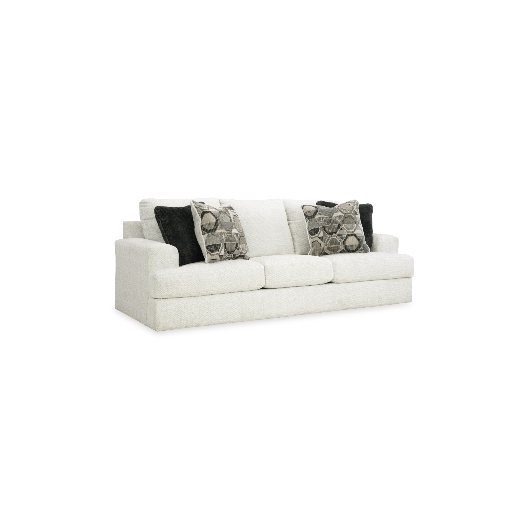 Žudite za ležernom profinjenošću? Sofa Karinne je pravo rješenje za vas. Njen izrazito savremeni okvir obuhvata velike jastuke u ultra mekanom neutralnom tonu, osvježavajući atmosferu vaše dnevne sobe jednostavnim stilom i svakodnevnim komforom. Čvrsti i geometrijski ukrasni jastuci savršeno upotpunjuju spoj šika i udobnosti.