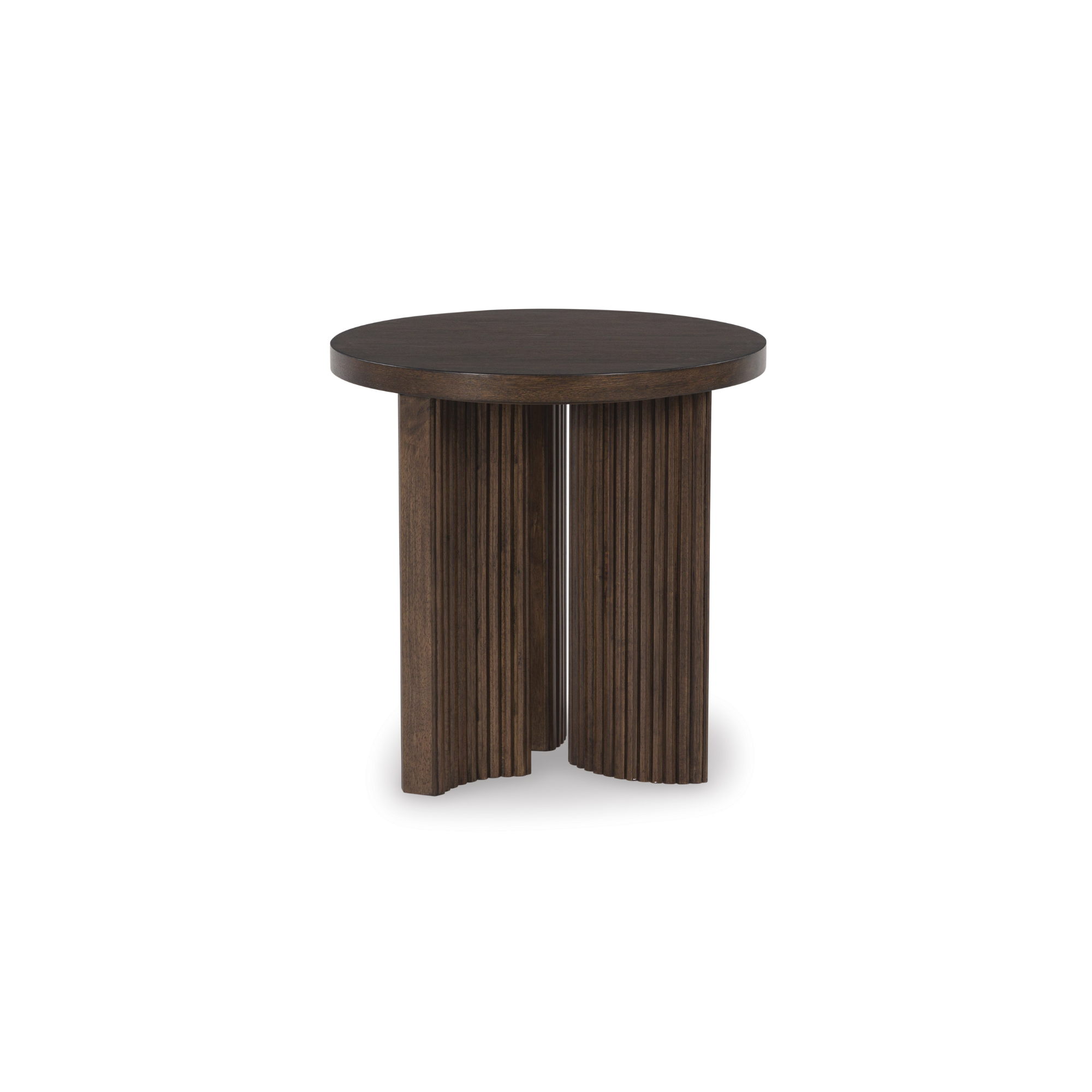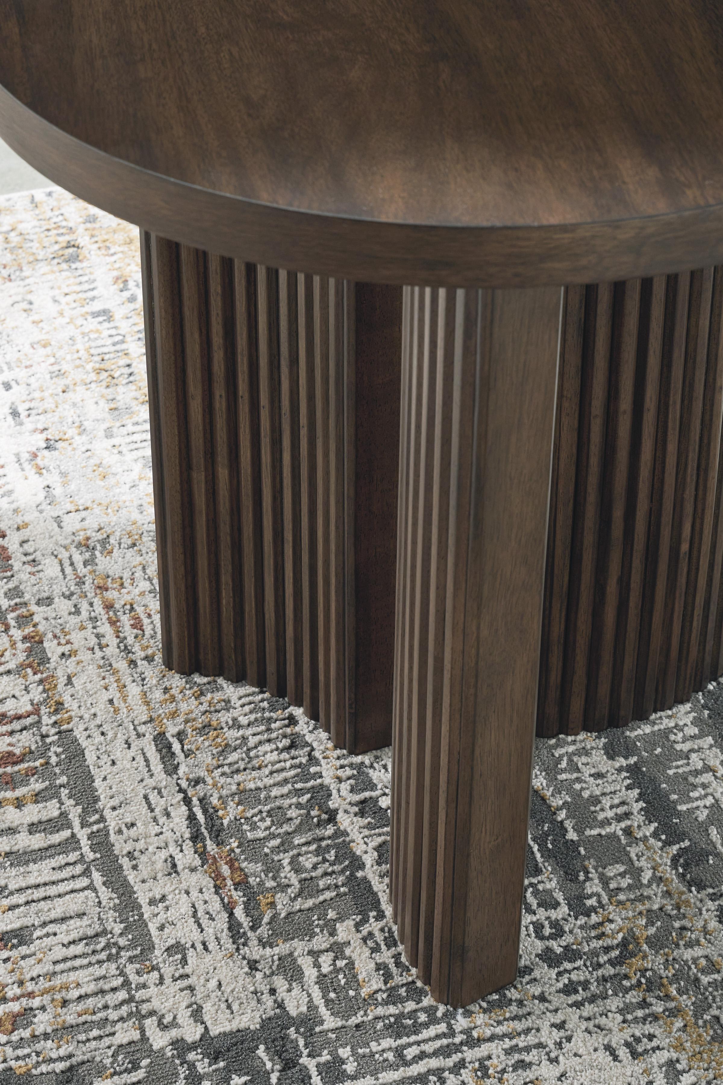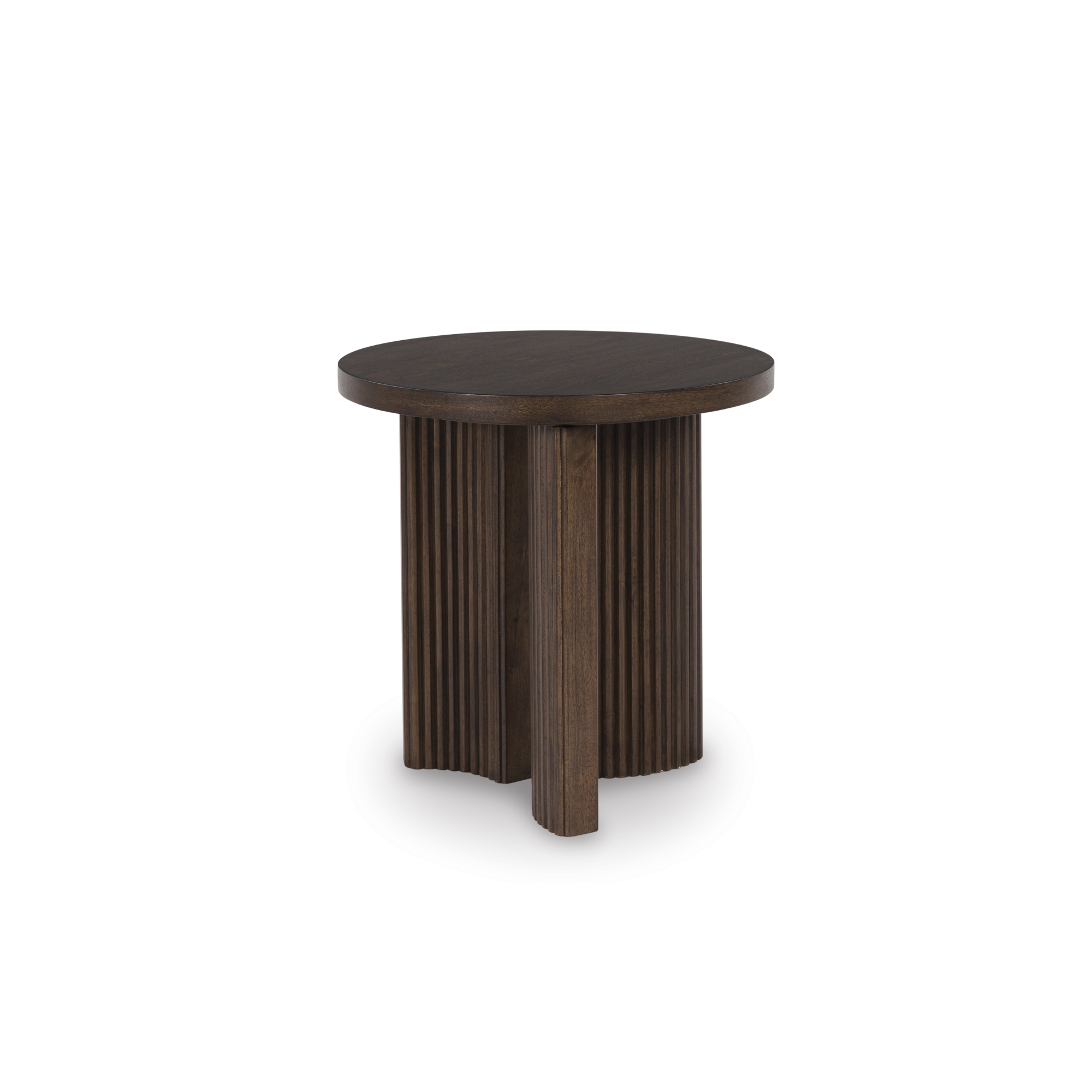 Korestone pomoćni stolić predstavlja ležerni savremeni dizajn s urbanim štihom. Njegova bogata smeđa završna obrada je topla i privlačna, a dekoracije na debelom vrhu stola izgledaju još elegantnije. Moderna baza s uskim rebrastim detaljima suptilno podsjeća na dizajn sredine prošlog vijeka. Pravi prelijep odraz tvoje jednostavne, a ipak elegantne estetike.
