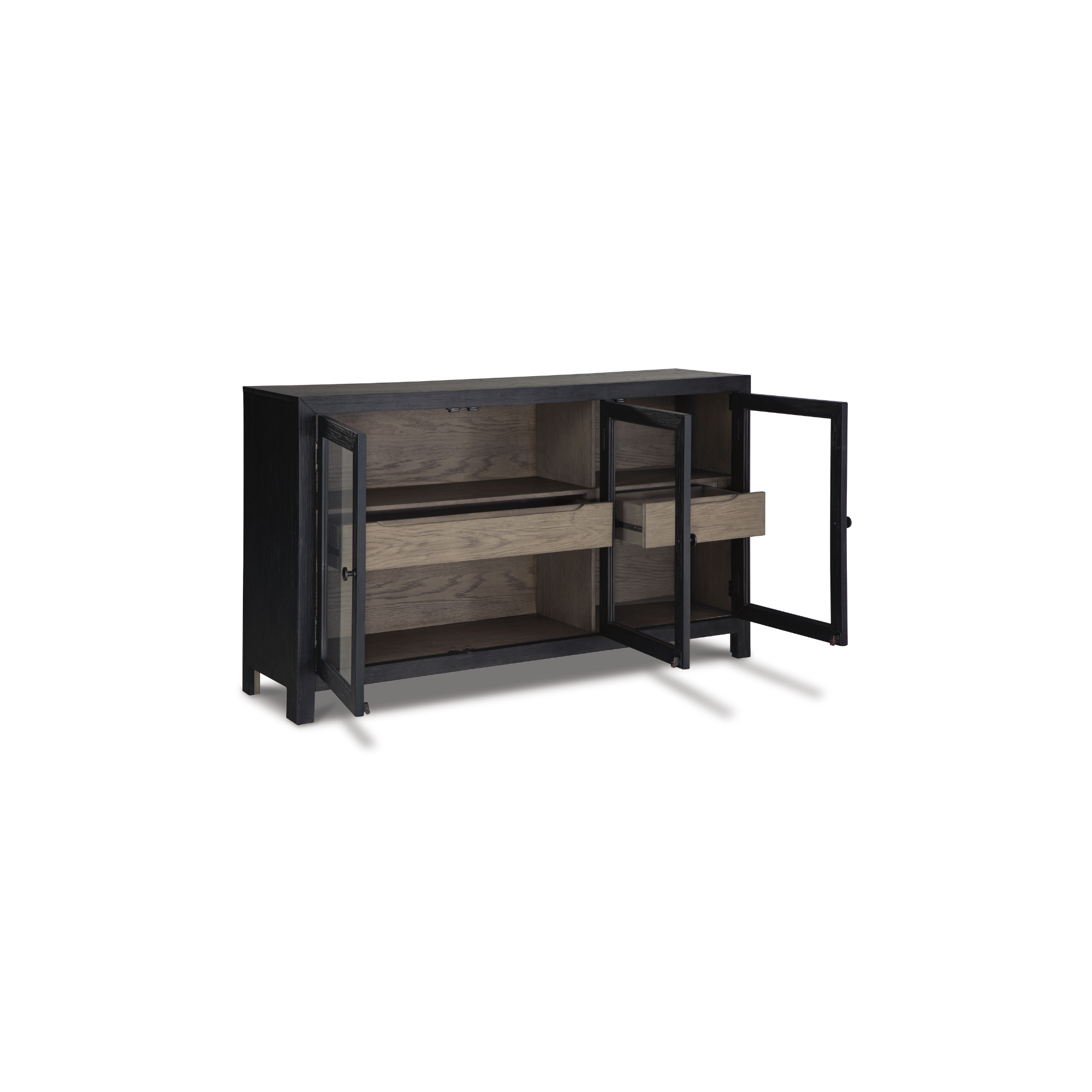 Dodajte slojeve forme i funkcionalnosti svom prostoru uz Lenston pomoćni kabinet. Spoljašnji crni finiš u kontrastu s toplom sivom unutrašnjošću stvara klasičan izgled koji se lako uklapa u ležerne i moderne stilove. Njegov fleksibilan dizajn uključuje troja vrata i dvije police, nudeći jednostavno i elegantno rješenje za odlaganje.