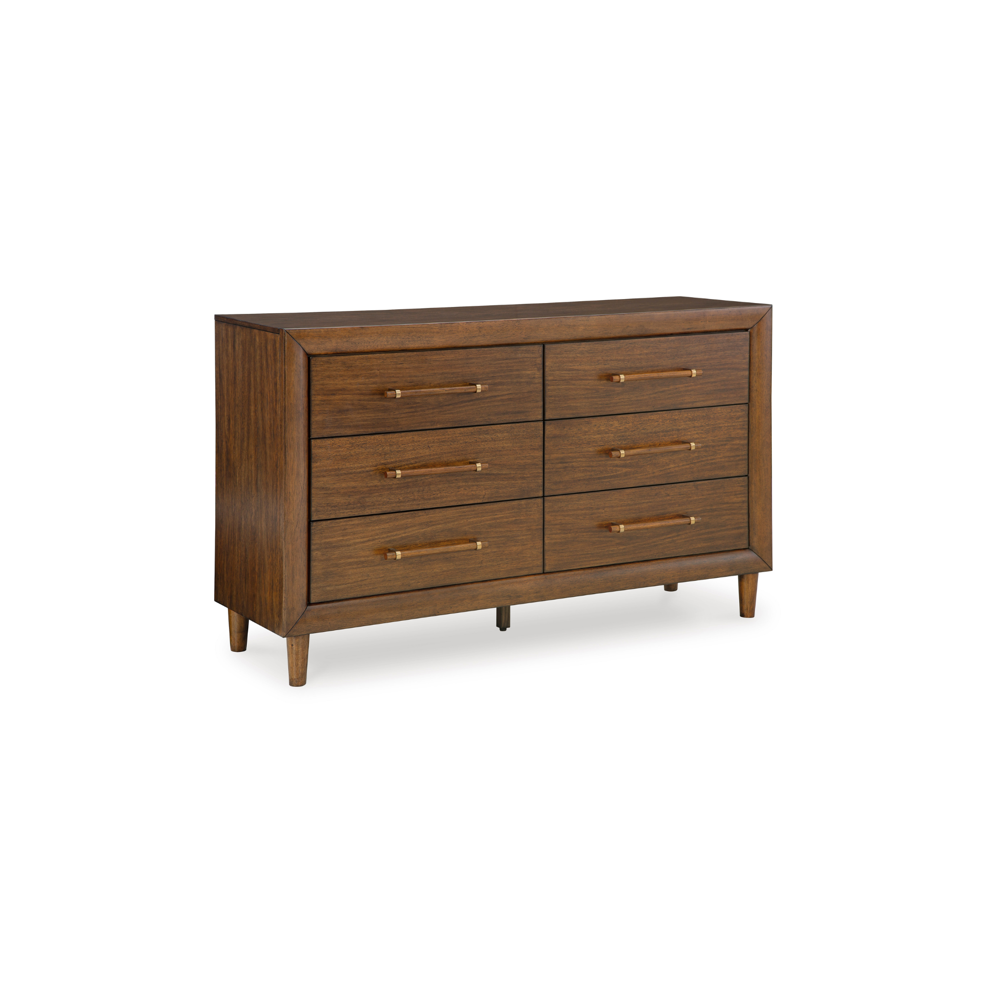 Komoda Lyncott savršena je za savremene ili mid-century enterijere. Njena drvena nijansa je svestrana i bezvremenska. Fioke s profinjenim okvirima i izduženim drvenim ručkama doprinose cjelokupnoj estetici. Bilo da želite osvježiti cijelu spavaću sobu ili dodati nekoliko ključnih komada, ovo je idealan izbor.