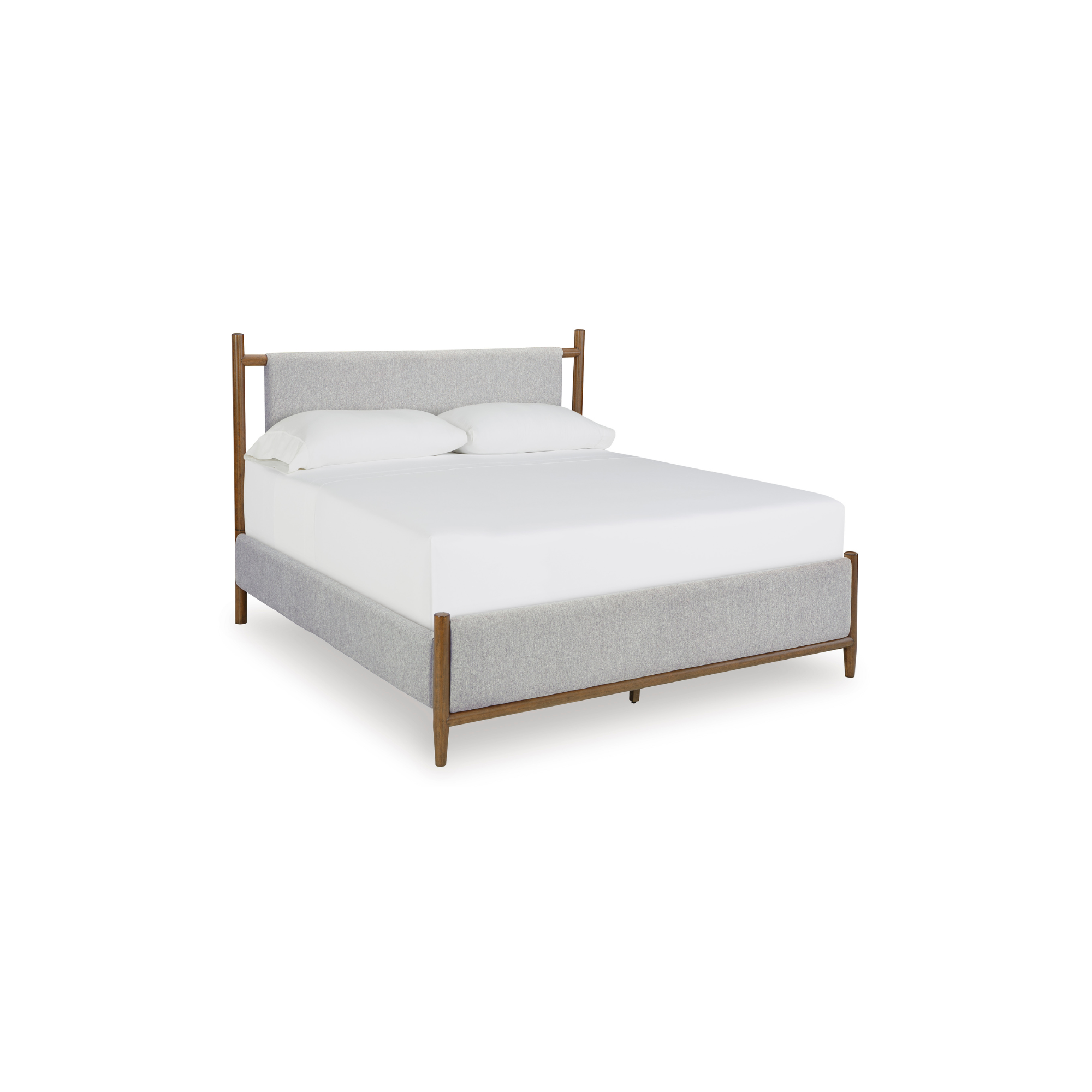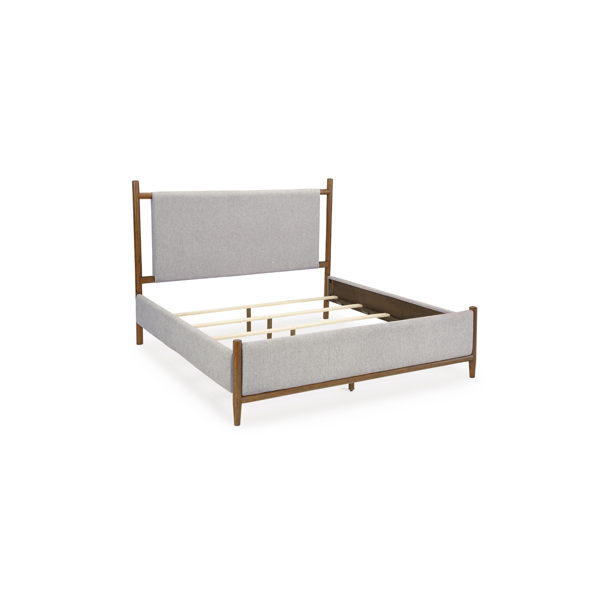 Prigrlite privlačnost savremenog ili stila sredine 20. stoljeća uz Lyncott tapacirani krevet queen veličine s panelom. Njegov svestrani i bezvremenski dizajn, s uzglavljem u stilu viseće tkanine s jastučićima, nježno obavija vaša osjetila. Spreman da osvježi i redefiniše vaš prostor, ovaj krevet je idealan izbor za podizanje izgleda vaše spavaće oaze.