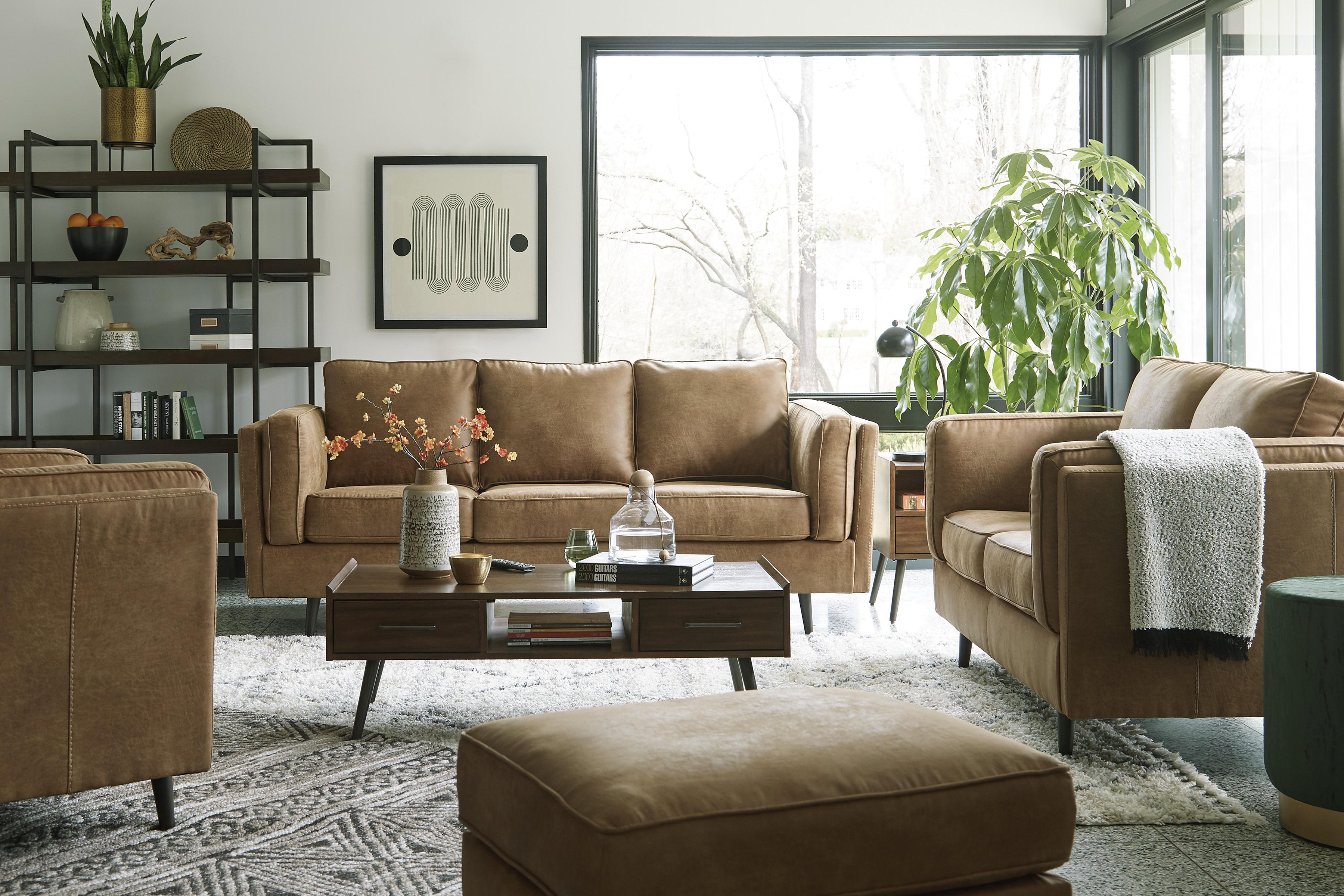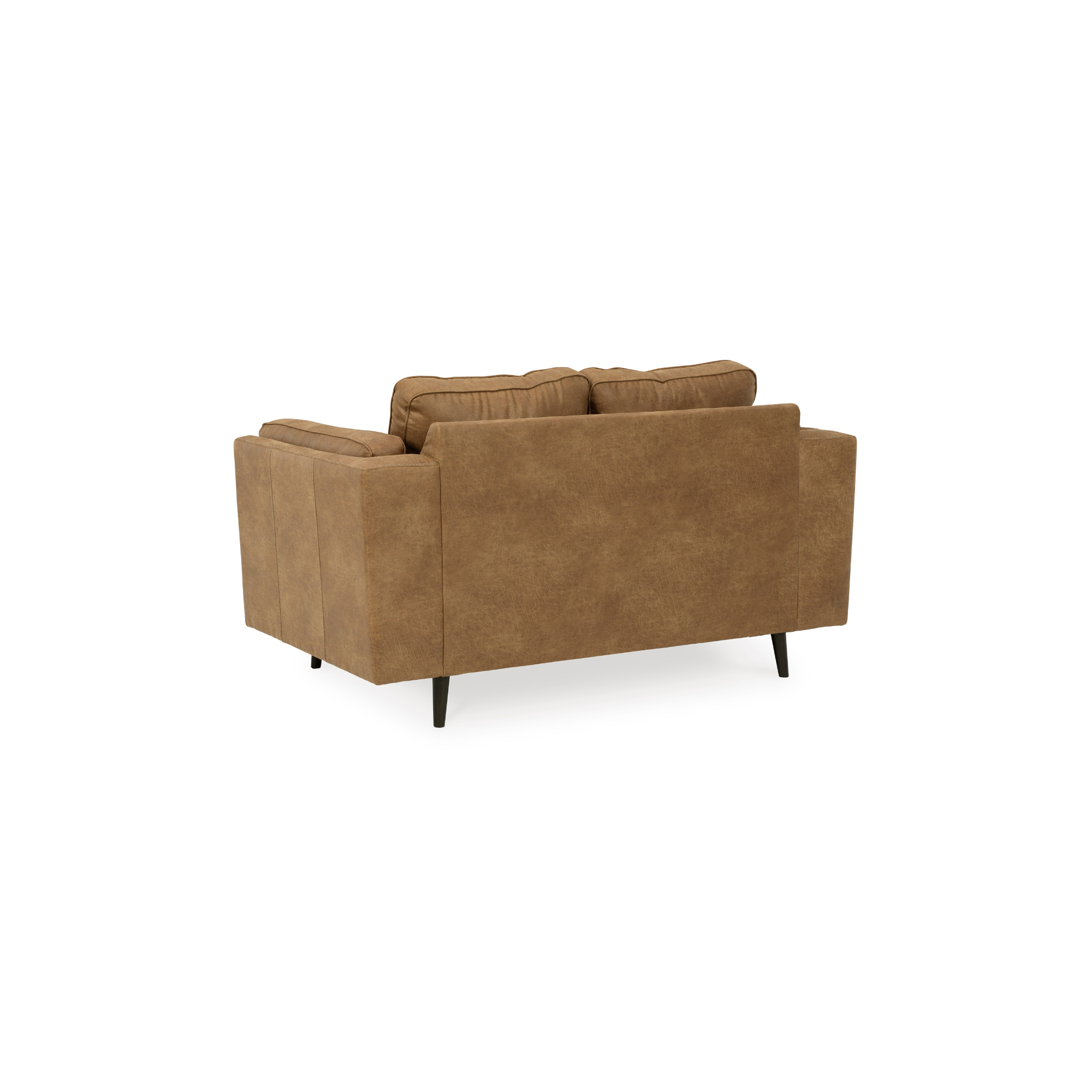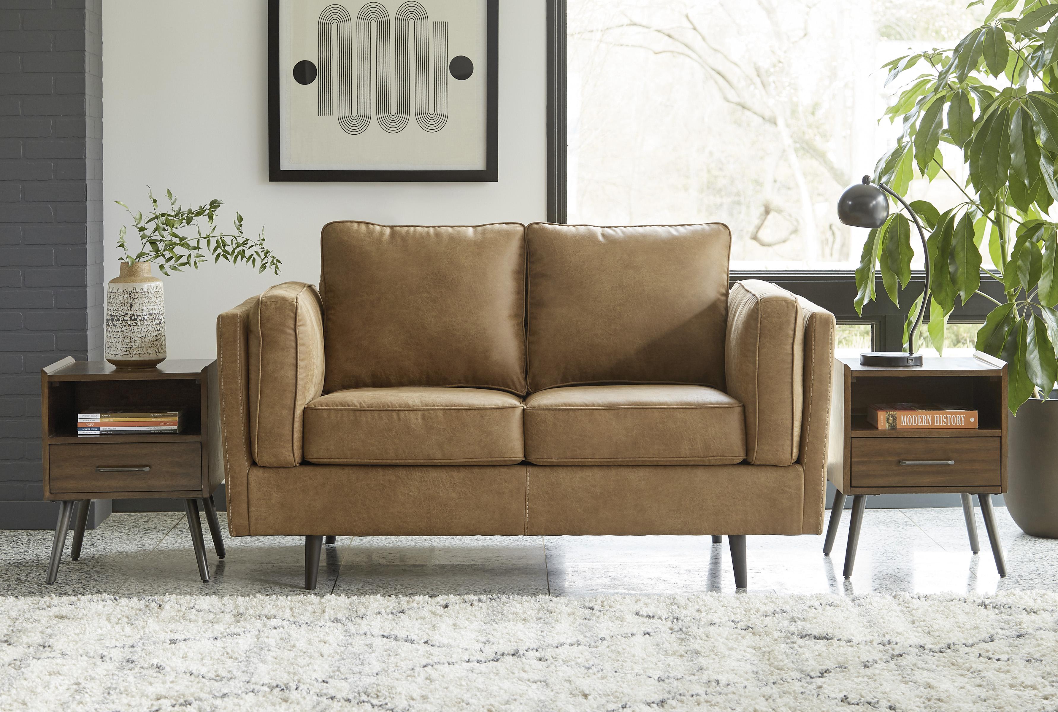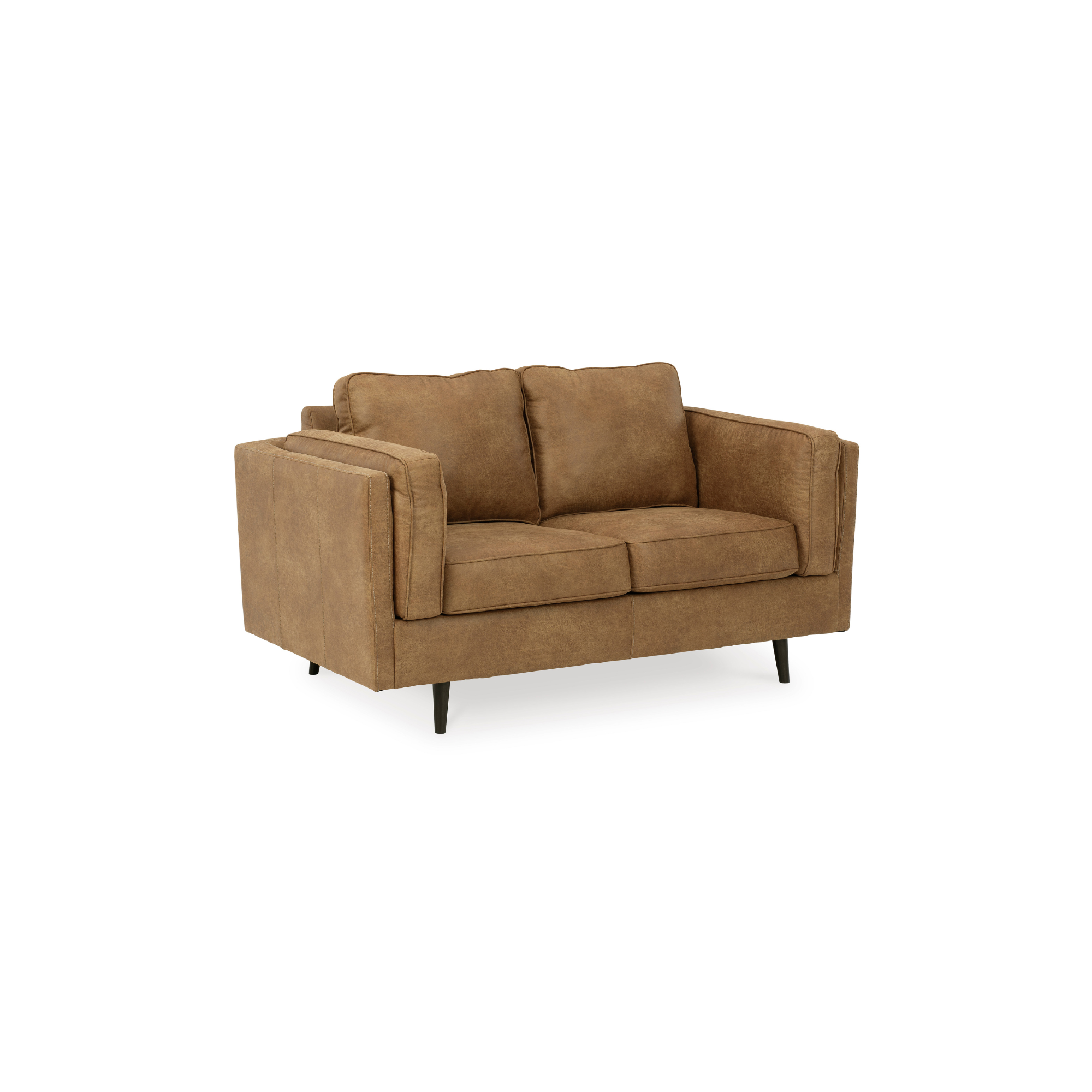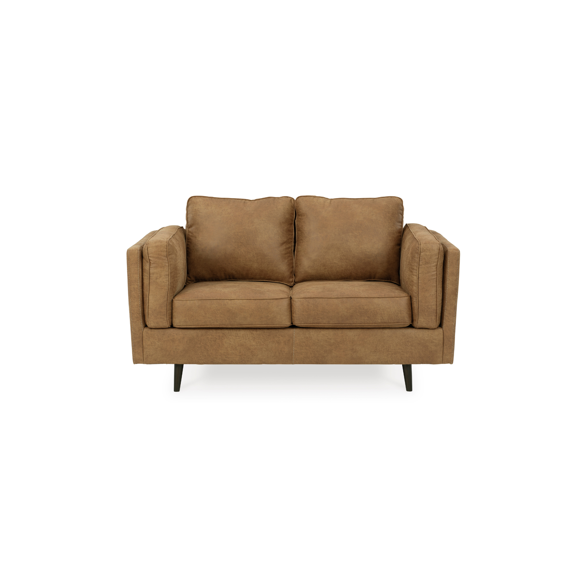 Dvosjed Maimz je savršen primjer ponovnog oživljavanja srednjovjekovnog stila. Linearan i minimalistički, njegov profinjeni dizajn sadrži sve retro elemente koje volite, poput bočnih naslona, jastuka-valjaka i sužavajućih, ukošenih nogu. Ležerno moderan, presvlaka od karamel lažne kože donosi ovaj izgled u sadašnjost.