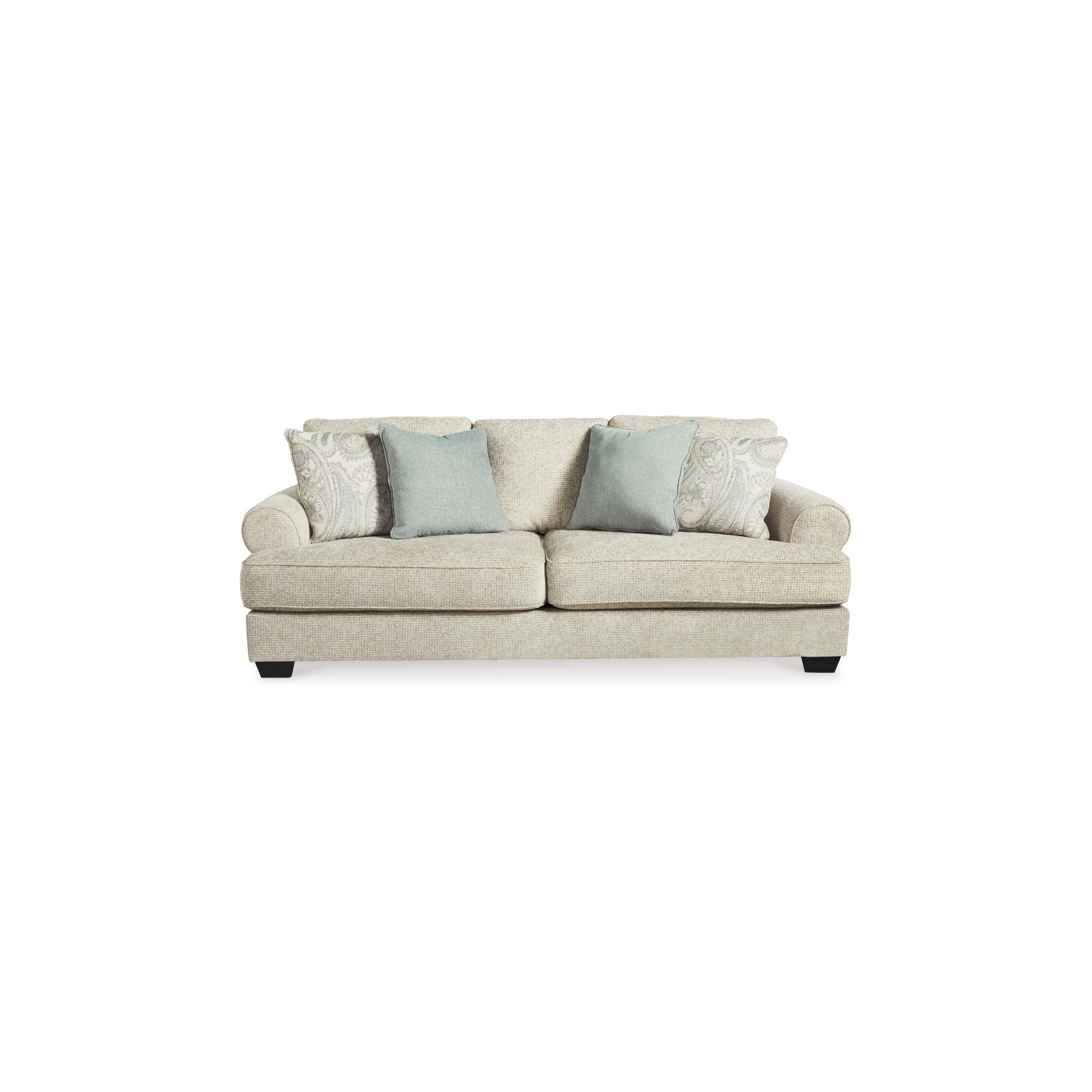 Sofa Monaghan postiže prelijepu ravnotežu između klasičnog i modernog. Njeni tradicionalni elementi uključuju T-jastučno sjedište i povučene okrugle naslone za ruke, zakrivljene za moderan šarm. Elegantni jastuci u bojama spa magle i žakard paisley uzoraka donose suptilan, smiren kontrast ležernom teksturiranom chenille tapaciranju sofe. Izbor u boji pješčanog bež stvara svjež i prelijep stil koji oživljava prostor.