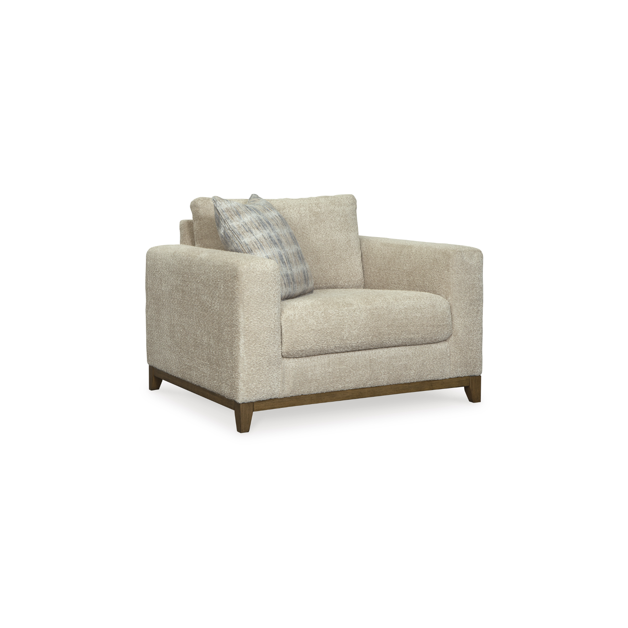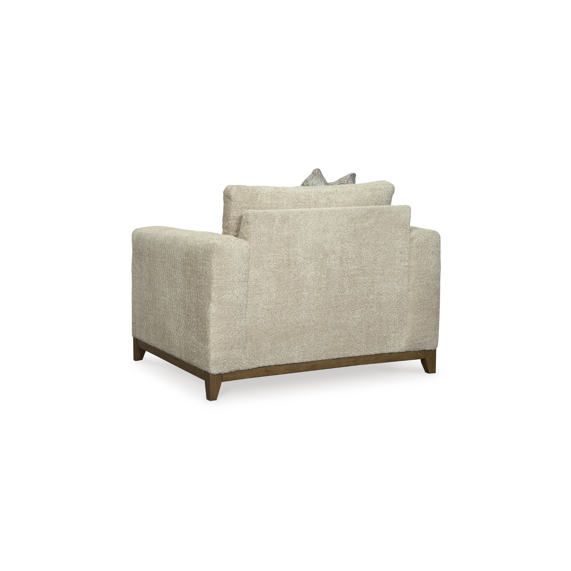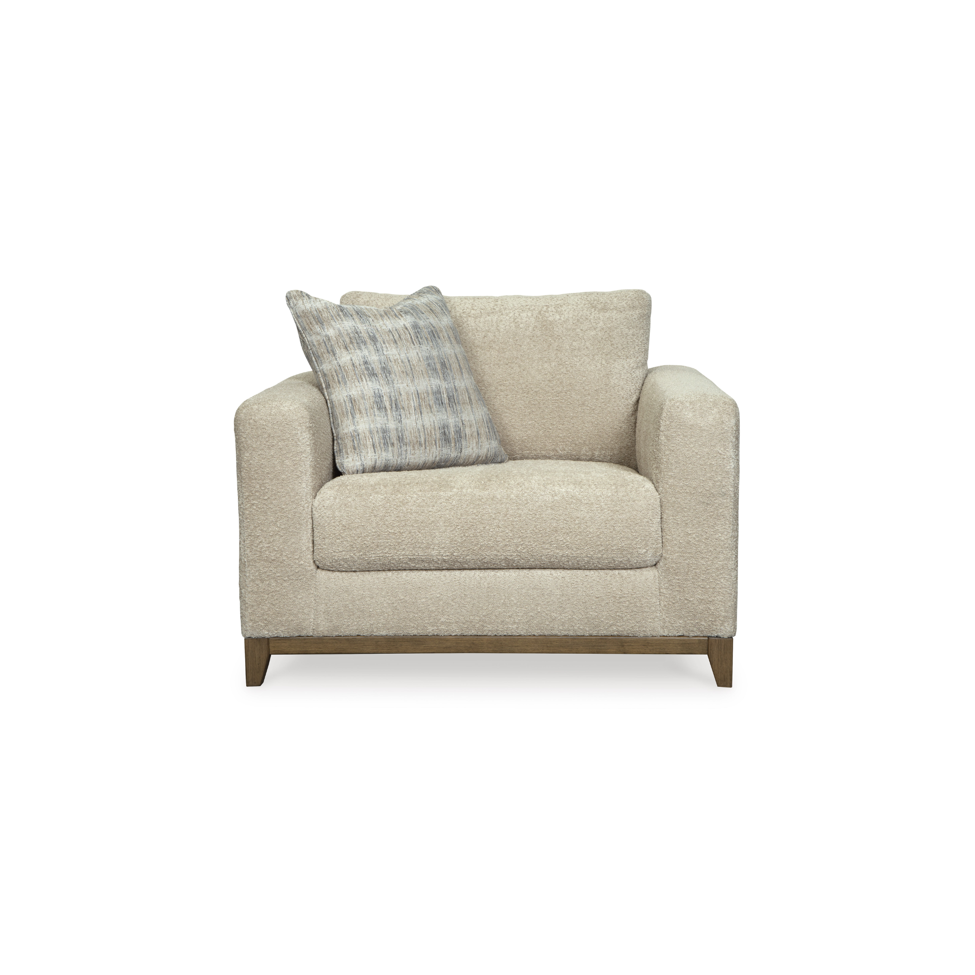 Smiren stil s modernim senzibilitetom. Uživajte u udobnom i svestranom zagrljaju ovog velikog naslonjača. Prati savremene trendove kroz neodoljivu teksturu i prirodnu ljepotu, ističući meku presvlaku naglašenu prijelaznim drvenim detaljima. Koliko je profinjen, toliko je i opušten, a udobnost je zagarantovana zahvaljujući mekanom, debelom jastuku za sjedenje.