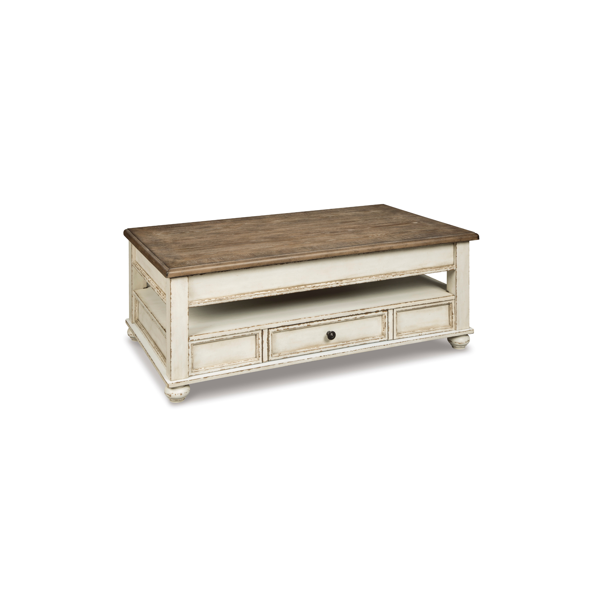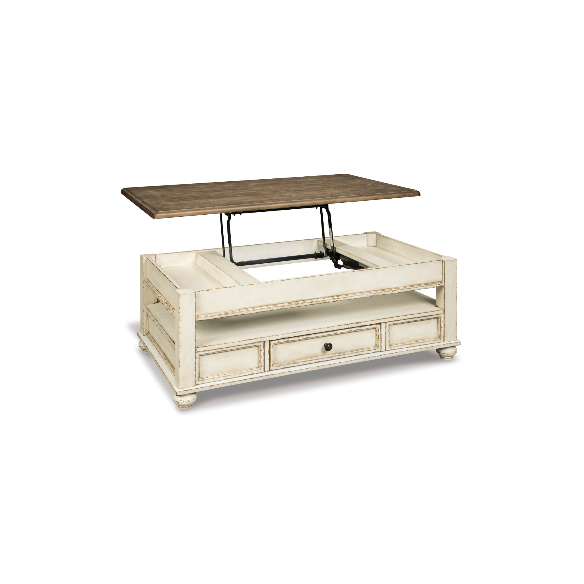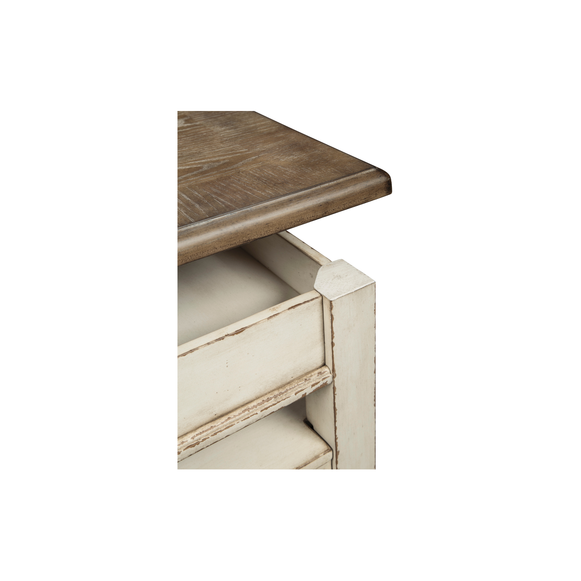 Realyn klub sto s podiznim mehanizmom donosi klasični rustični stil u savremenom izdanju. Završna obrada u antikno bijeloj boji u kombinaciji s gornjom pločom u izbijeljenom drvenom tonu pruža elegantan kontrast pun šarma. Zahvaljujući kvalitetnoj izradi sa spojevima tipa „lastin rep“, kao i fioci i otvorenoj polici za odlaganje, ovaj sto nudi savršen spoj praktičnosti i profinjenog izgleda.