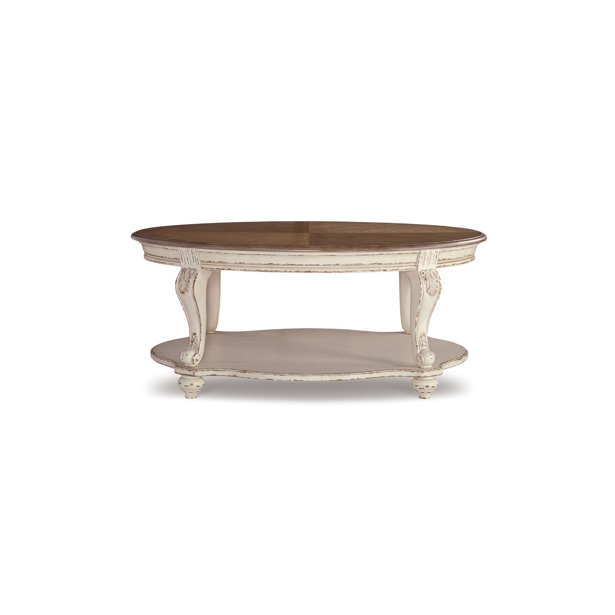 Uzdignite tradicionalni rustikalni stil na viši nivo s ovalnim klub stolićem Realyn, koji će vas služiti godinama. Njegova antikna dvobojna obrada kombinuje otkrhnutu bijelu s patiniranom drvenom površinom za dodatnu dozu šarma. Klasične zakrivljene noge i elegantna donja polica donose profinjen zaokret, dok ukrasni detalji u vidu konzola dodaju dozu sofisticiranosti.