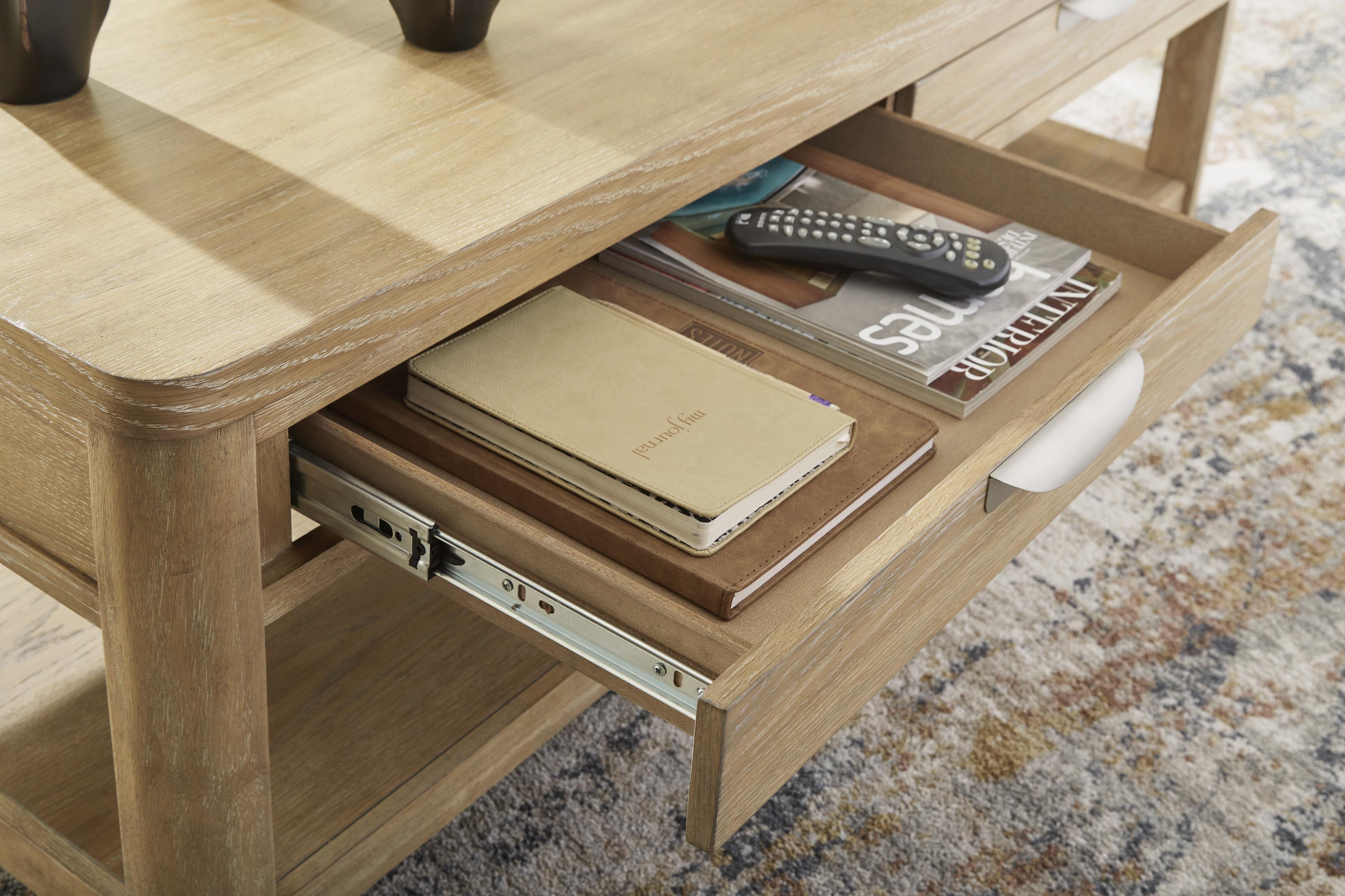 Klasičan, a opet savremen izgled stolića za kafu Rencott teško je zanemariti. Nježno oblikovani nosači sa završnom obradom u svijetlom hrastu i teksturom drveta obrađenog žičanom četkom daju organski šarm tvojem umirujućem prostoru. Prostrane fioke zadovoljavaju dodatne potrebe za skladištenjem, istovremeno držeći nered pod kontrolom. Osim toga, donja polica pruža obilje prostora za izlaganje, hm, knjiga za sto za kafu.