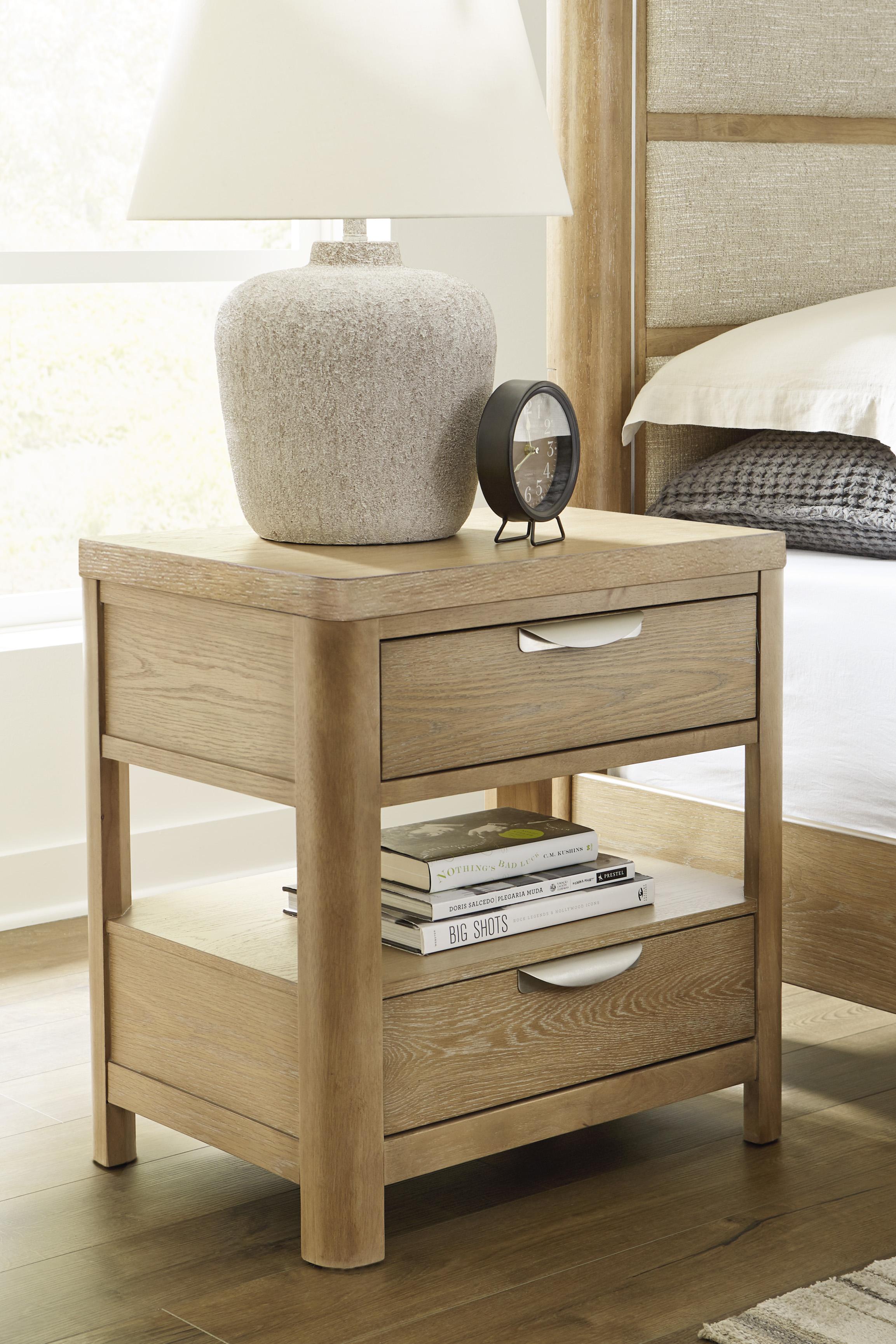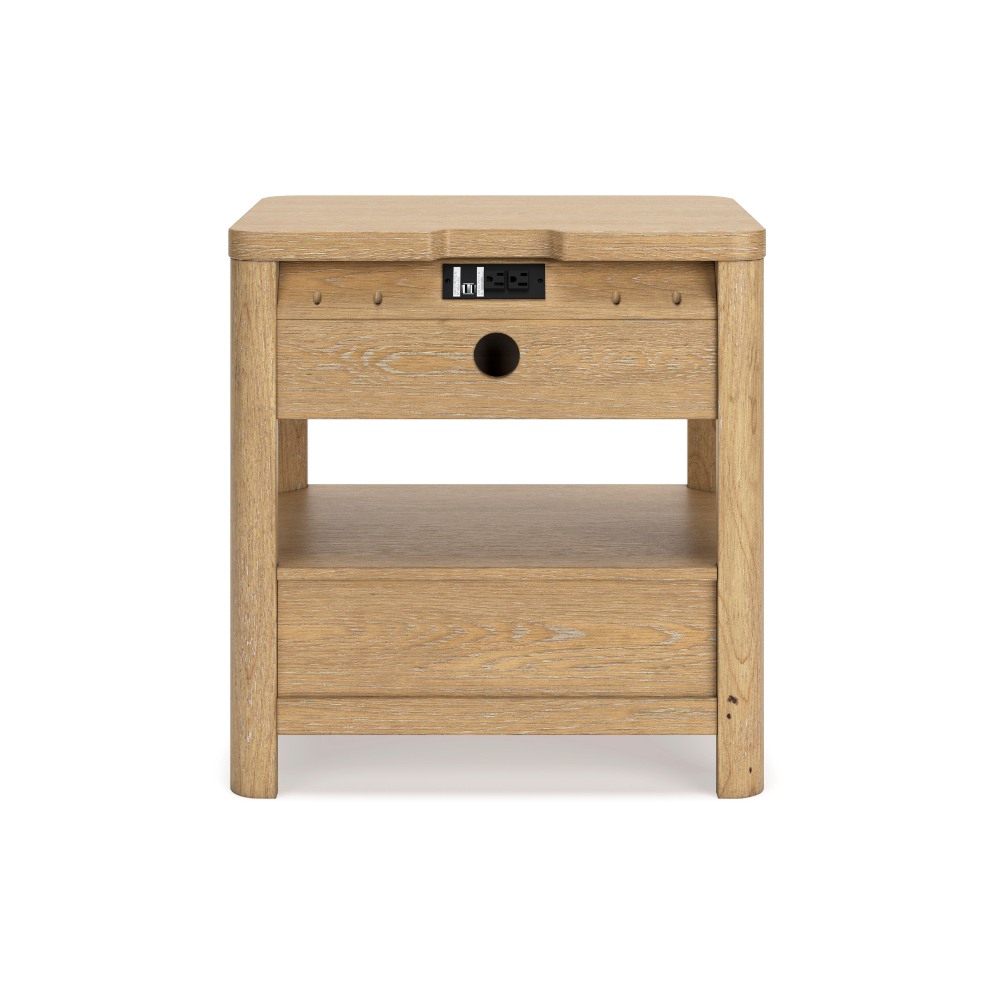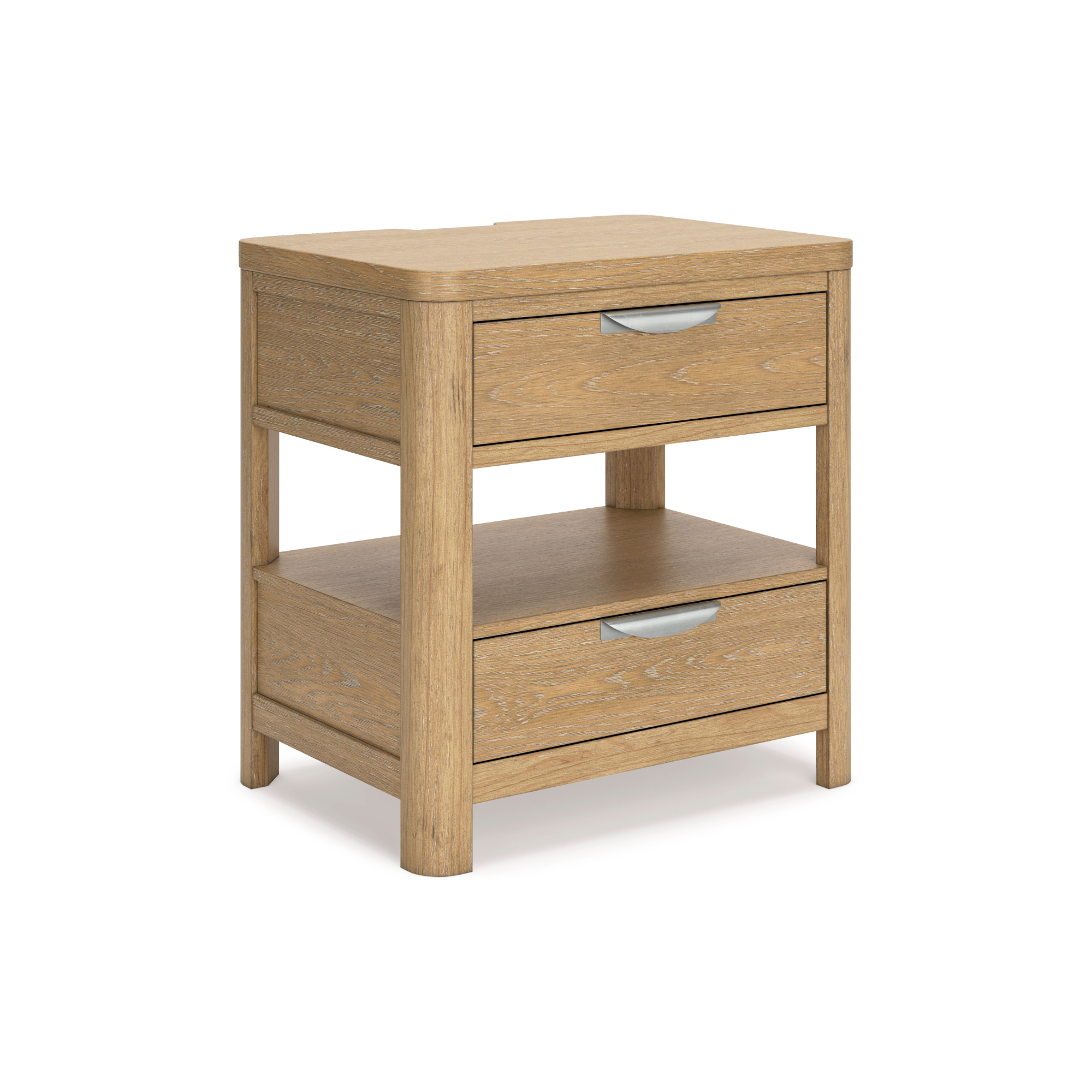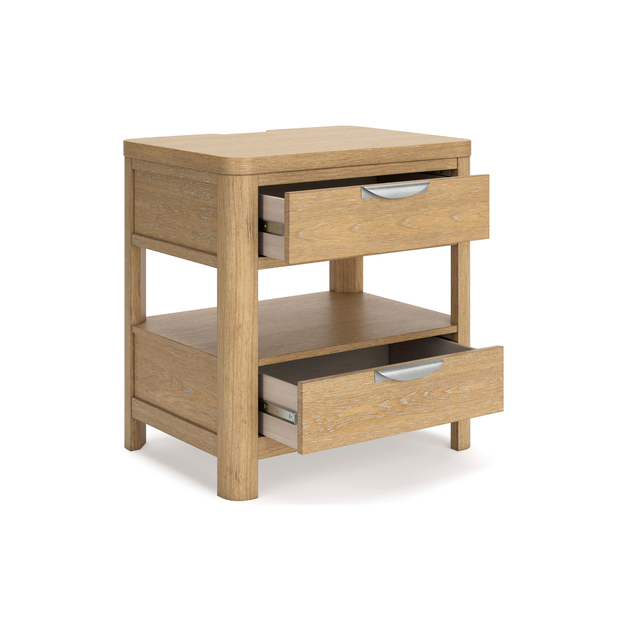 Klasičan, a ipak savremeno elegantan izgled noćnog ormarića Rencott teško je zanemariti. Blago zaobljeni stubići sa svijetlom hrastovom završnom obradom i teksturom drva obrađenog četkom unose prirodnu notu u vaš smirujući prostor. Otvoreni dizajn s naslaganim policama predstavlja modernu i funkcionalnu opciju za pored kreveta. Ugrađeni strujni priključak i USB portovi omogućavaju da vaši uređaji uvijek budu napunjeni.