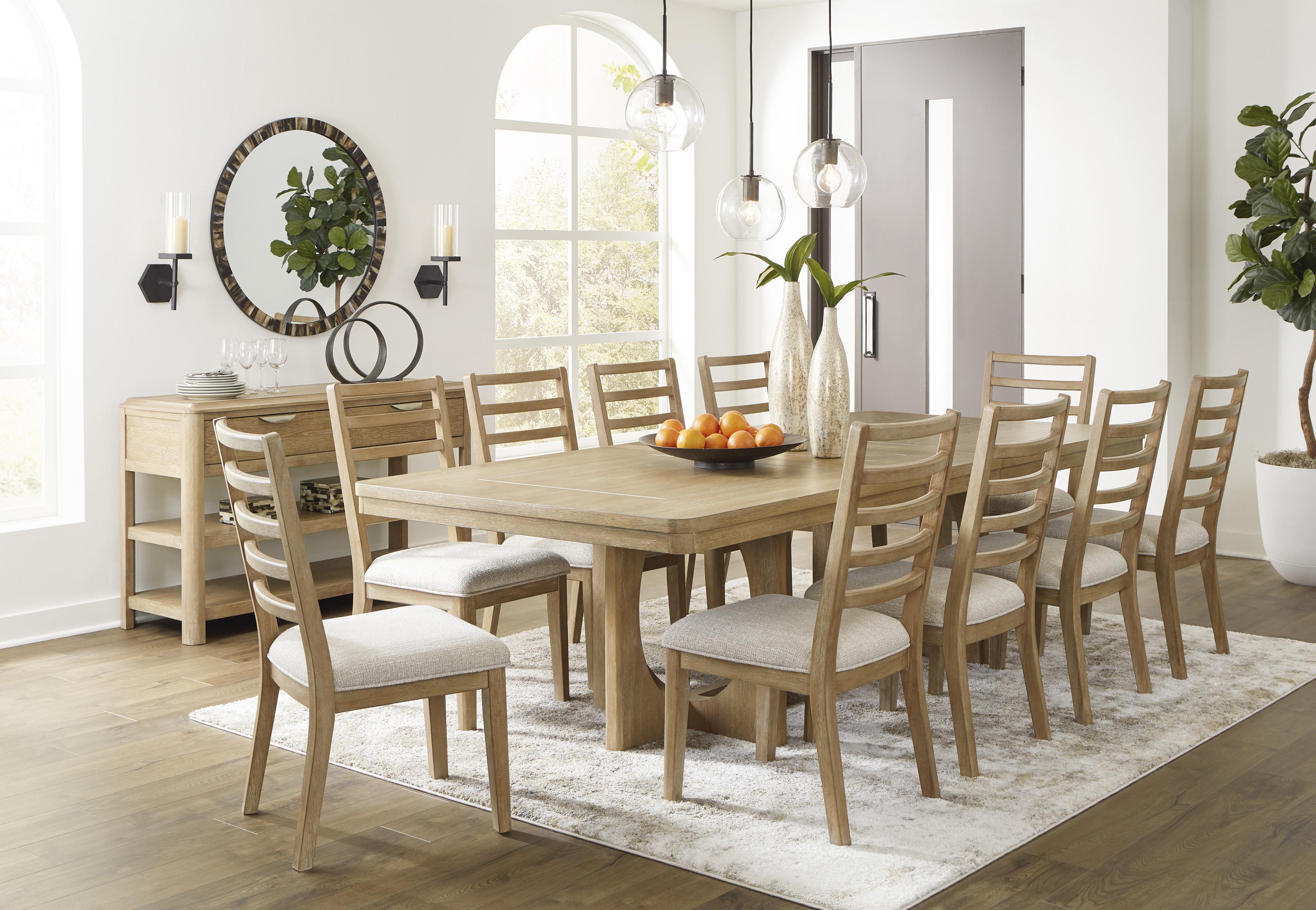 Klasičan, a ipak savremeno elegantan izgled Rencott trpezarijske stolice teško je zanemariti. Izrađena s modernim dizajnom naslona u obliku ljestvi i mekanim, udobno tapaciranim sjedištem, ova stolica pruža dodatnu dozu udobnosti za svakodnevno korištenje ili okupljanje gostiju. Sa svijetlom hrastovom završnom obradom i teksturom drva obrađenog četkom, stolica unosi prirodnu toplinu u vaš ukusno uređen trpezarijski prostor... ili bilo koje mjesto gdje se okupljaju porodica i prijatelji.