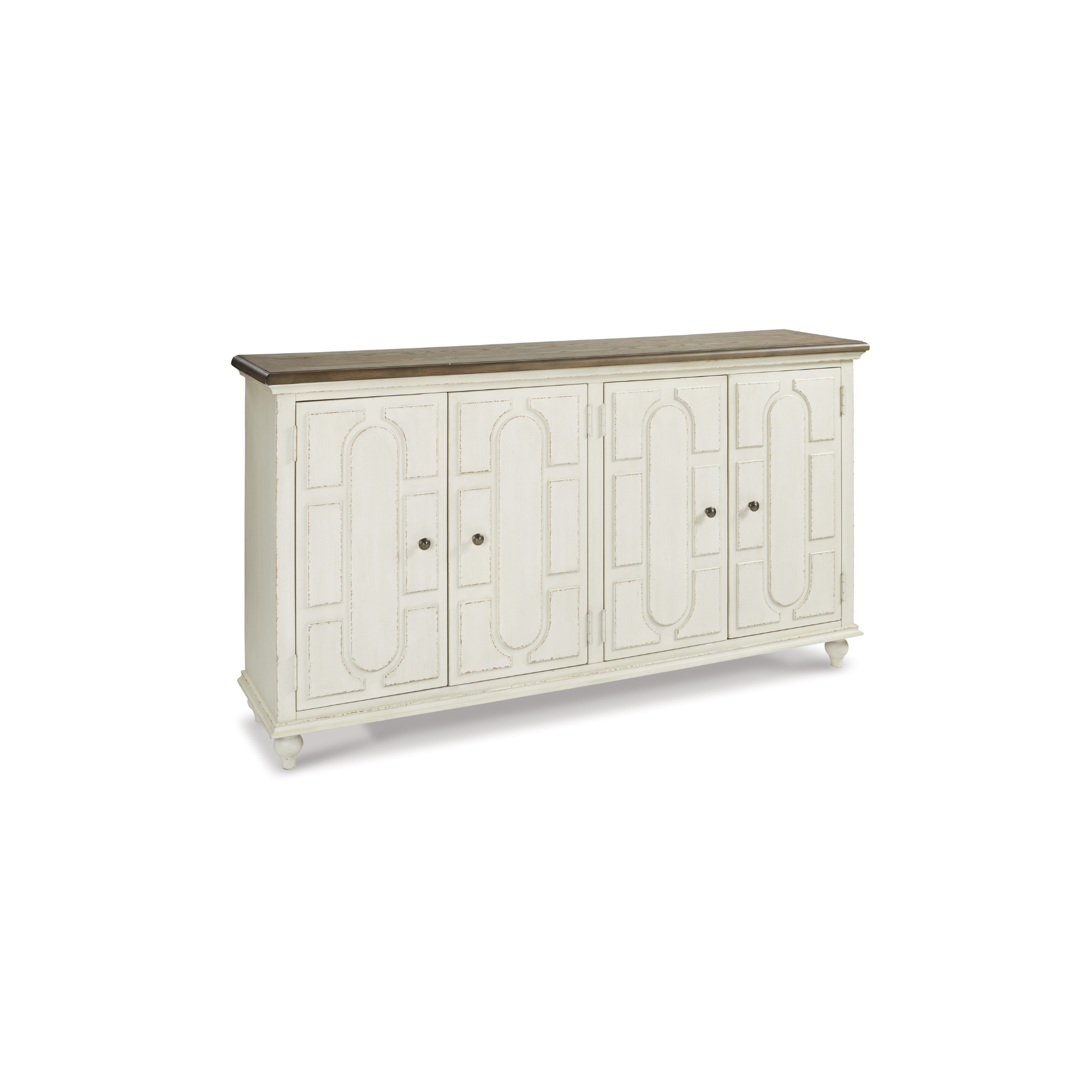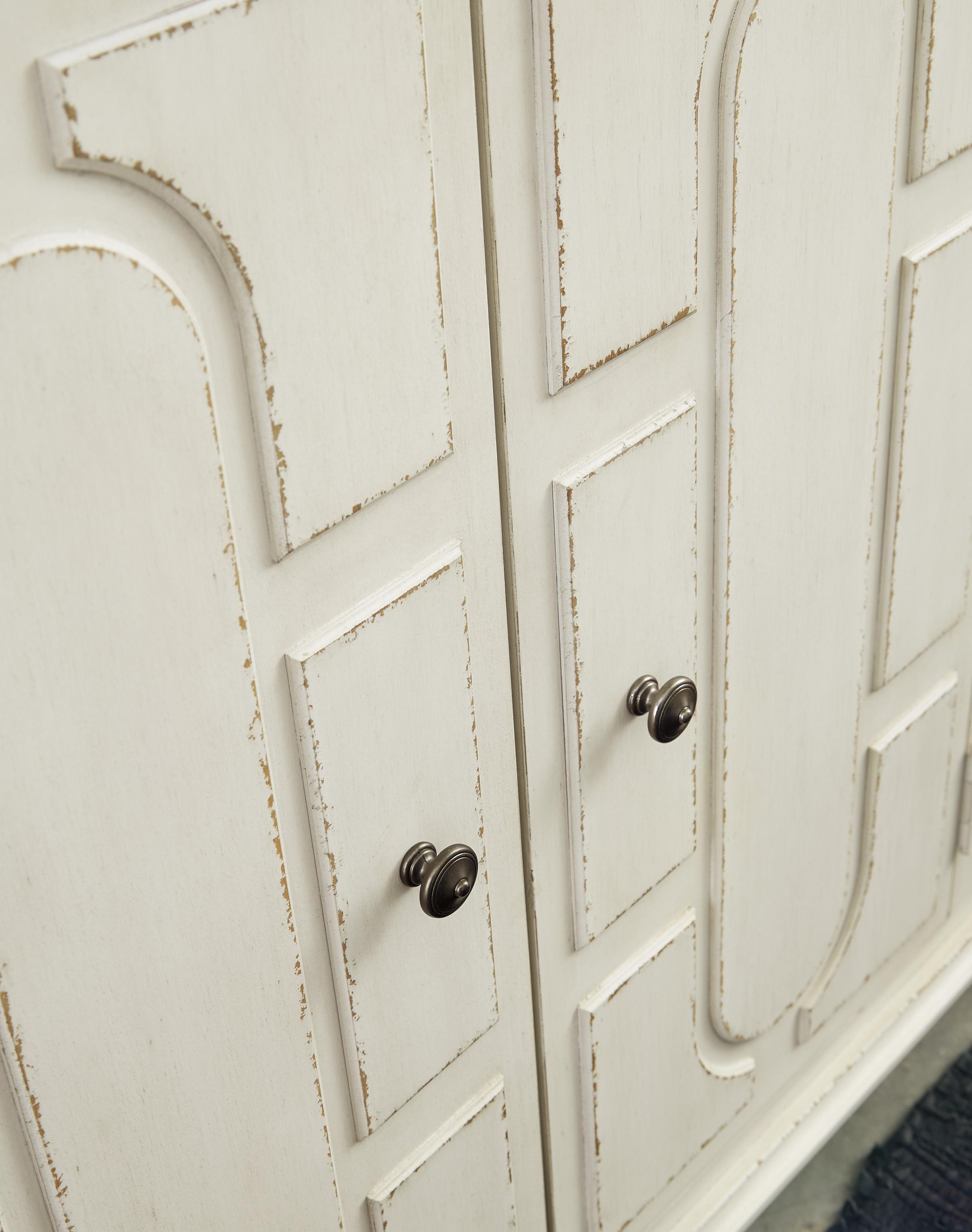 Bez obzira na to da li je vaš stil ladanjski chic, boho inspiriran ili jedinstveno eklektičan, Roranville pomoćni ormarić sigurno će se savršeno uklopiti u vaš dom. Istaknuti elementi uključuju reljefna vrata koja predstavljaju pravo malo umjetničko djelo. Prekrasno istrošen u antikno bijeloj boji, ovaj ormarić s četiri vrata ima gornju ploču u toploj smeđoj nijansi za dvobojni kontrast. Dvije podesive police doprinose njegovoj praktičnosti.