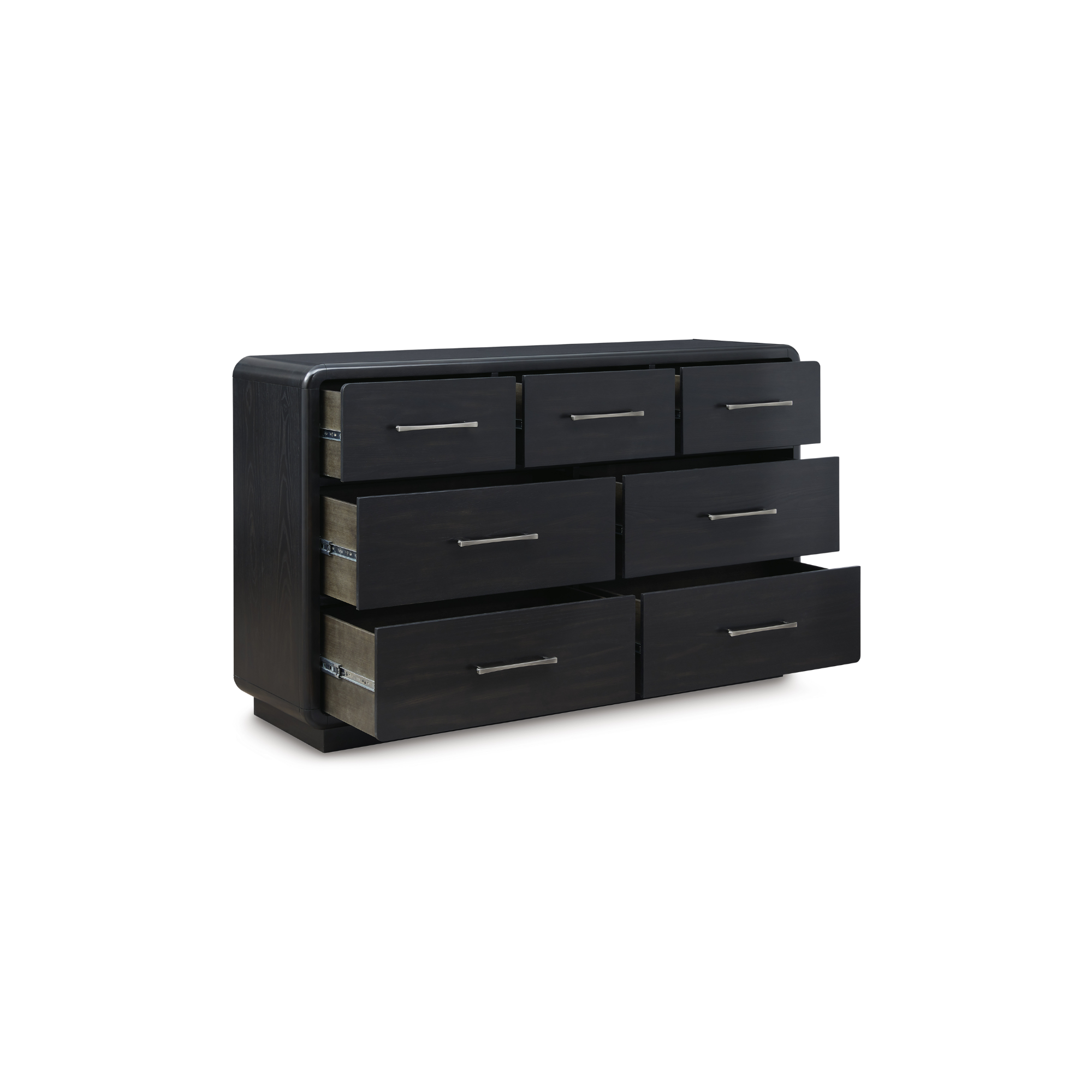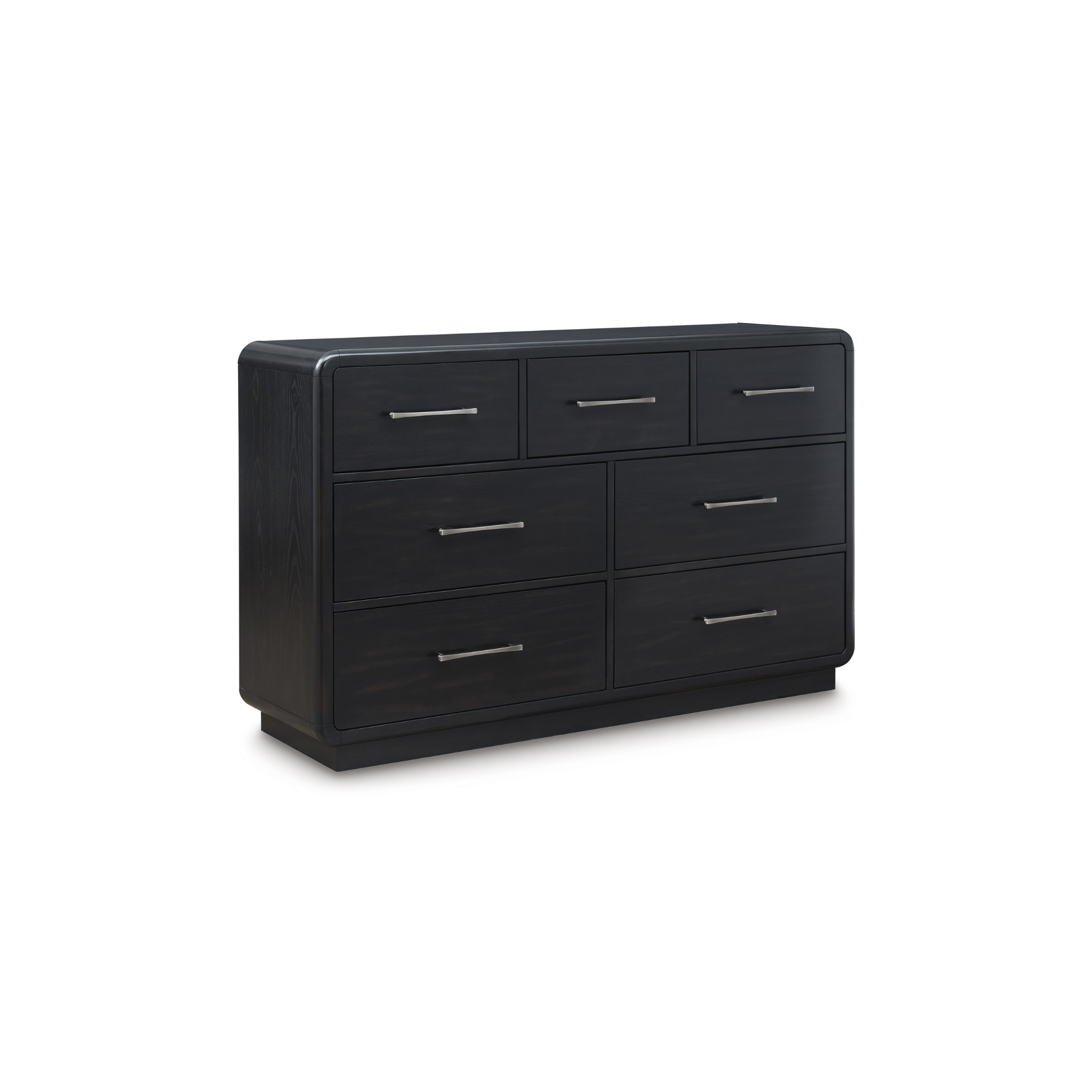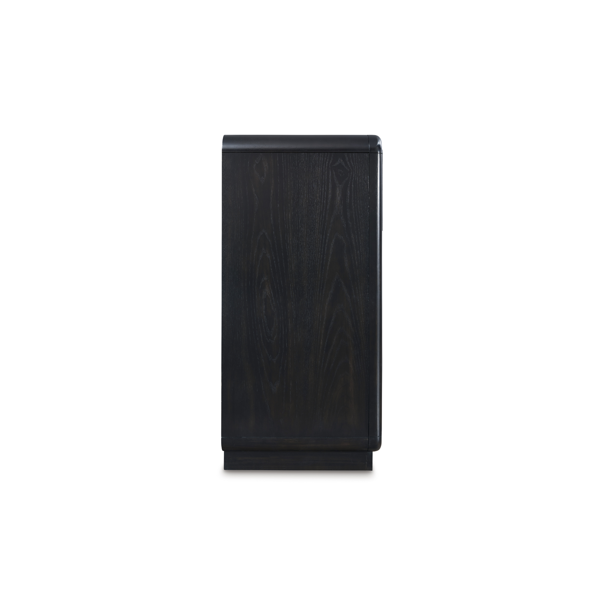 Inspirisana art deco dizajnom, elegantno oblikovana Rowanbeck komoda ostavlja snažan utisak na jednostavno zadivljujući način. Njena prepoznatljiva zakrivljena silueta dodatno je naglašena bogatom slojevitom crnom završnom obradom na teksturiranoj drvenoj površini. Ovo je komad koji ste sanjali – savršen za podizanje izgleda vašeg savremenog prostora za opuštanje.