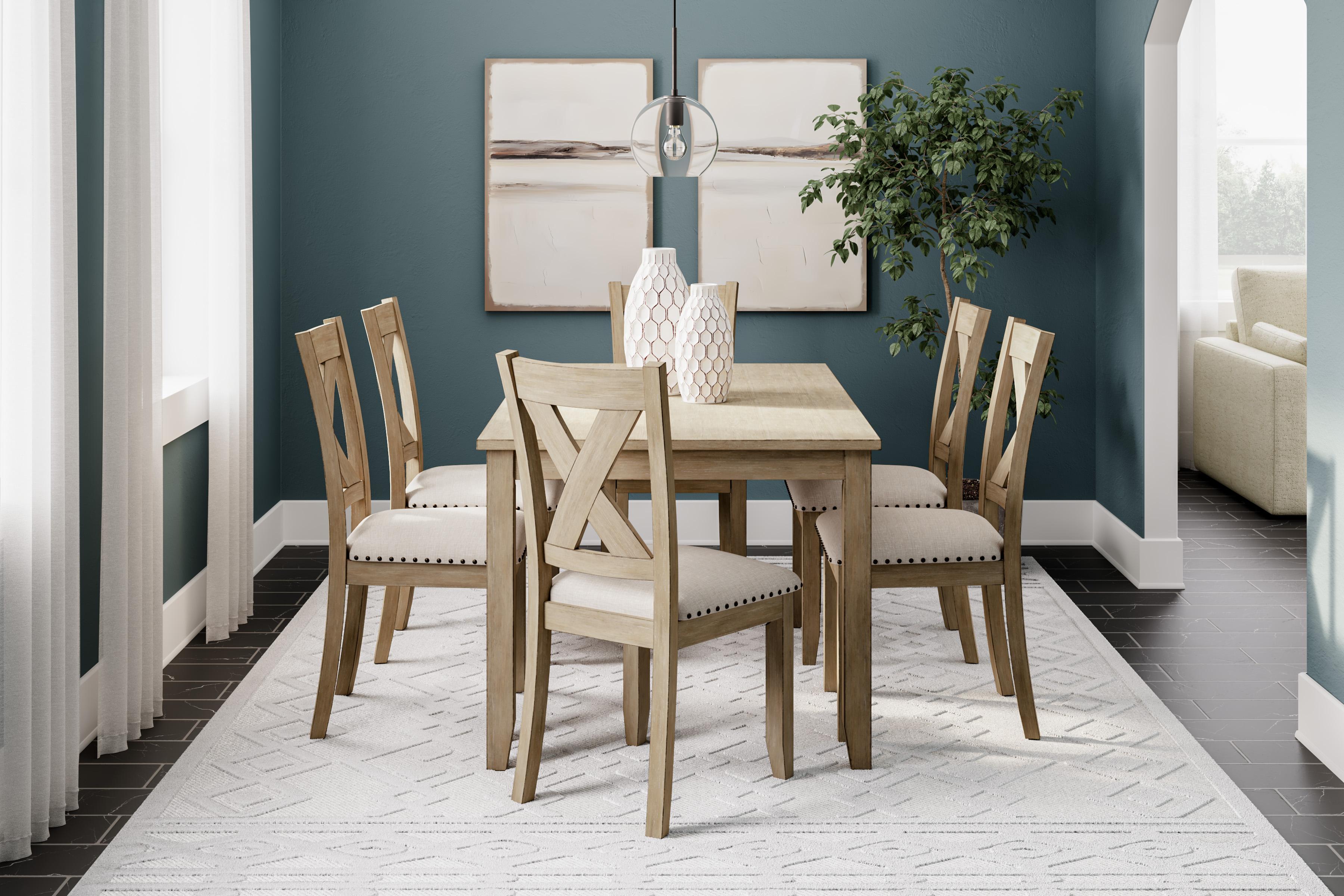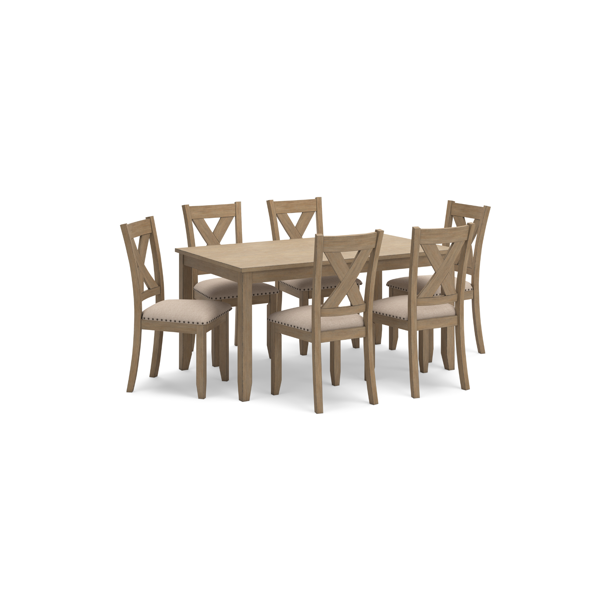 Pokažite svoj osjećaj za pažljivo biran stil uz Sanbriar set za trpezariju. U duhu modernog rustikalnog dizajna, čiste linije stola dopunjene su neutralnim sjedištima ukrašenim zakovicama. Svijetla, prirodna završna obrada unosi dozu ležerne elegancije u svaki obrok.