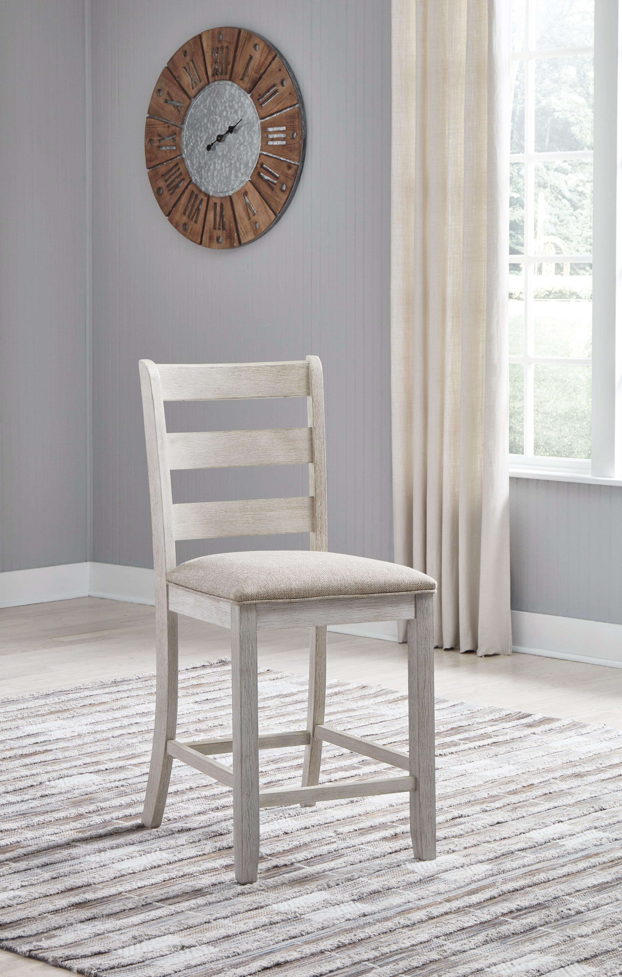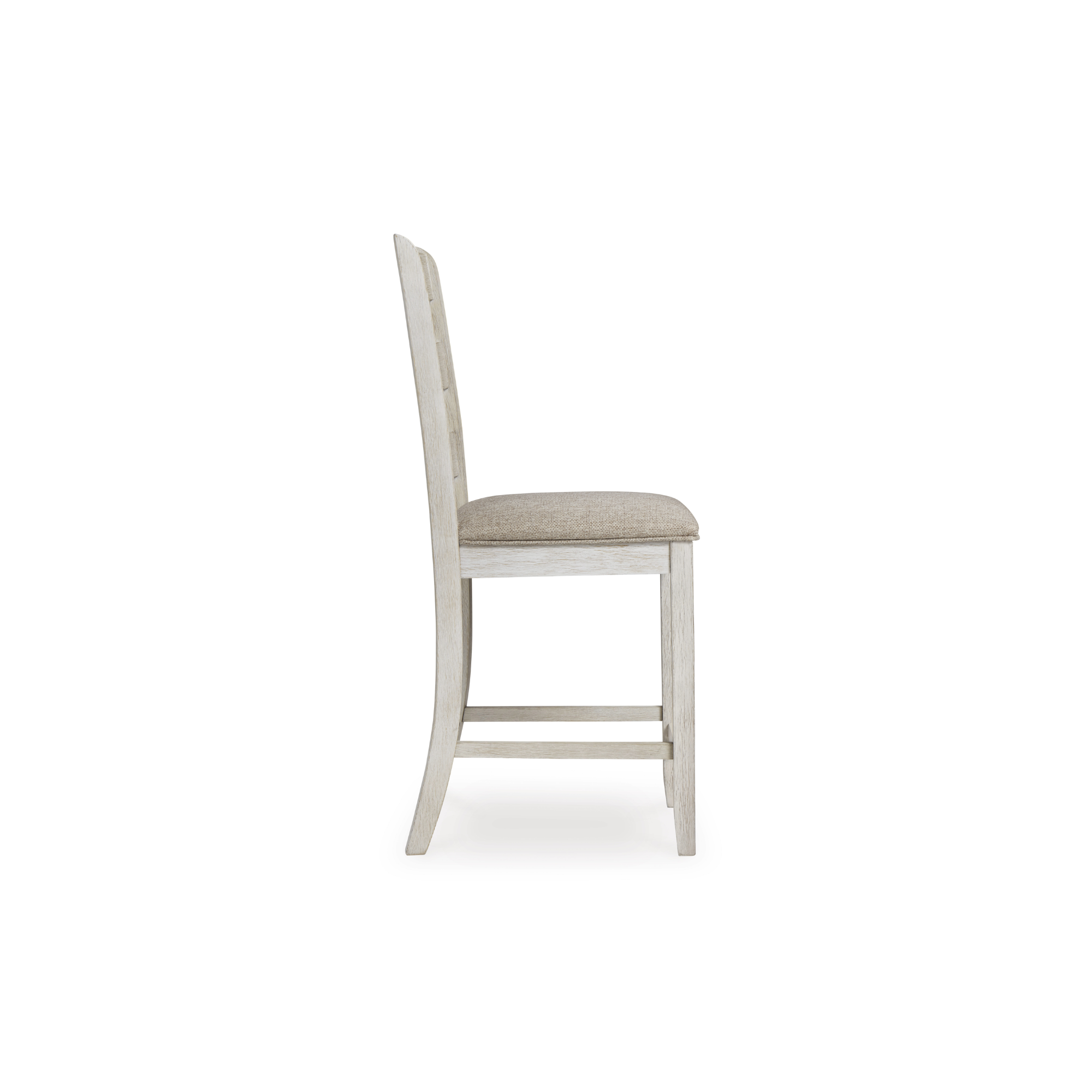 Skempton tapacirana barska stolica poziva vas da podignete standard života u manjim prostorima. Savršen izbor za enterijere u stilu obalnog šika ili modernog rustičnog dizajna, ova udobno tapacirana barska stolica sa klasičnim naslonom u obliku merdevina ima sivkastobijeli finiš sa efektom istrošenosti koji joj daje šarm starinskog izgleda.