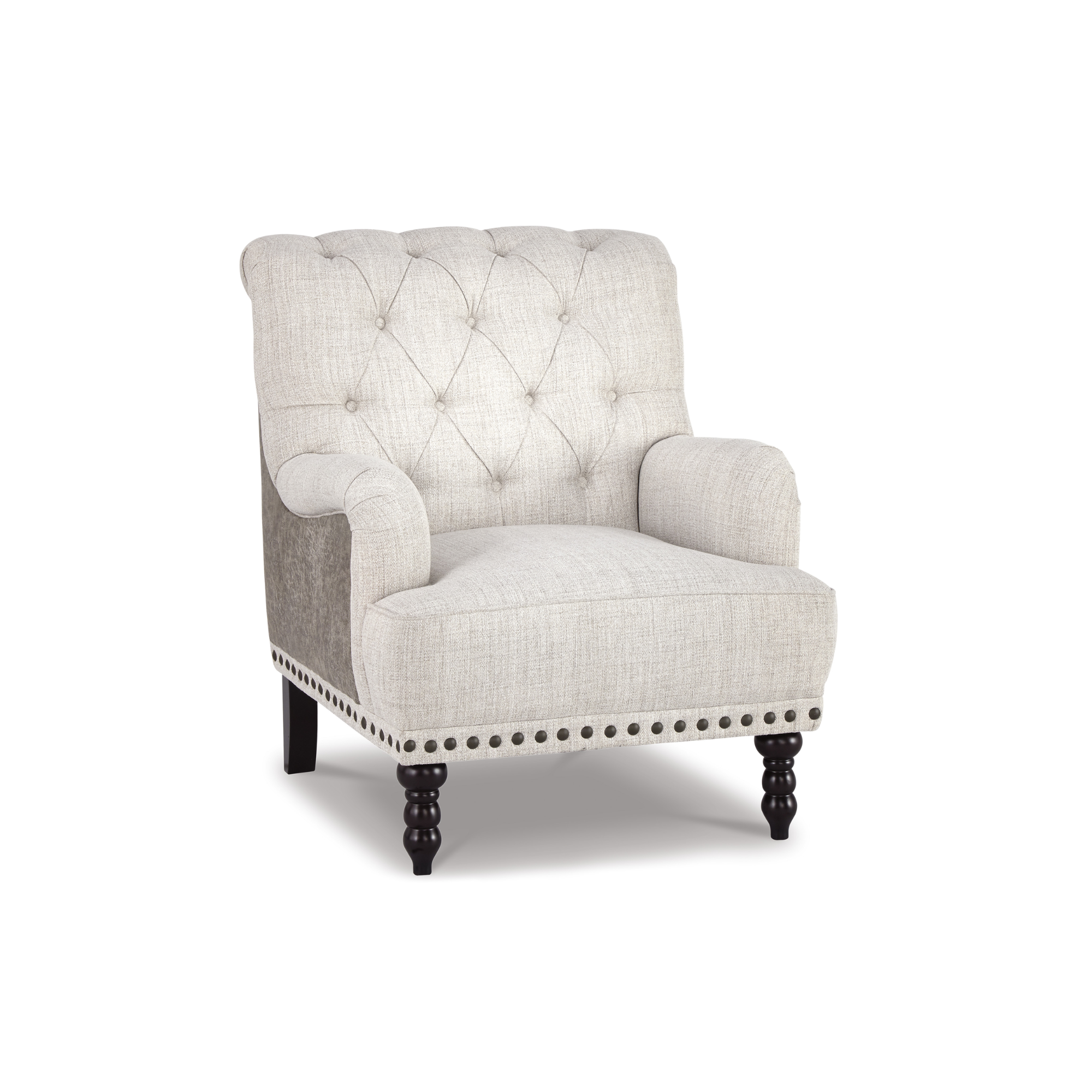 Svježa i sofisticirana. Tartonelle naglašena stolica s dugmićima predstavlja elegantan dodatak vašem domu. Dizajn iznutra prema van s tkaninom od lanenog tkanja na sjedalu i taupe lažnom kožom na naslonu. Veliki ukrasni čavlići povezuju cijeli izgled. Nasloni za ruke u stilu Charles of London i okrugla nogice čine ovaj komad stilskim naslijeđem.
