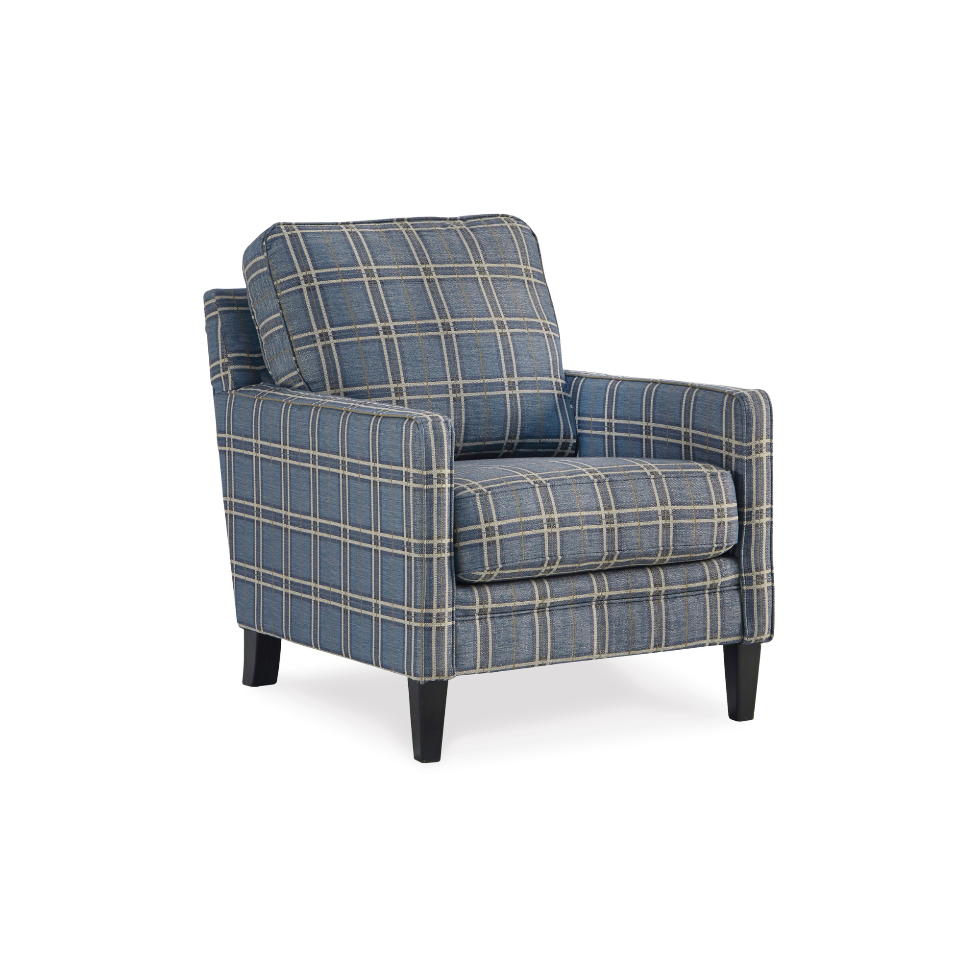 Ne ostavljajte svoj dnevni boravak nedovršenim. Ispunite prazan prostor ovom akcentnom stolicom. Topla plava nijansa na velikom kariranom uzorku donosi smirujući ton boje. Uski, ravni nasloni za ruke čine ovaj tradicionalni oblik opuštenijim i prijatnijim. Mekani jastuci za leđa i sjedište pružaju istinski užitak sjedenja. Bilo samostalno ili u kombinaciji s drugim tapaciranim namještajem, ova stolica je pravi klasni izbor.