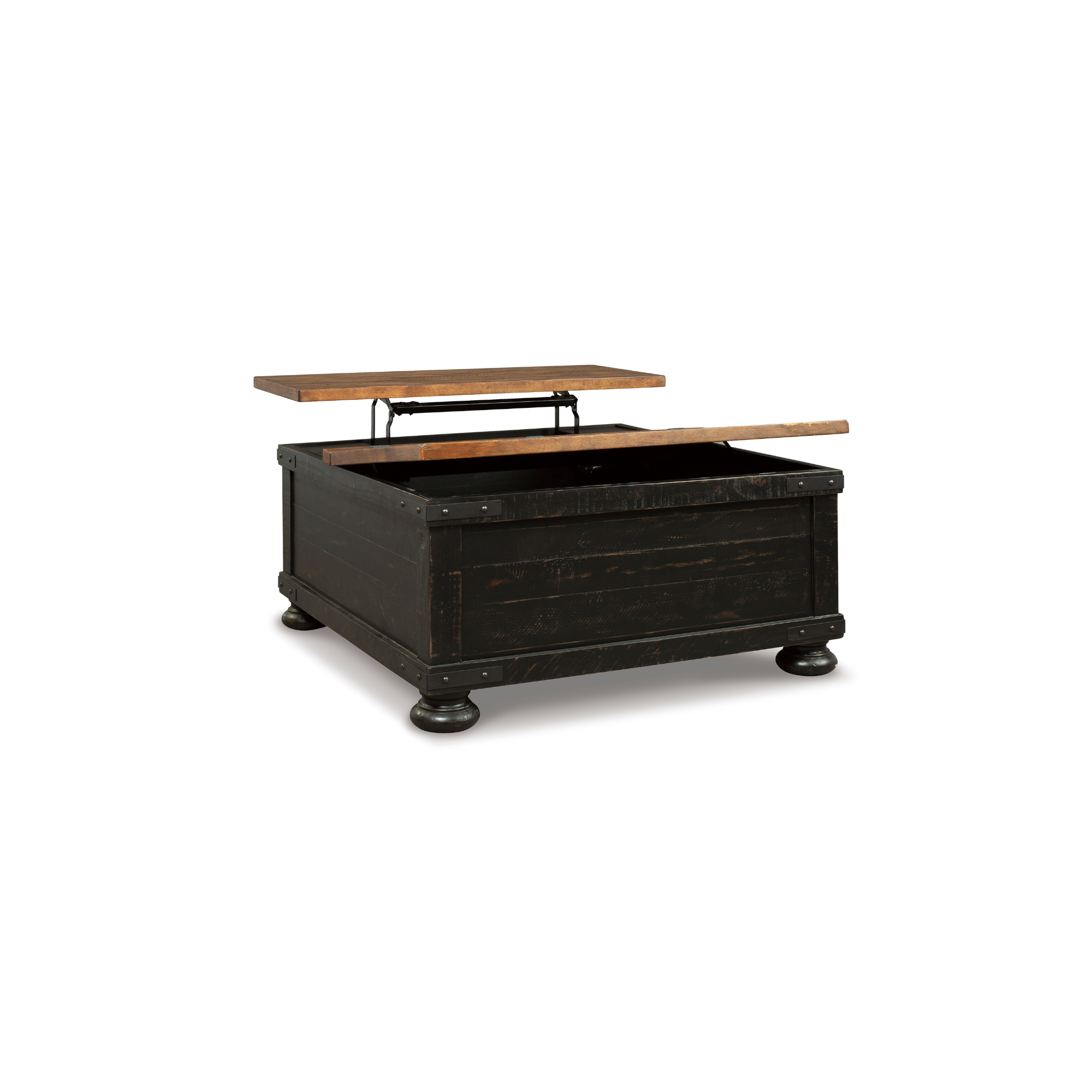 Za one koji cijene najbolje u rustičnom životu, dvoslojni kvadratni sto za kafu Valebeck udvostručuje funkcionalnost i stil. Pametno dizajnirani podijeljeni vrh kombinuje podizni mehanizam s poklopcem na šarke koji otkriva praktičan prostor za odlaganje. Dizajnerski detalji uključuju stilizaciju s efektom dasaka, oznake habanja i industrijske nosače koji dodatno naglašavaju karakter stola.
