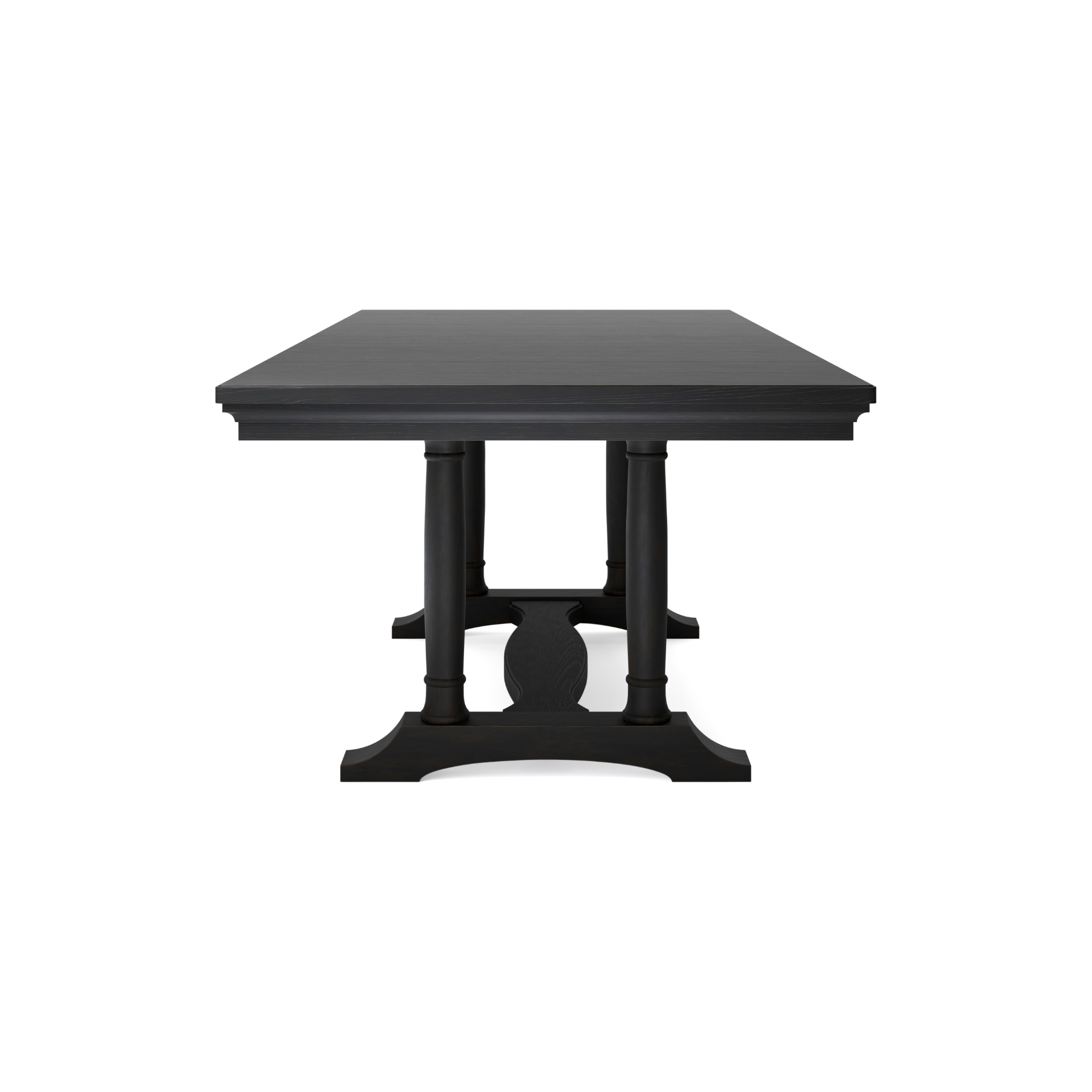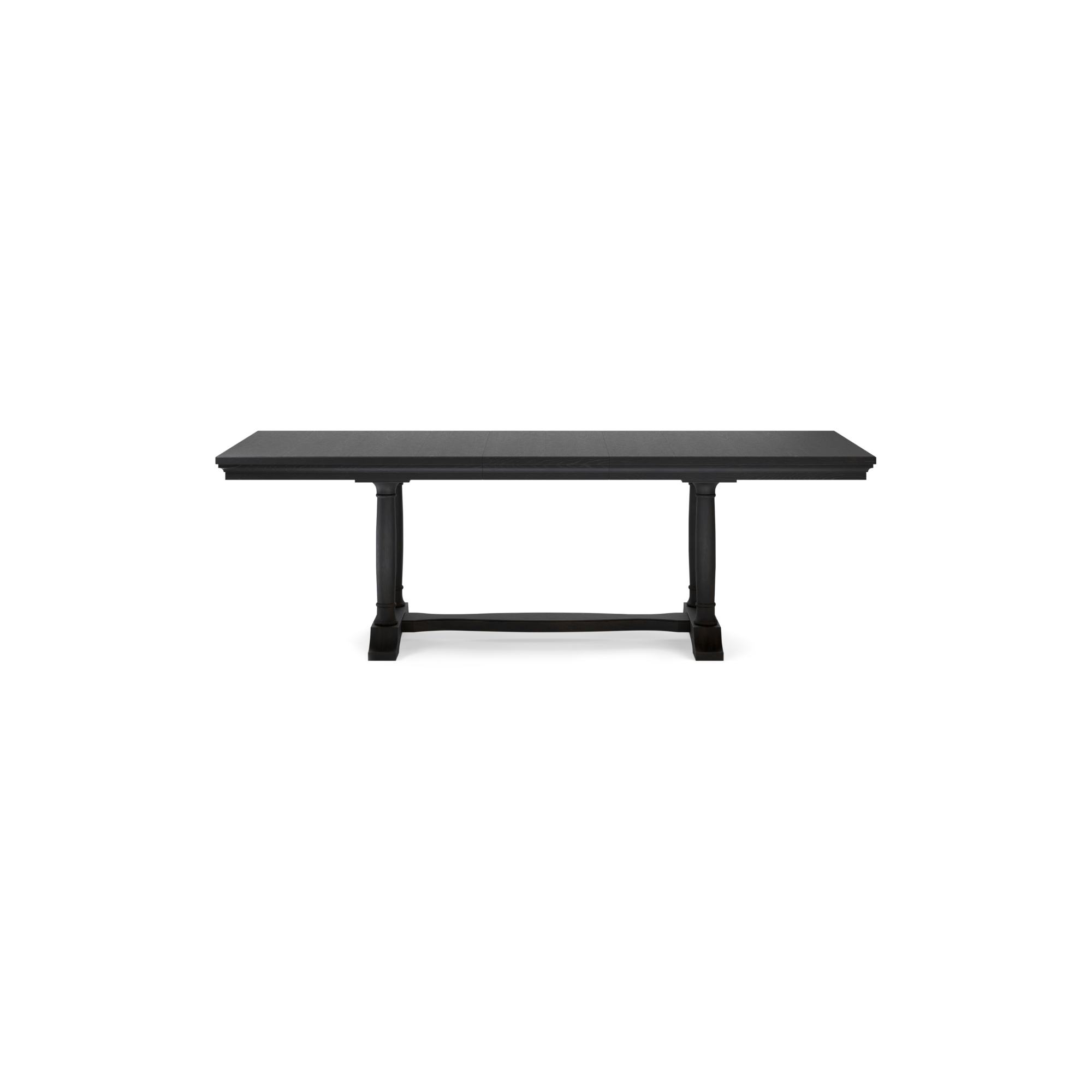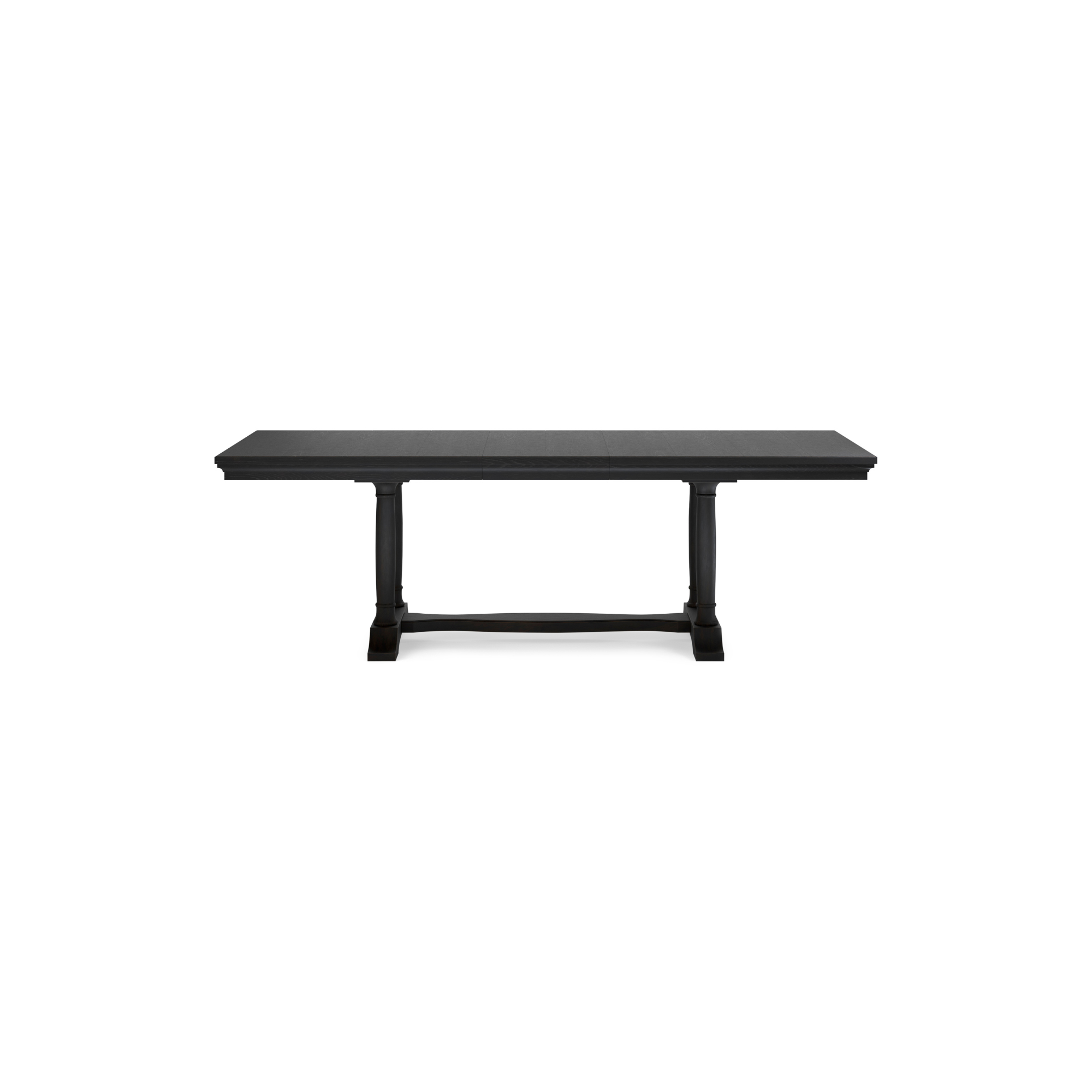 Za one koji vole klasične siluete tradicionalnog dizajna, ali žele izbjeći pretjerano formalne detalje – tu je Welltern trpezarijski sto s produžetkom. Bogata slojevita crna završna obrada donosi suptilan osjećaj blago istrošenog šarma, dok elegantna baza s duplim postoljem dodaje prepoznatljiv karakter. Produžni dio omogućava dodatni prostor za goste koji žele ostati duže. Pravi ukusni primjer urbanog retro dizajna.